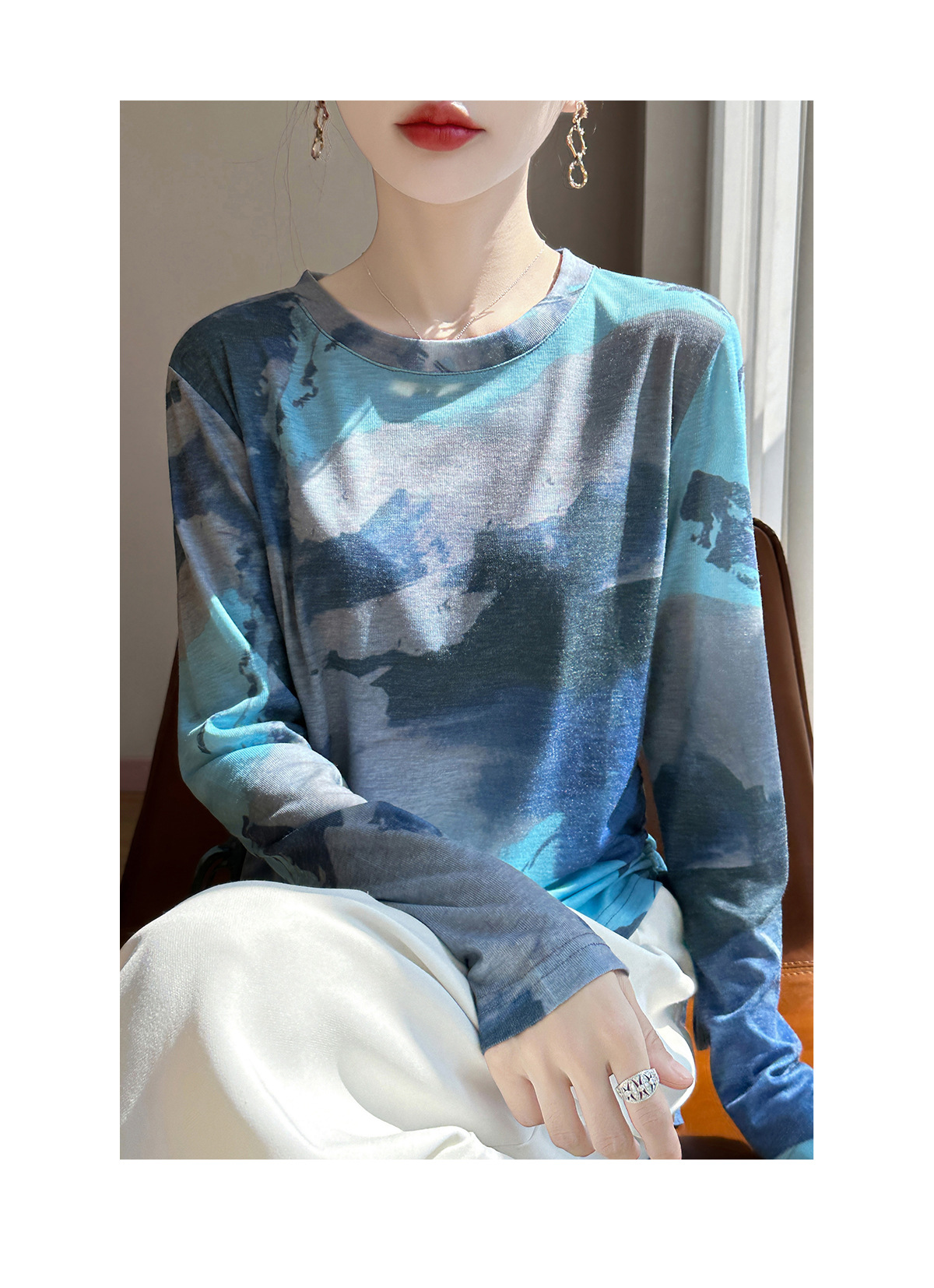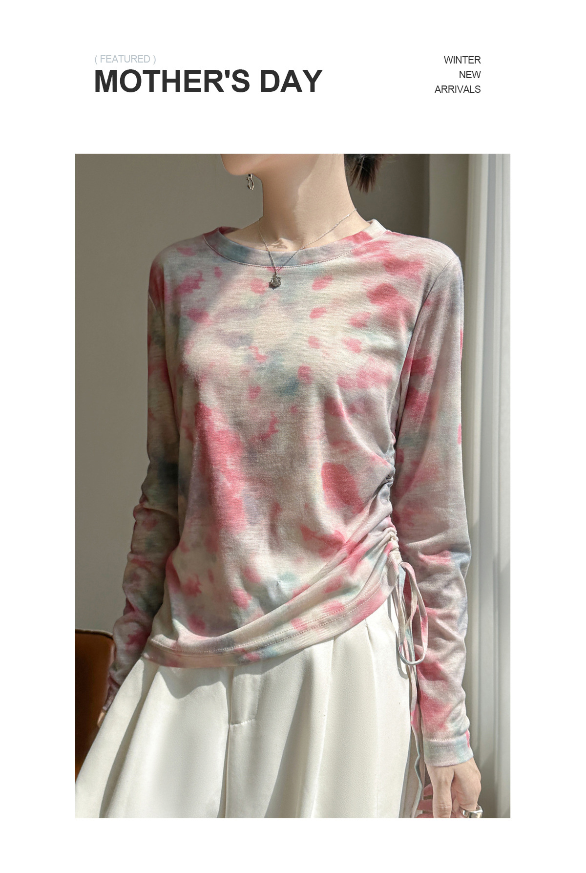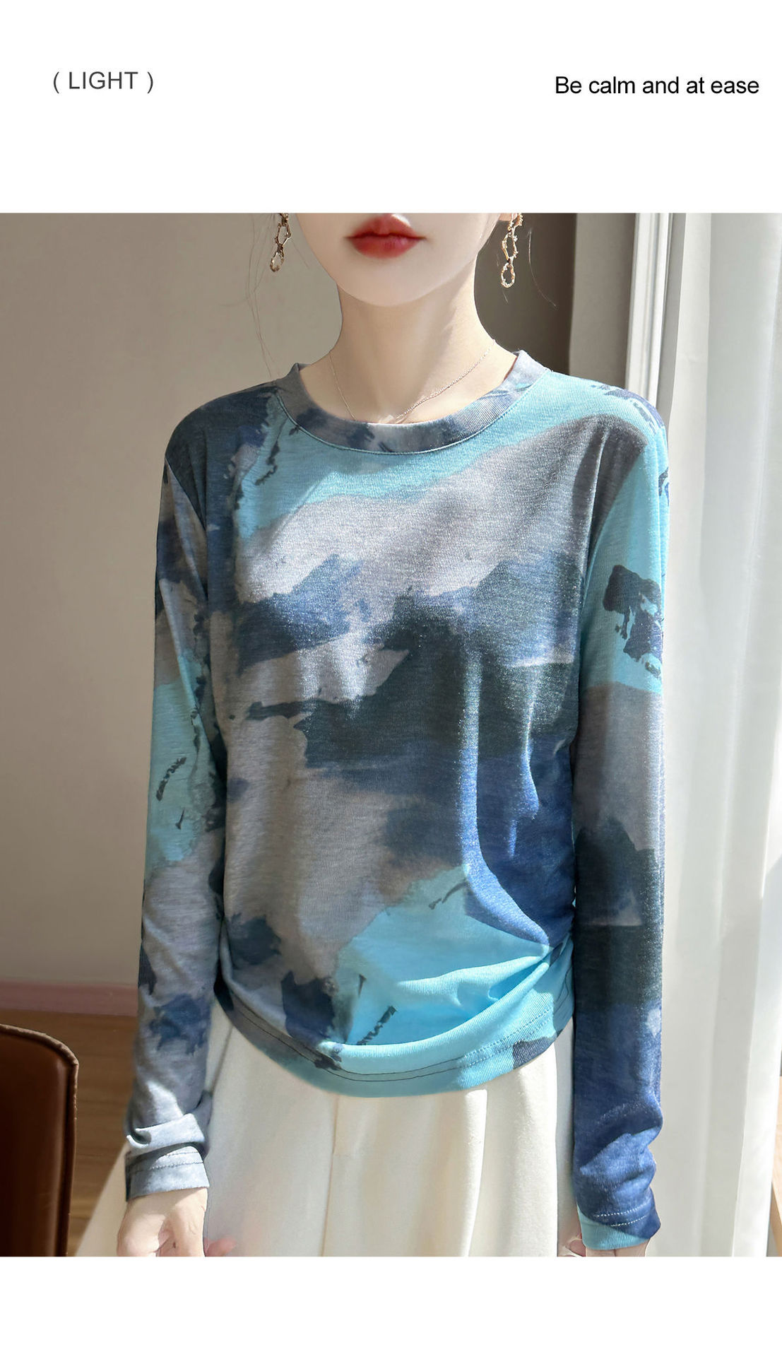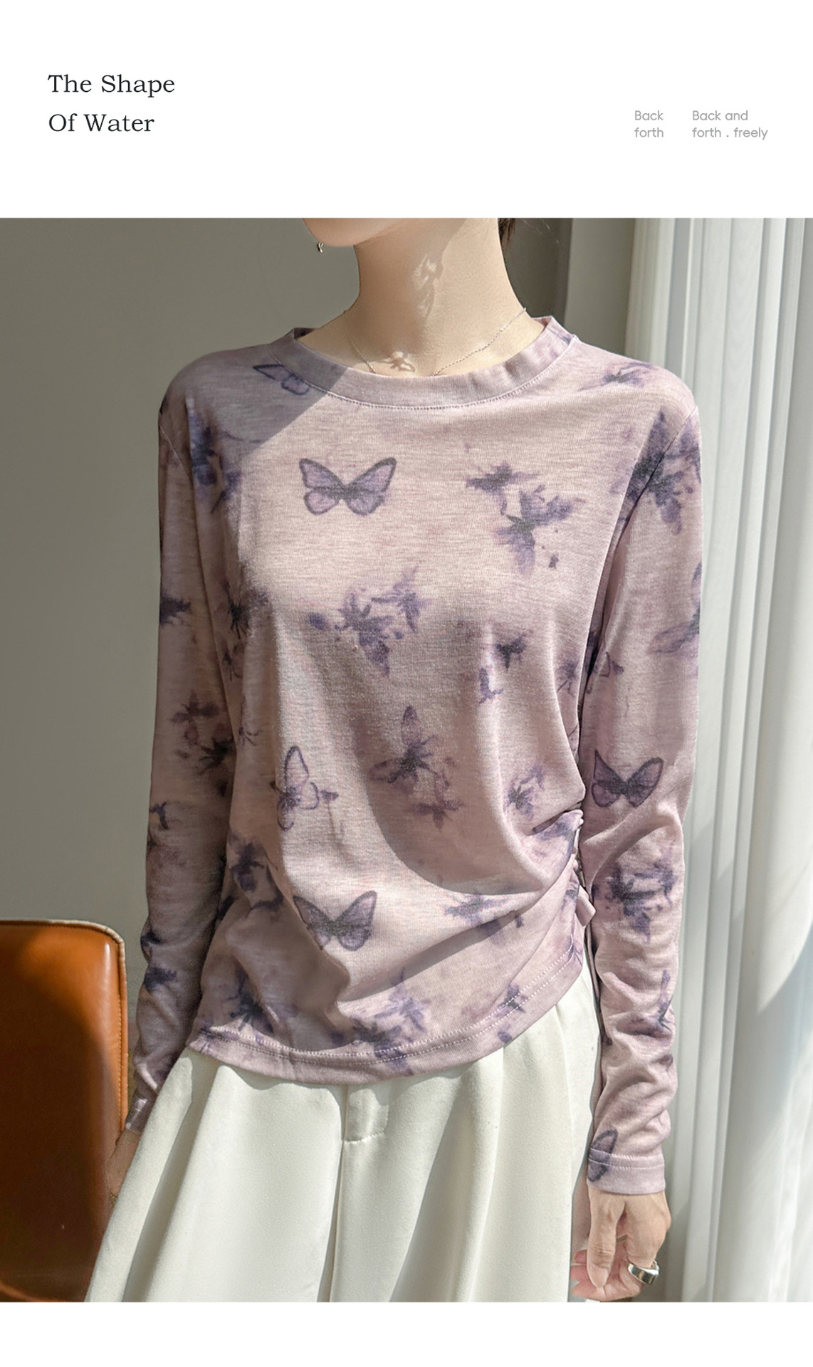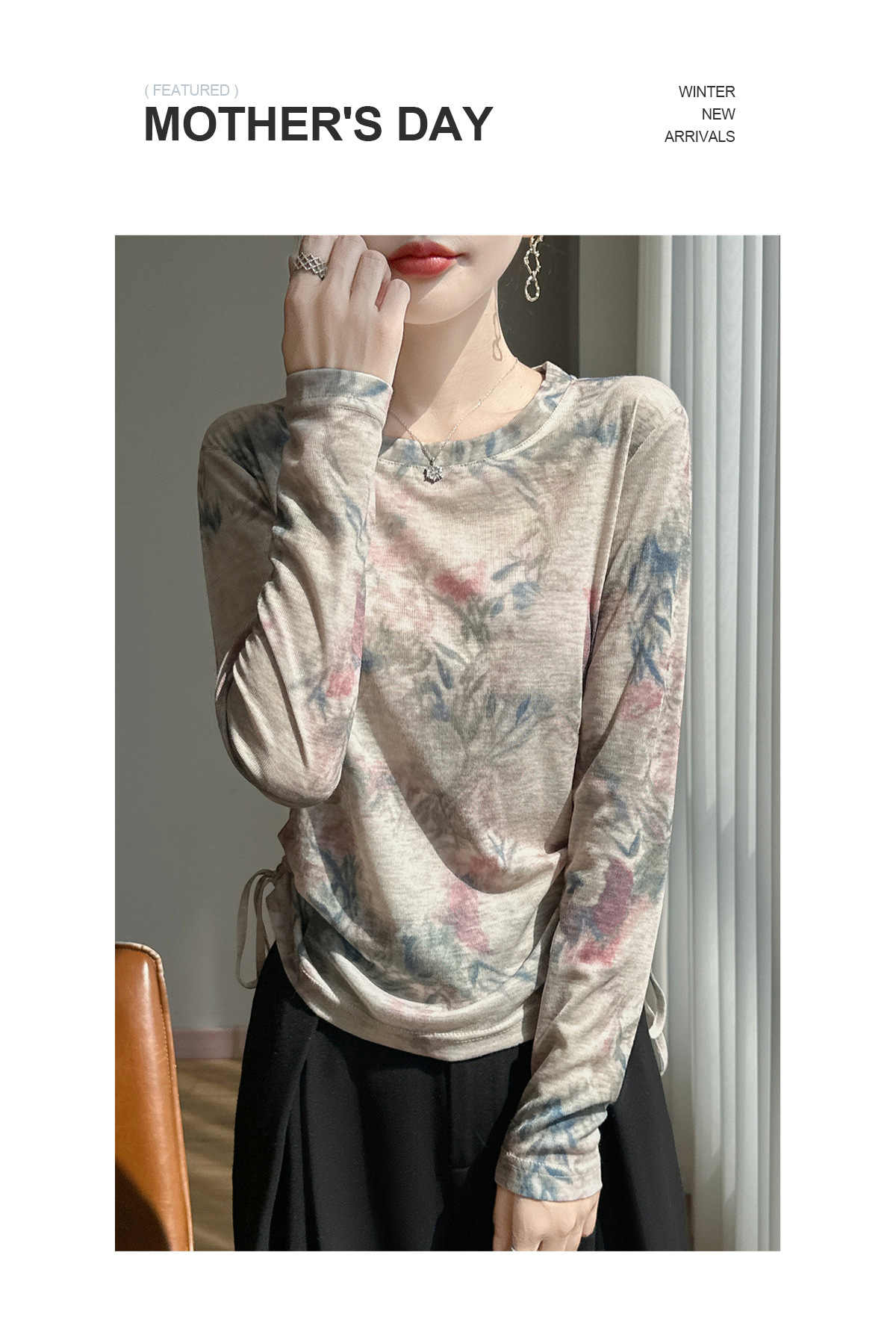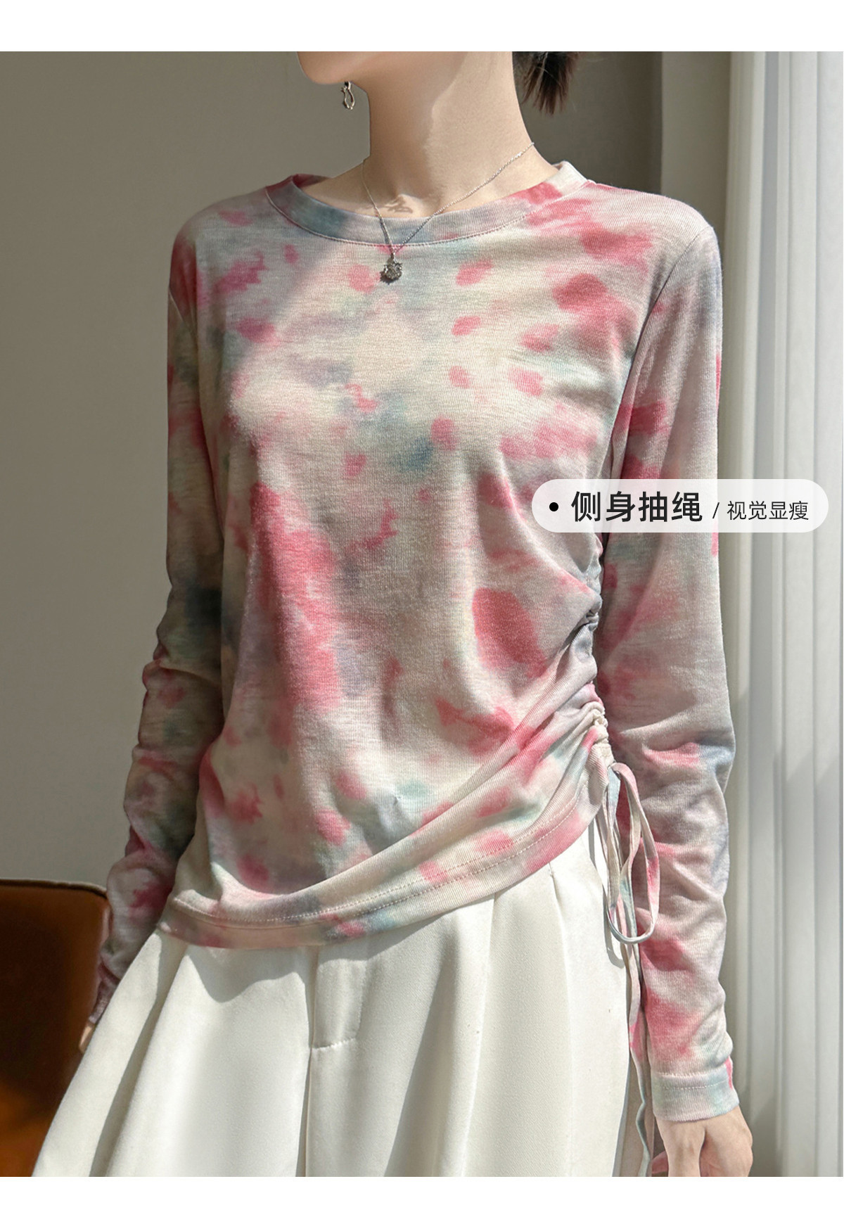 百媚生 法式设计感晕染印花针织衫女圆领长袖上衣RW-Y03-20