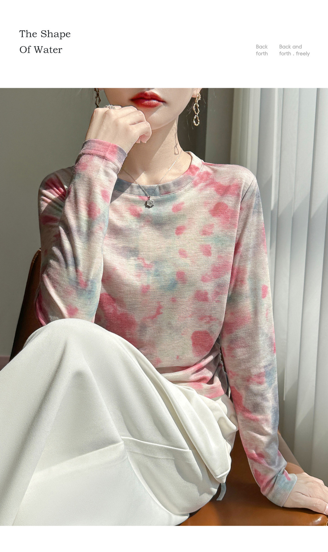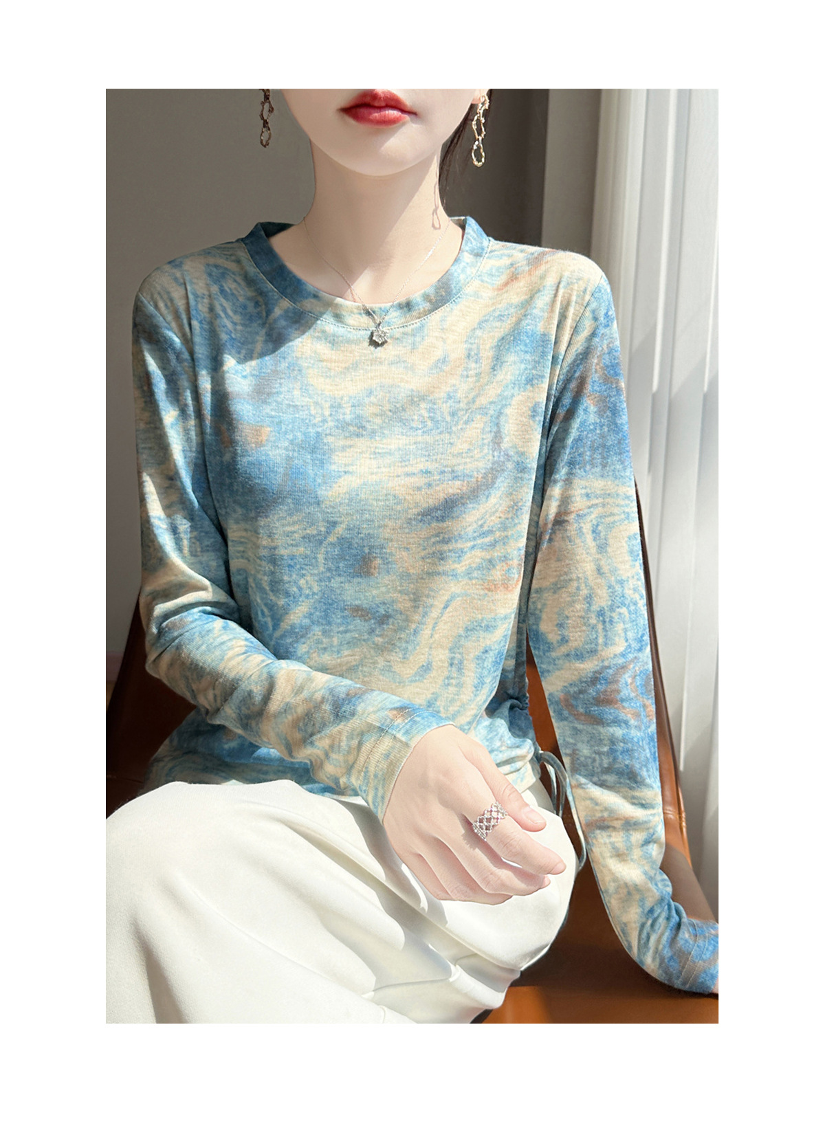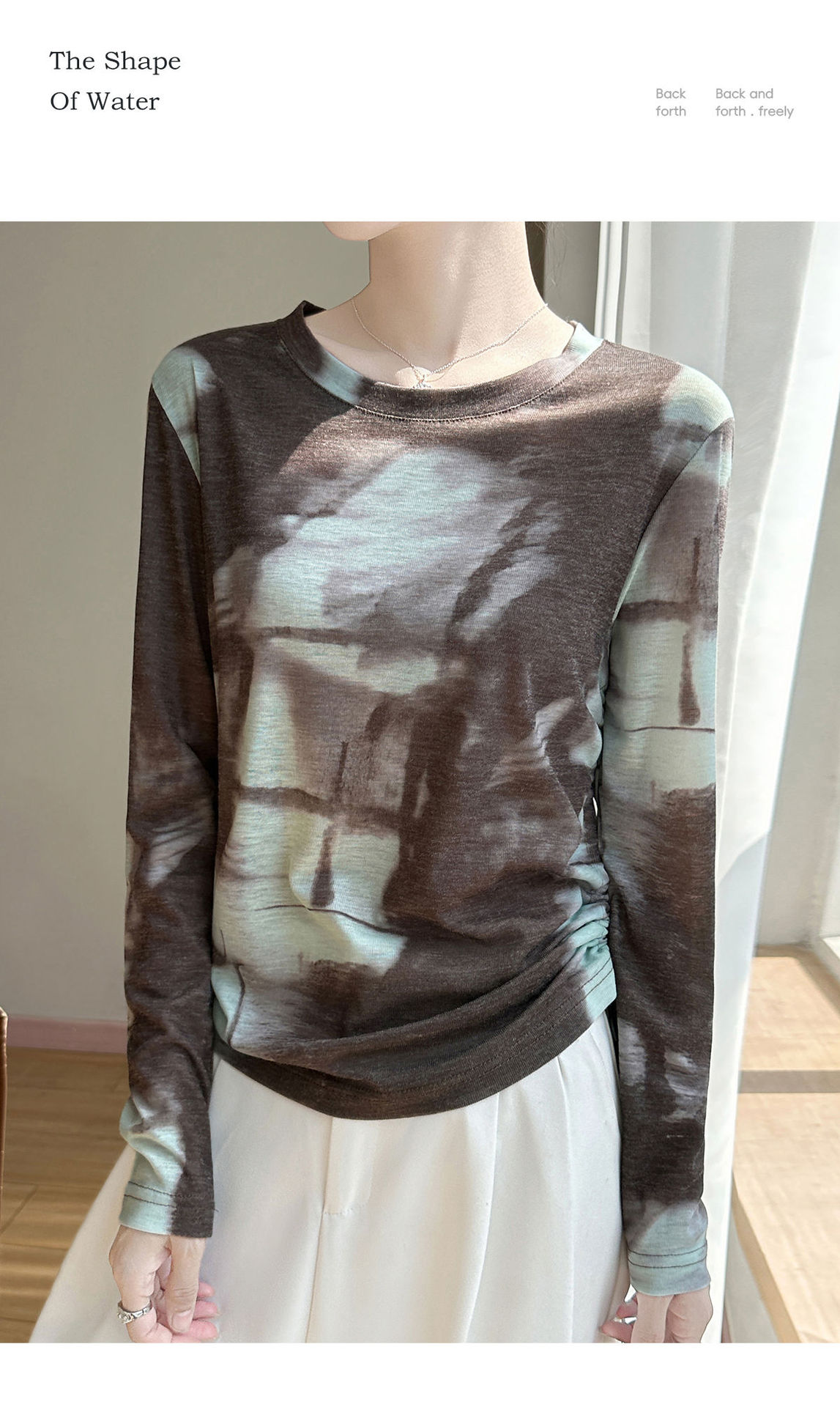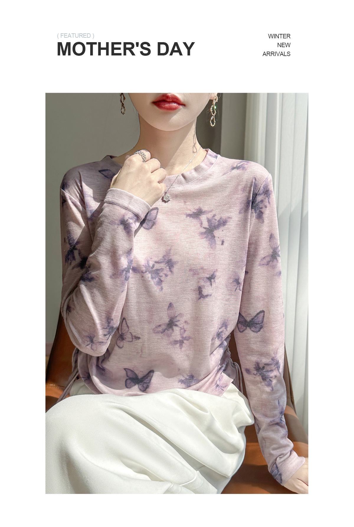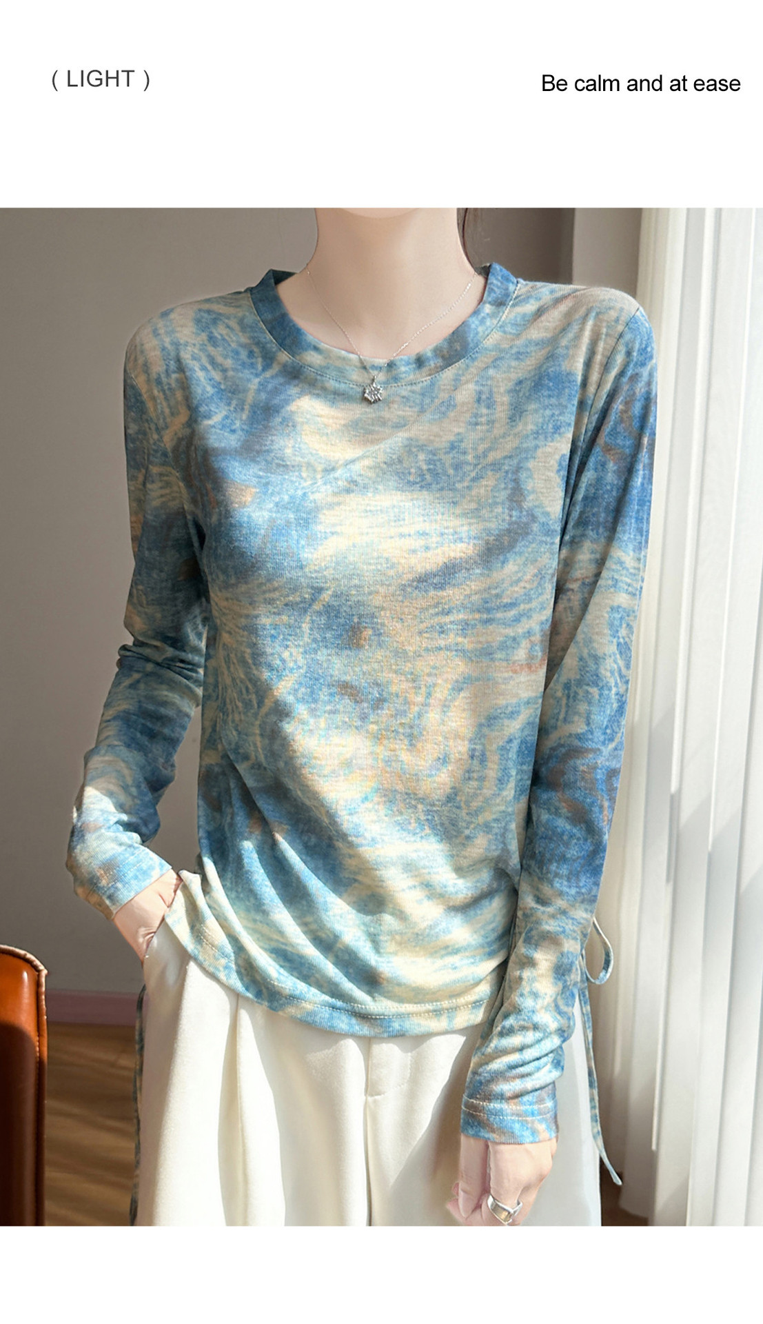 百媚生 法式设计感晕染印花针织衫女圆领长袖上衣RW-Y03-20
