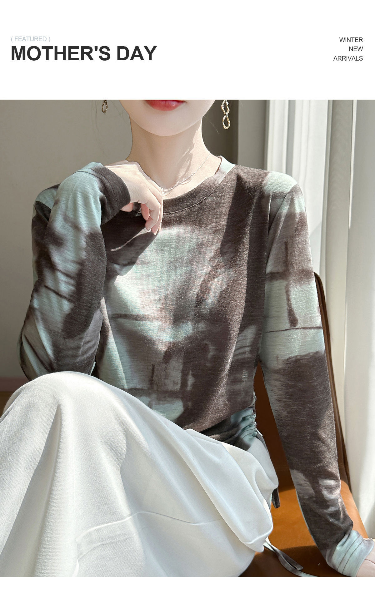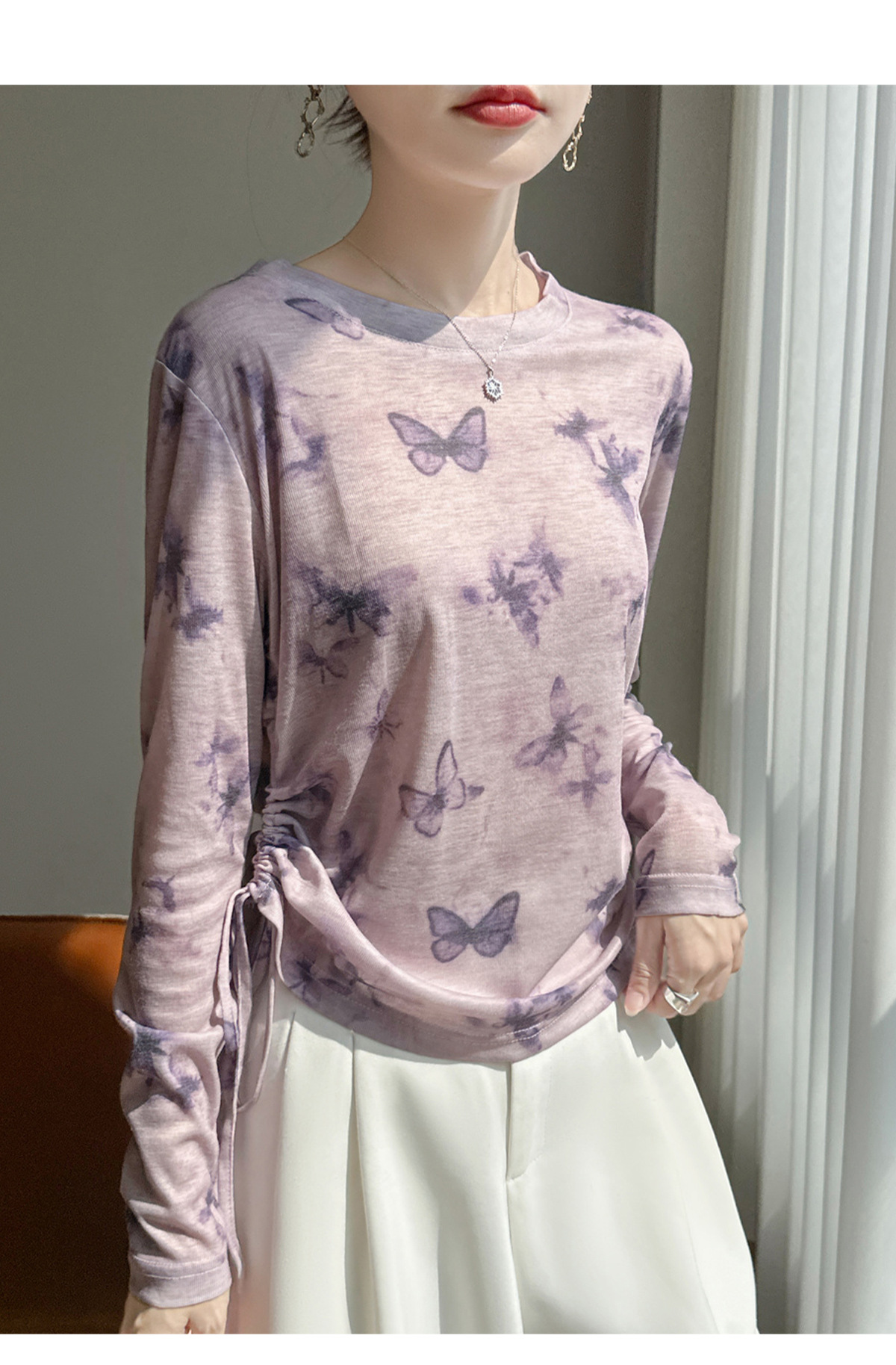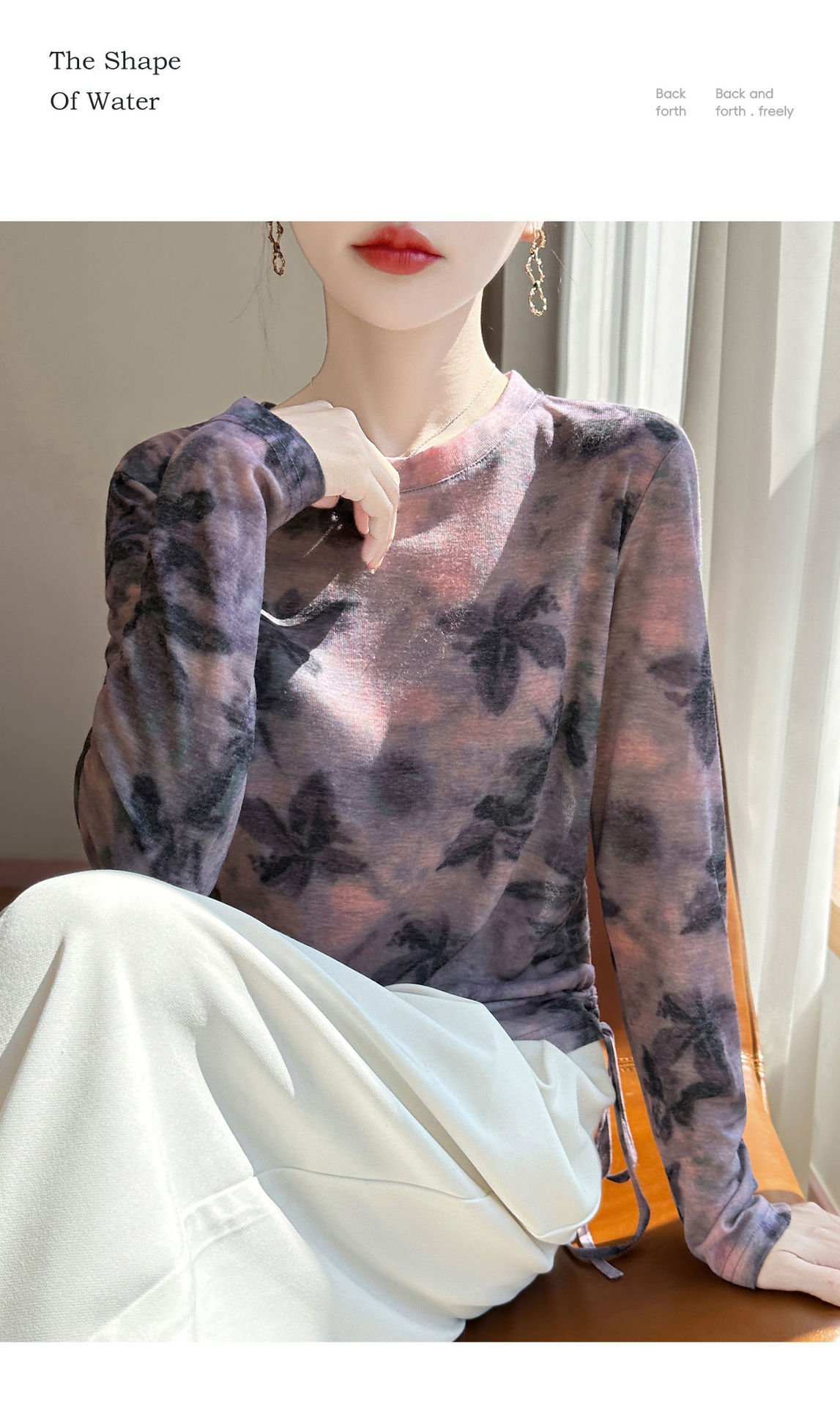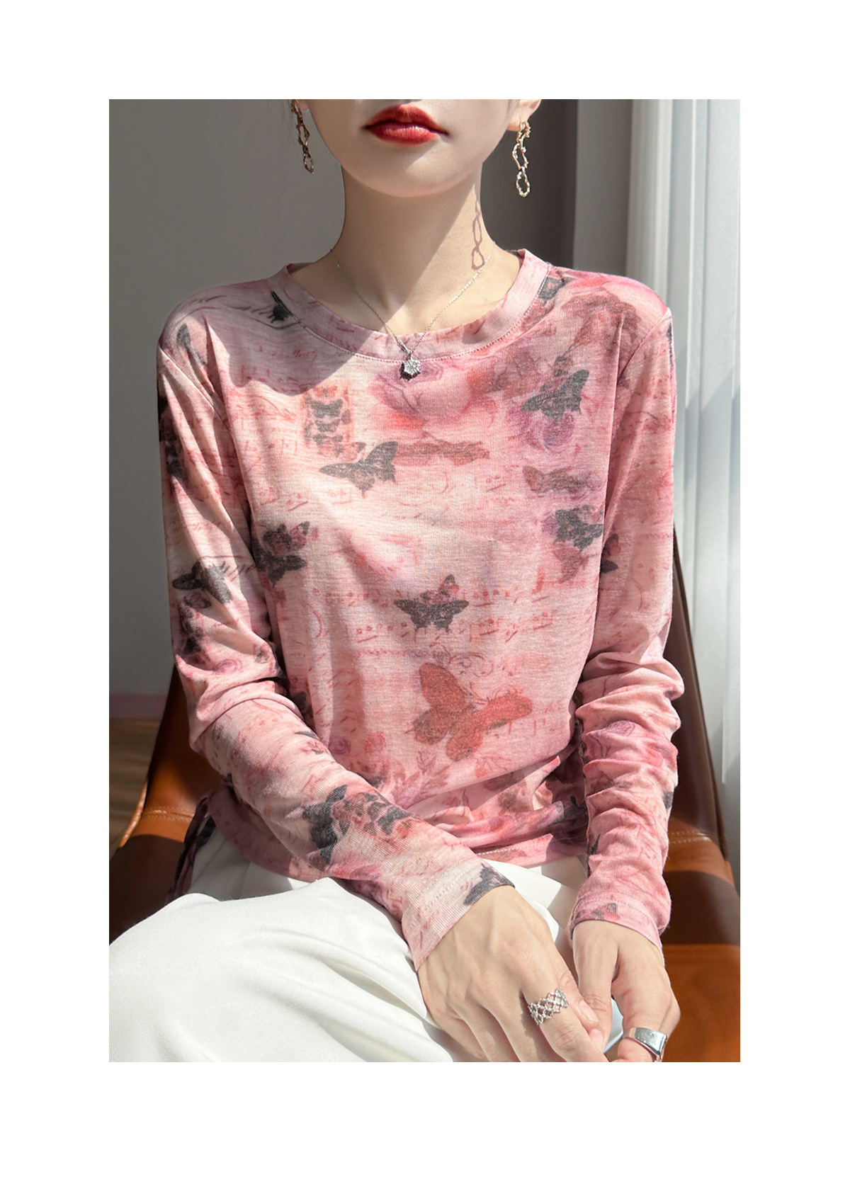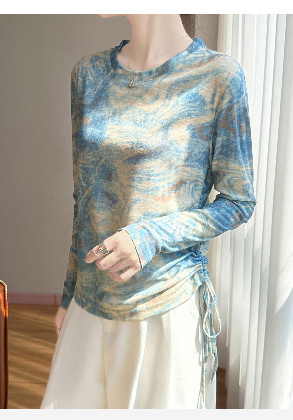 百媚生 法式设计感晕染印花针织衫女圆领长袖上衣RW-Y03-20