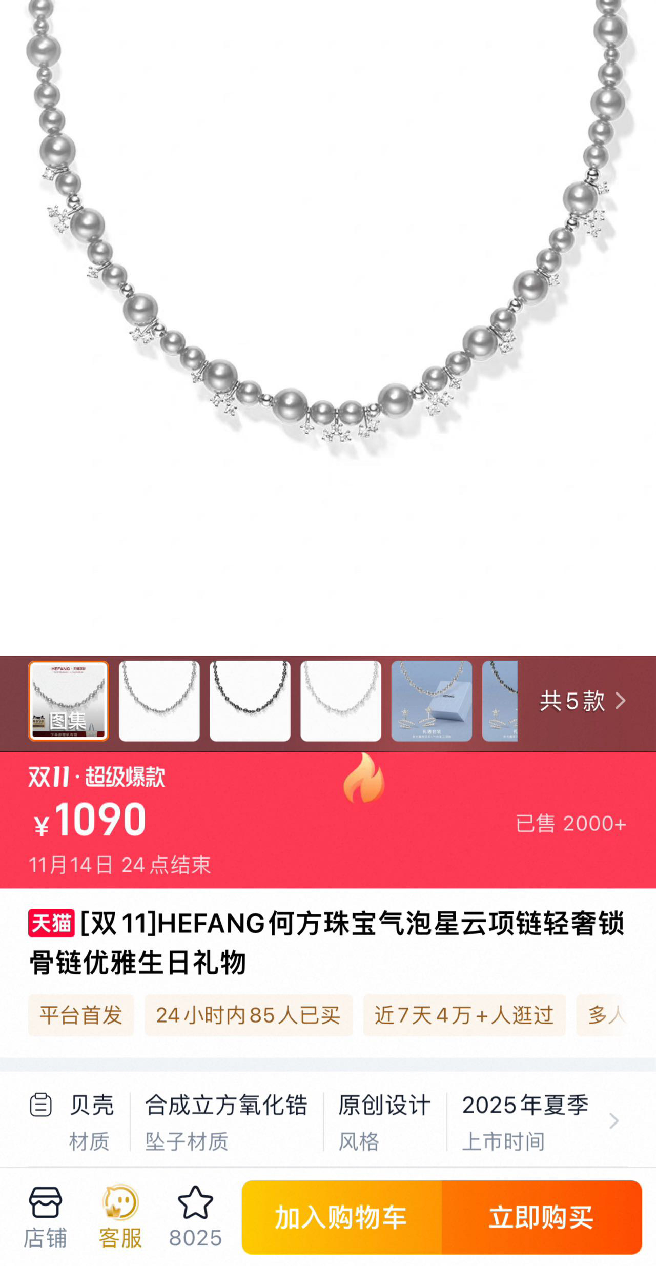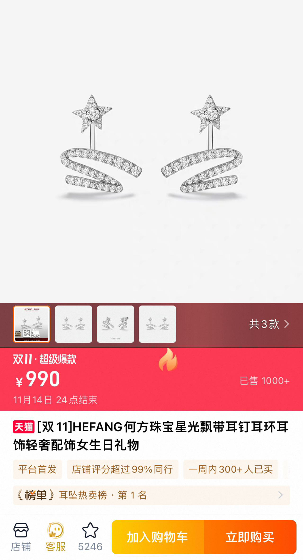 官网项链1090耳钉990 还是双11价格!销量都是几千件!
