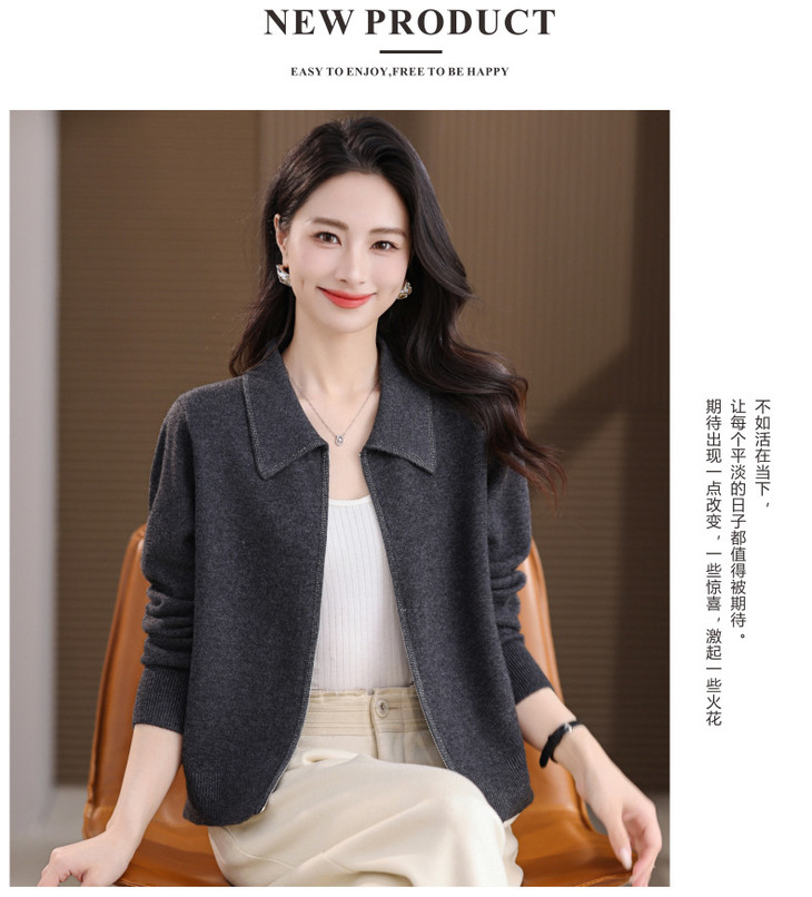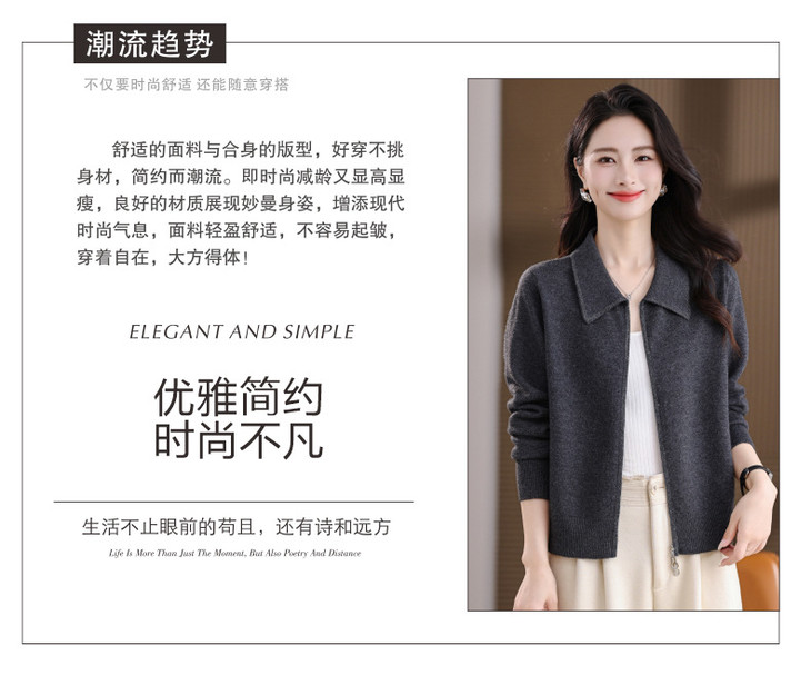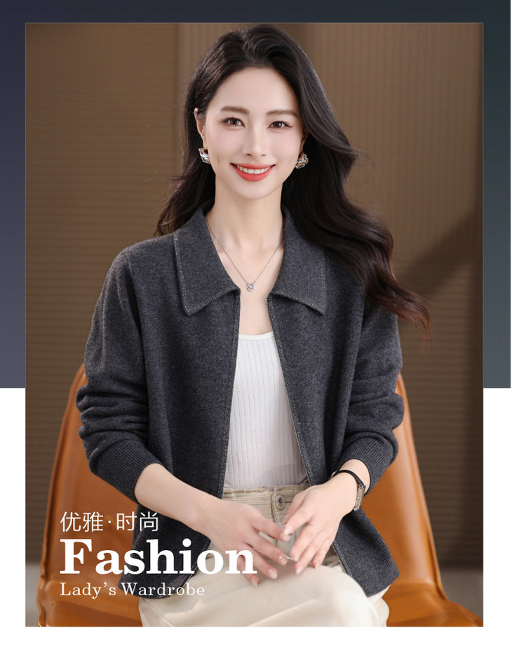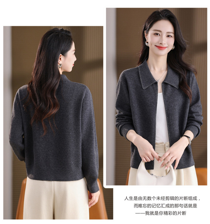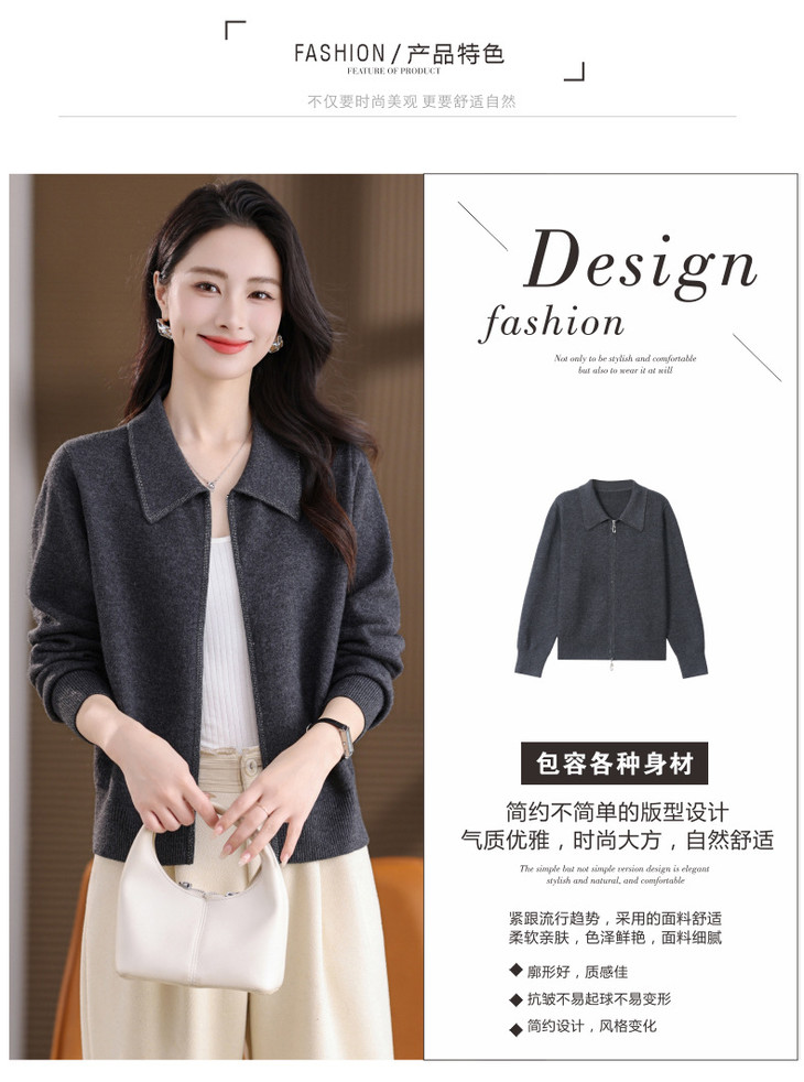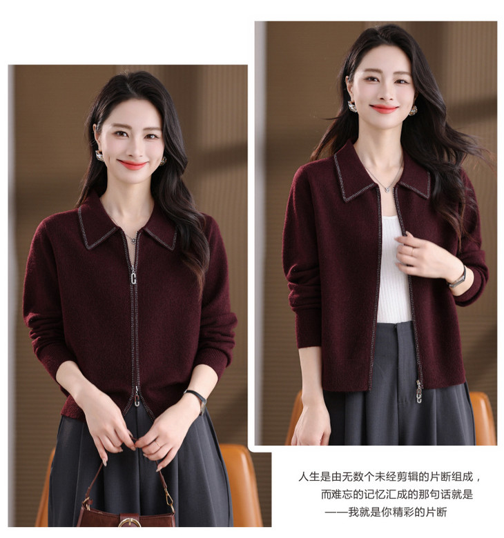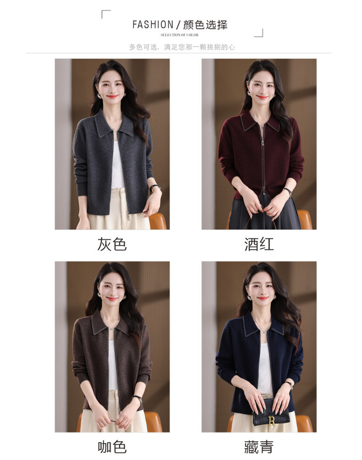 翻领外套气质休闲时尚针织上衣,洋气妈妈毛衣开衫宽松CC-101-35528
