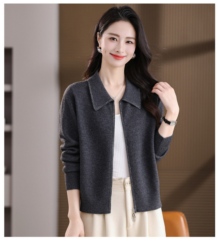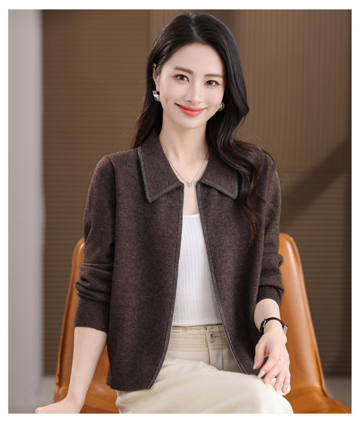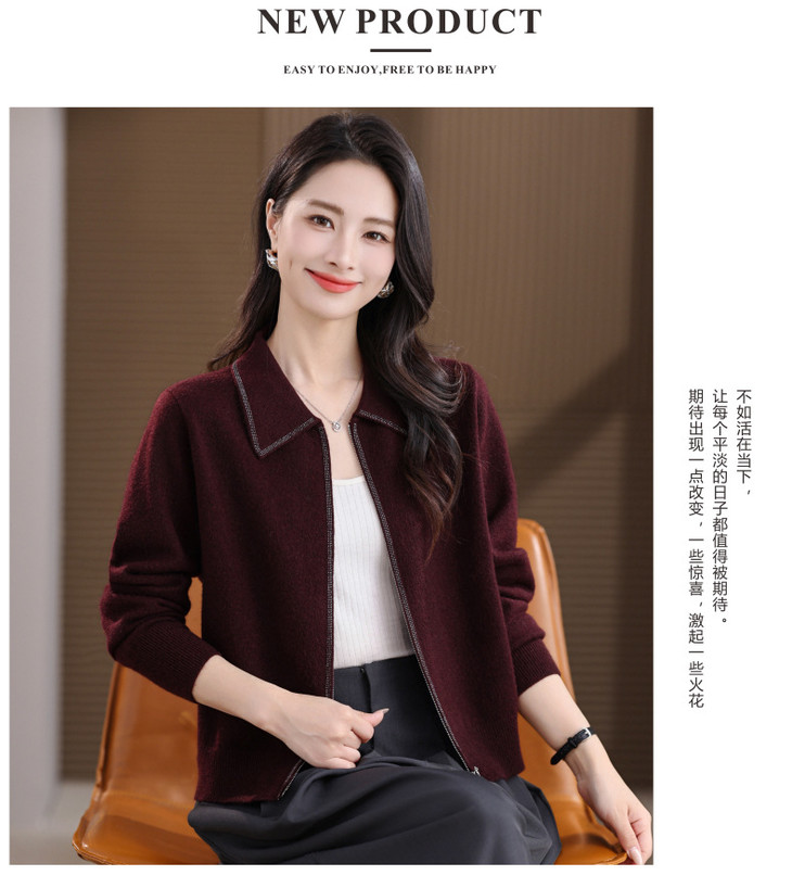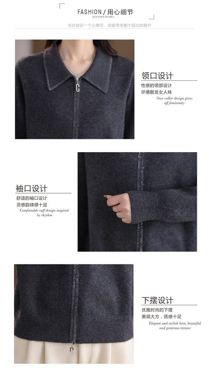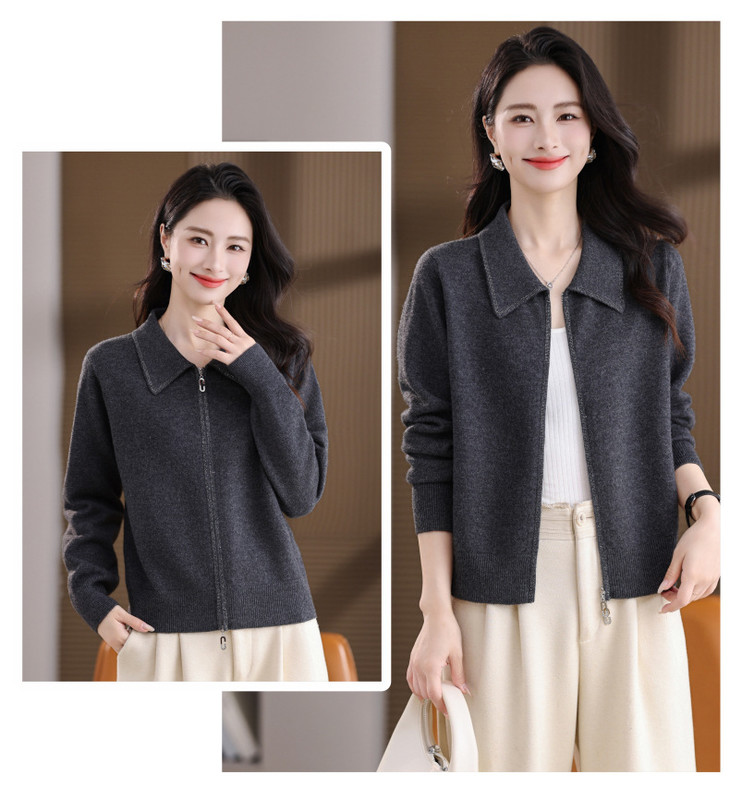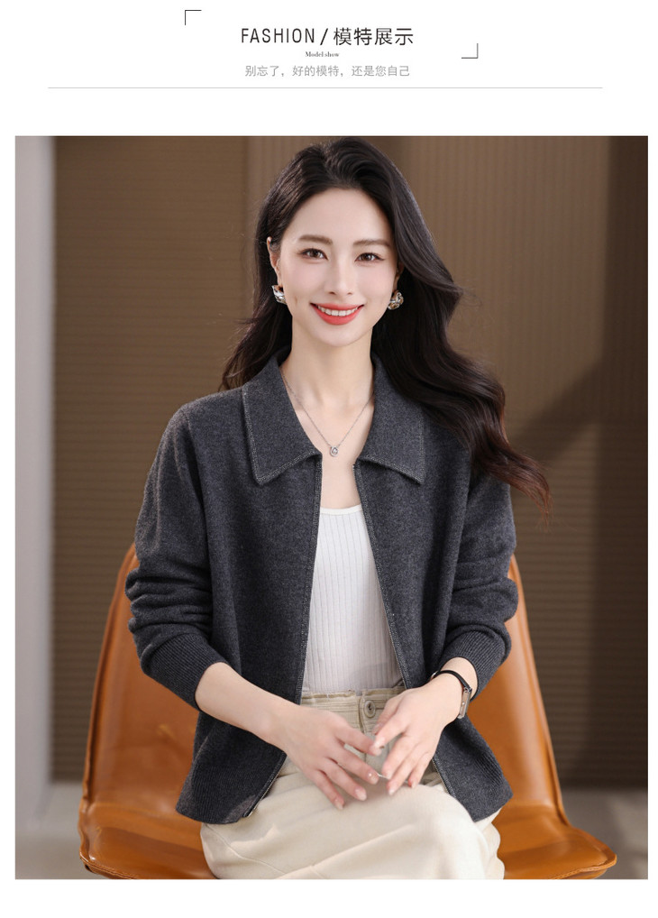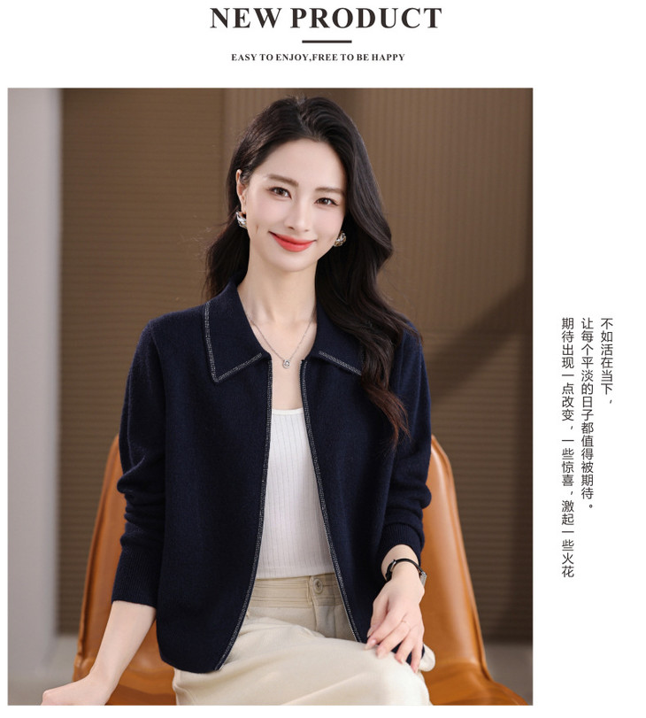 翻领外套气质休闲时尚针织上衣,洋气妈妈毛衣开衫宽松CC-101-35528