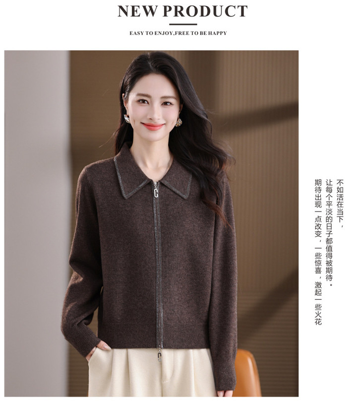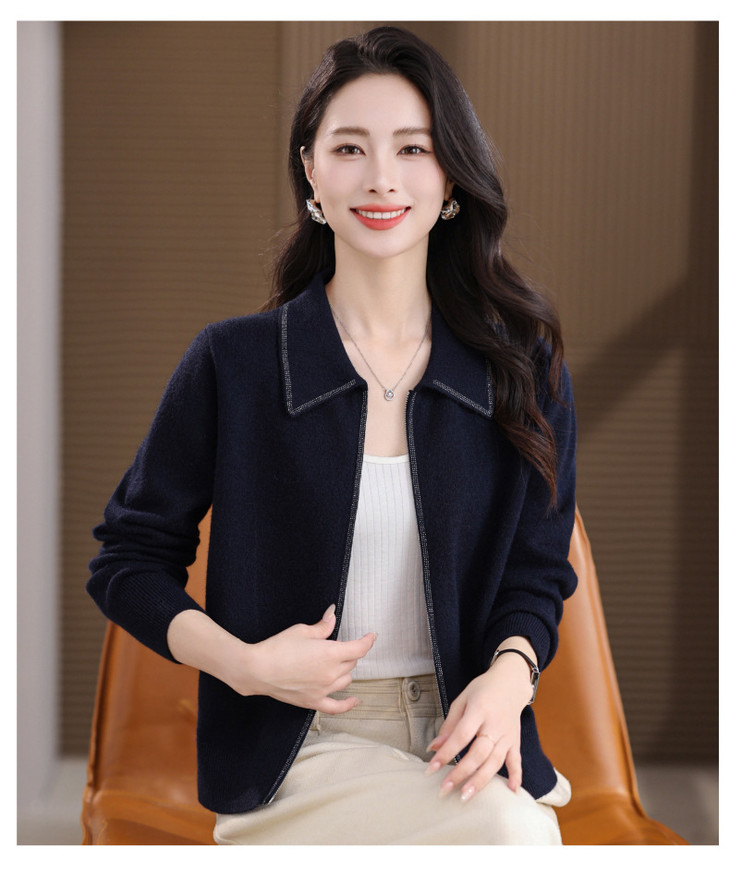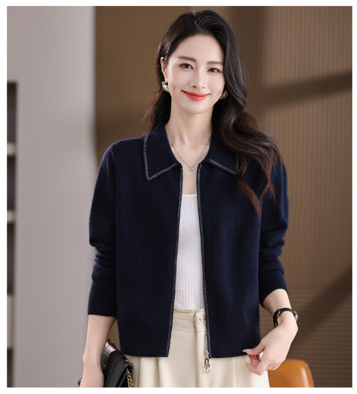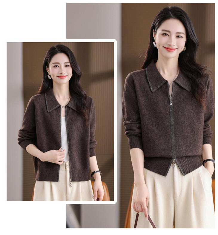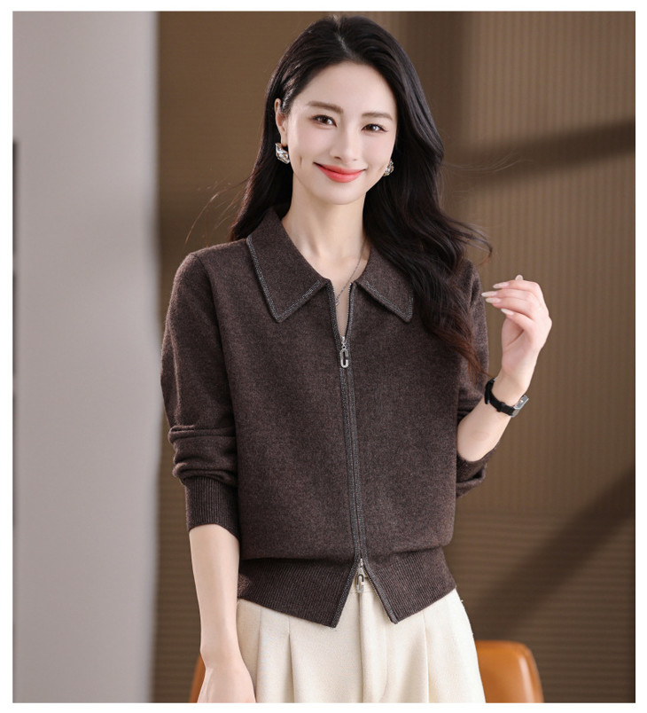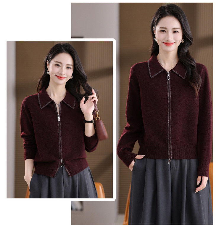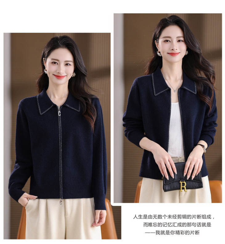 翻领外套气质休闲时尚针织上衣,洋气妈妈毛衣开衫宽松CC-101-35528
