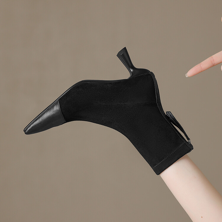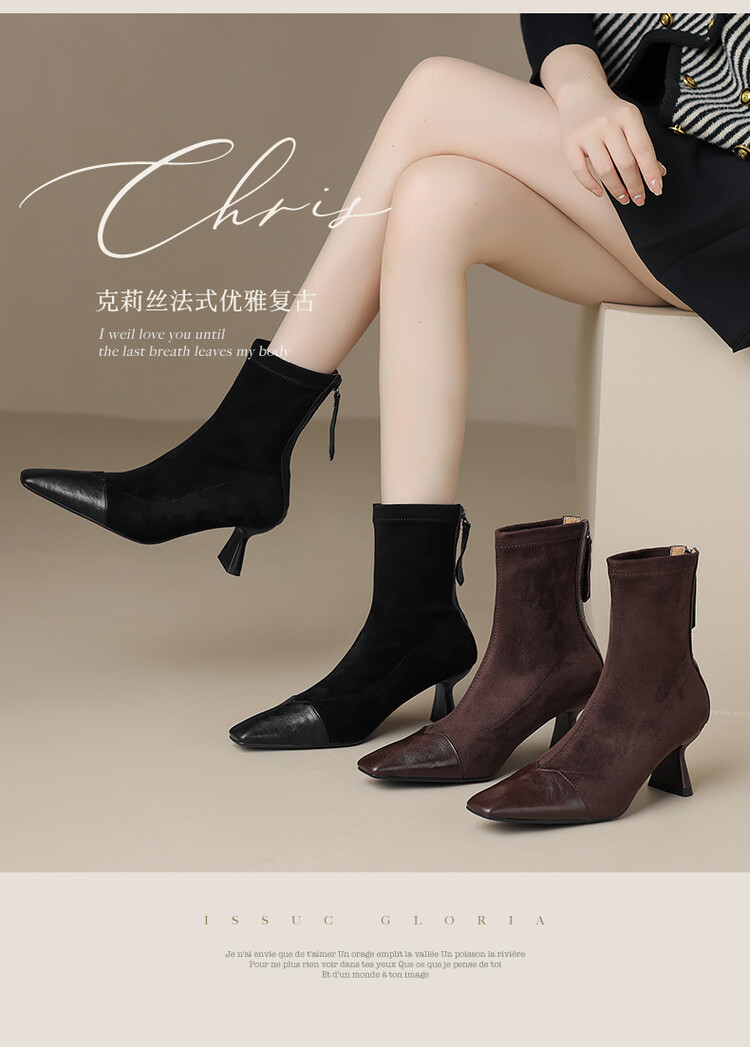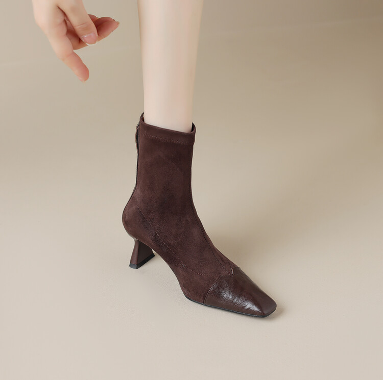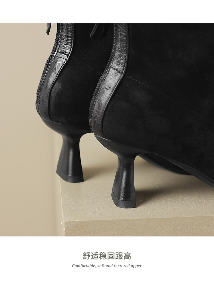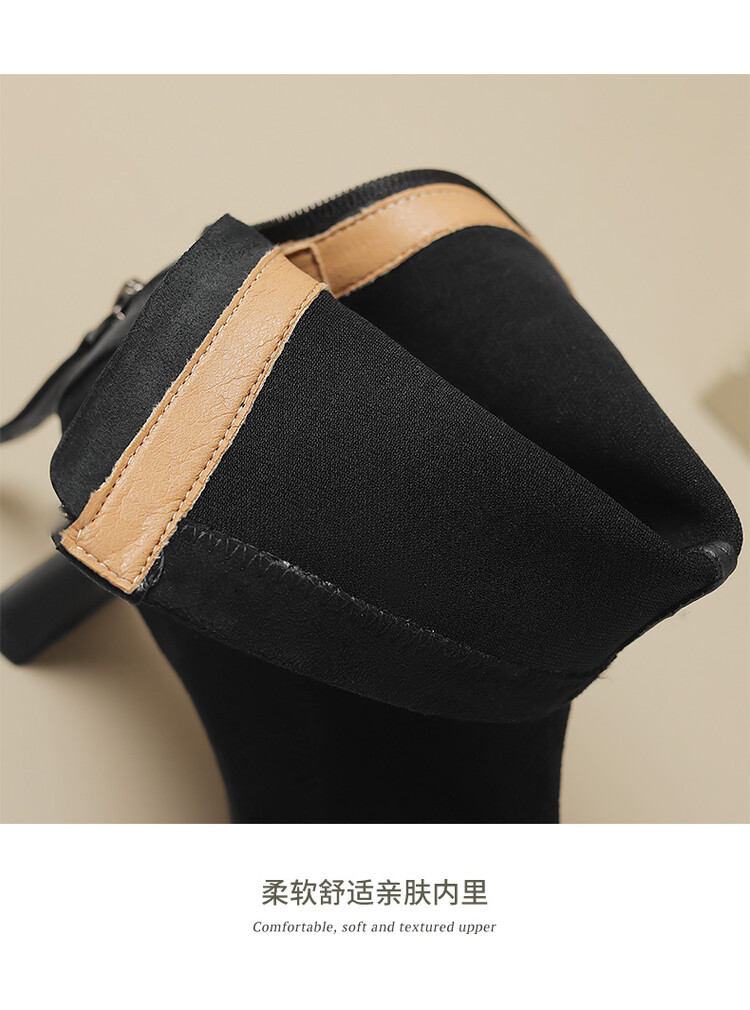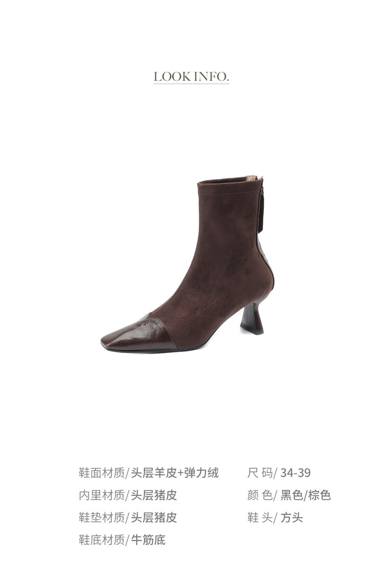 货号: X6103帮面材质: 羊皮+弹力绒内里材质: 头层猪皮垫脚材质: 头层猪皮鞋底材质: 牛津底颜色: 黑色/棕色尺码:34-39