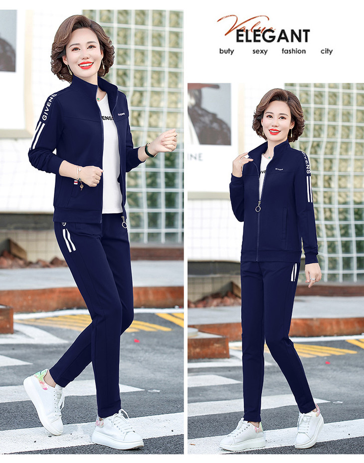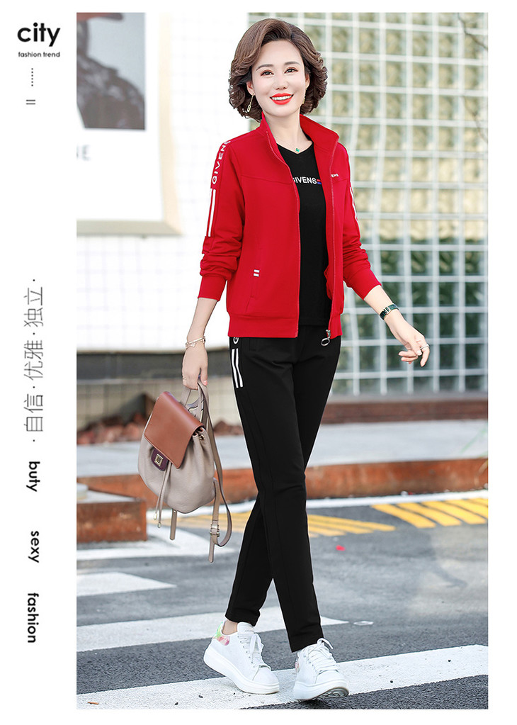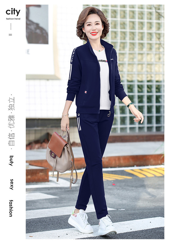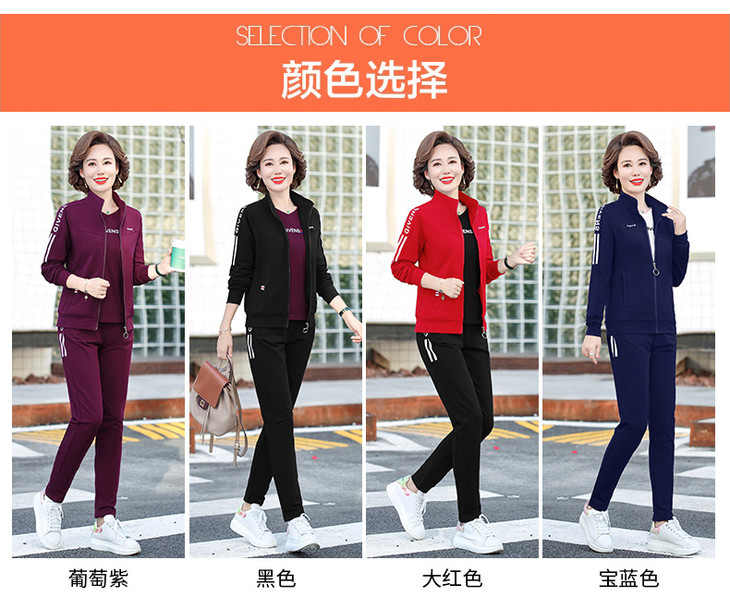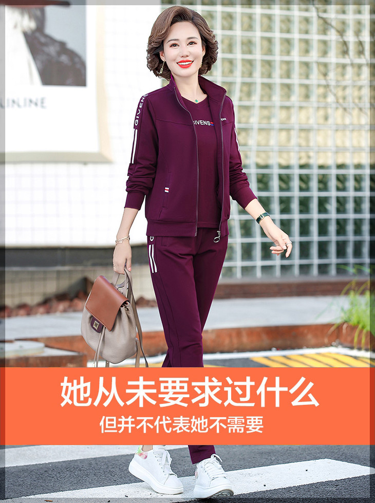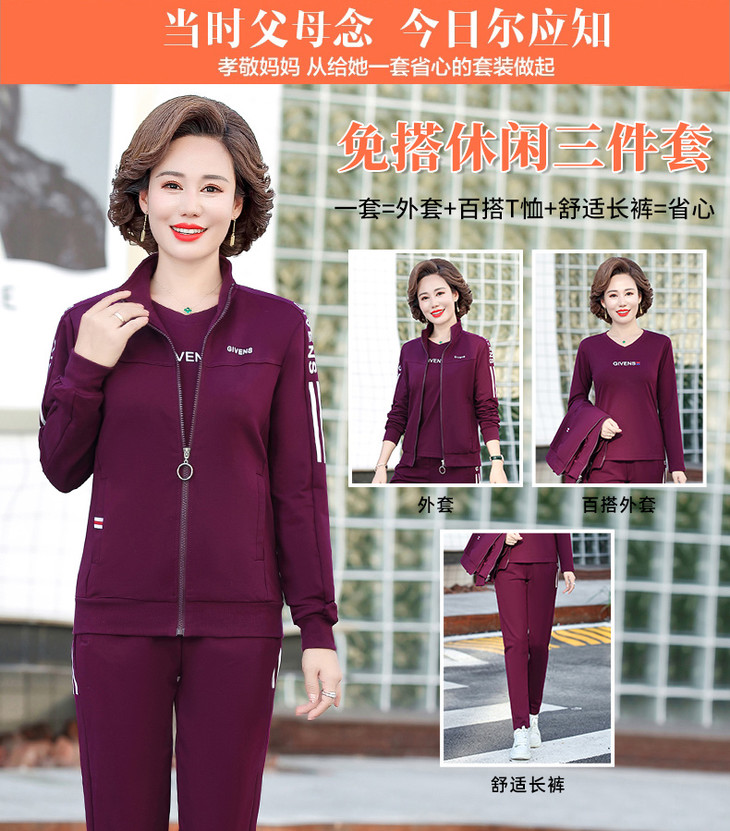 W-2666秋新款洋气减龄休闲中老年运动服套装外套三件套