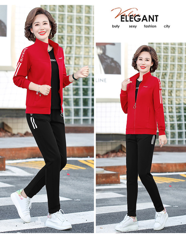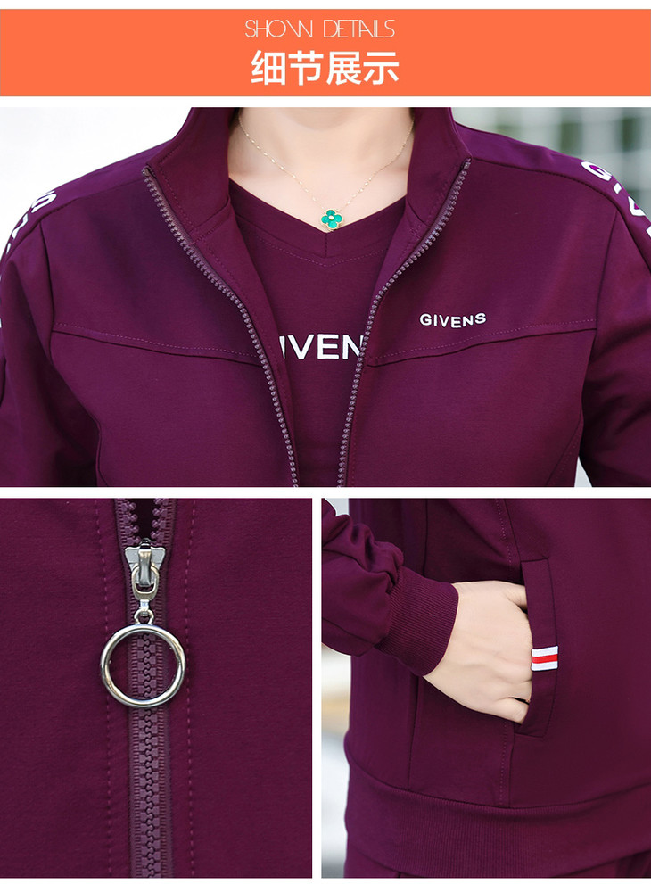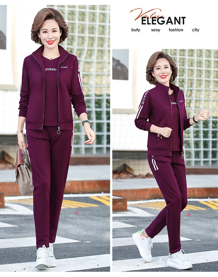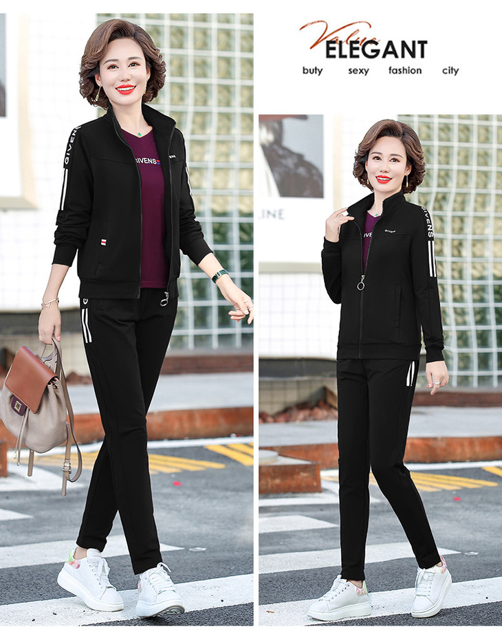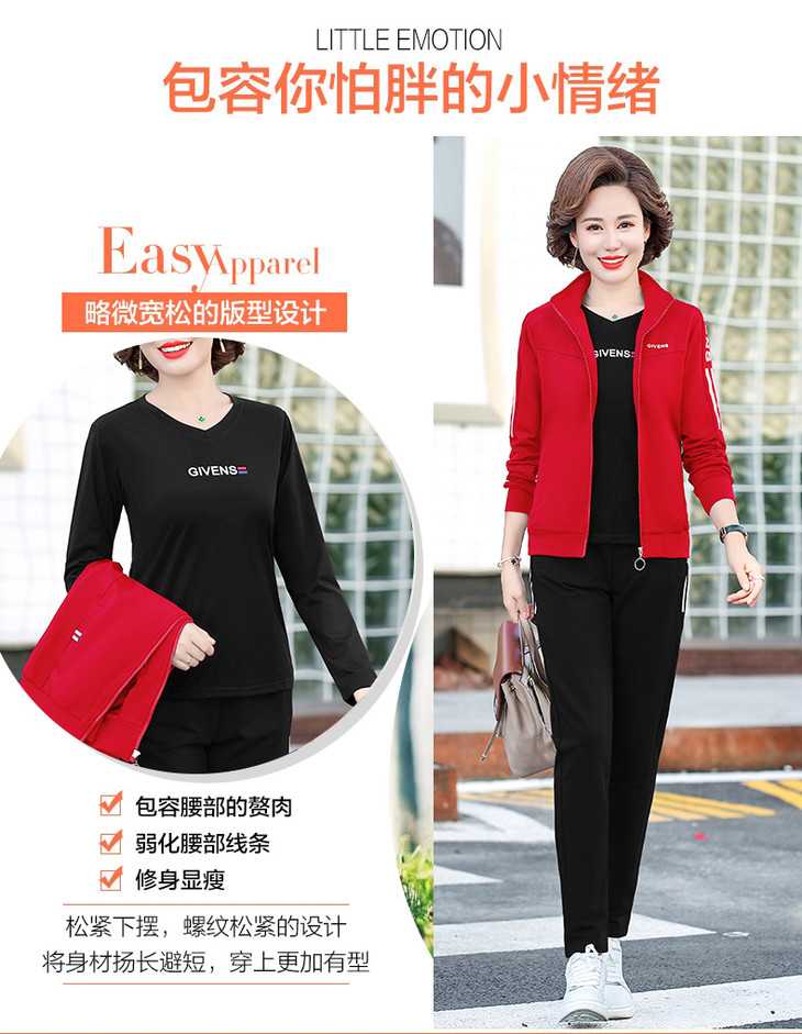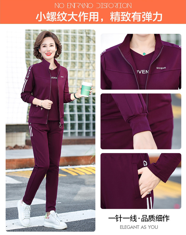 W-2666秋新款洋气减龄休闲中老年运动服套装外套三件套