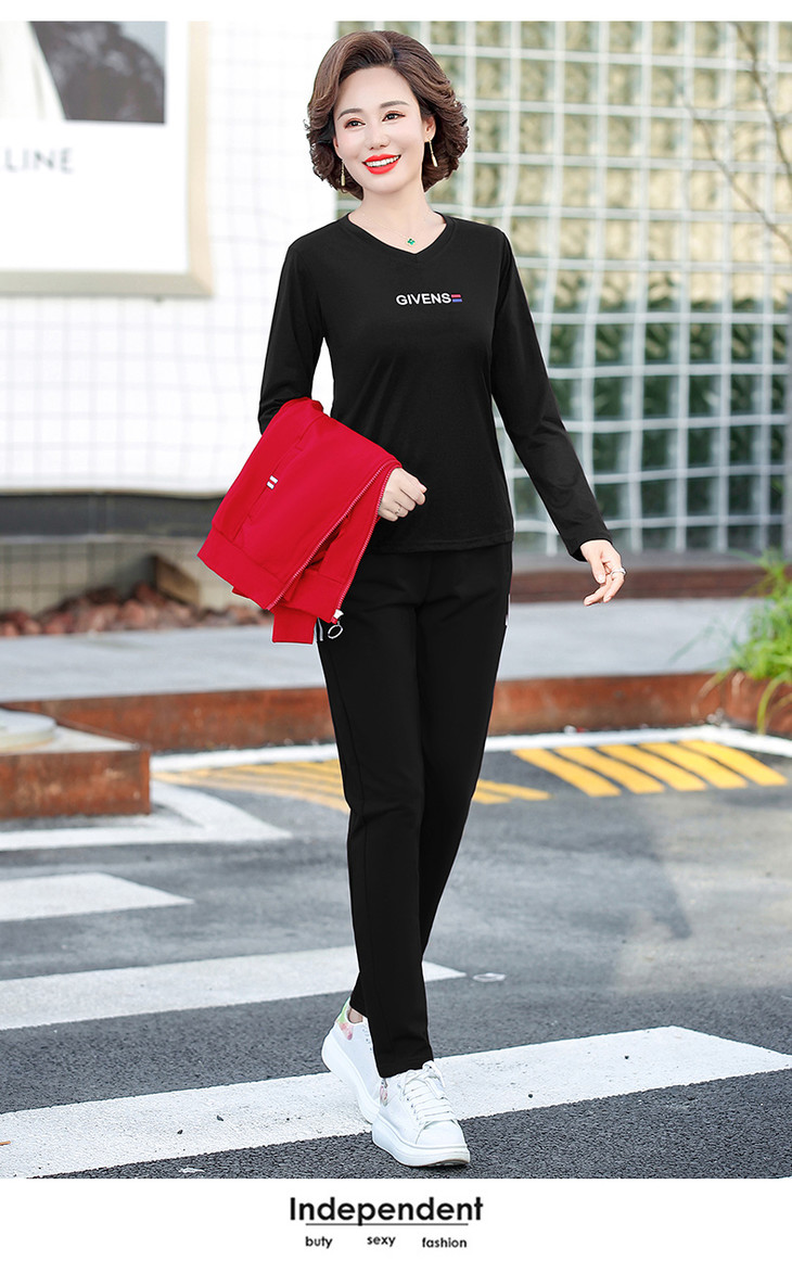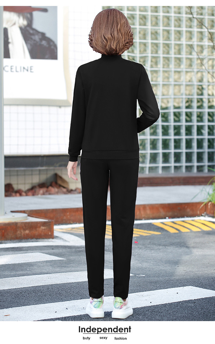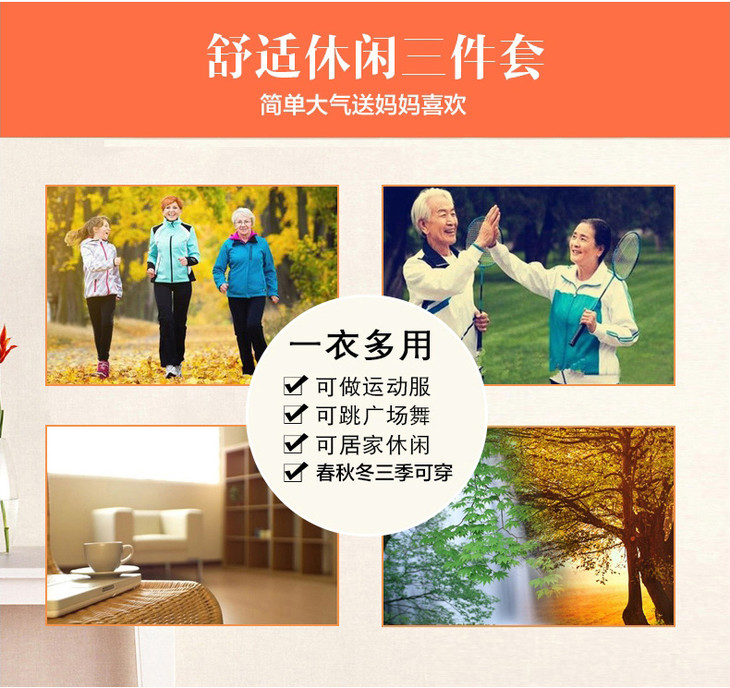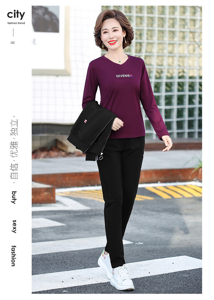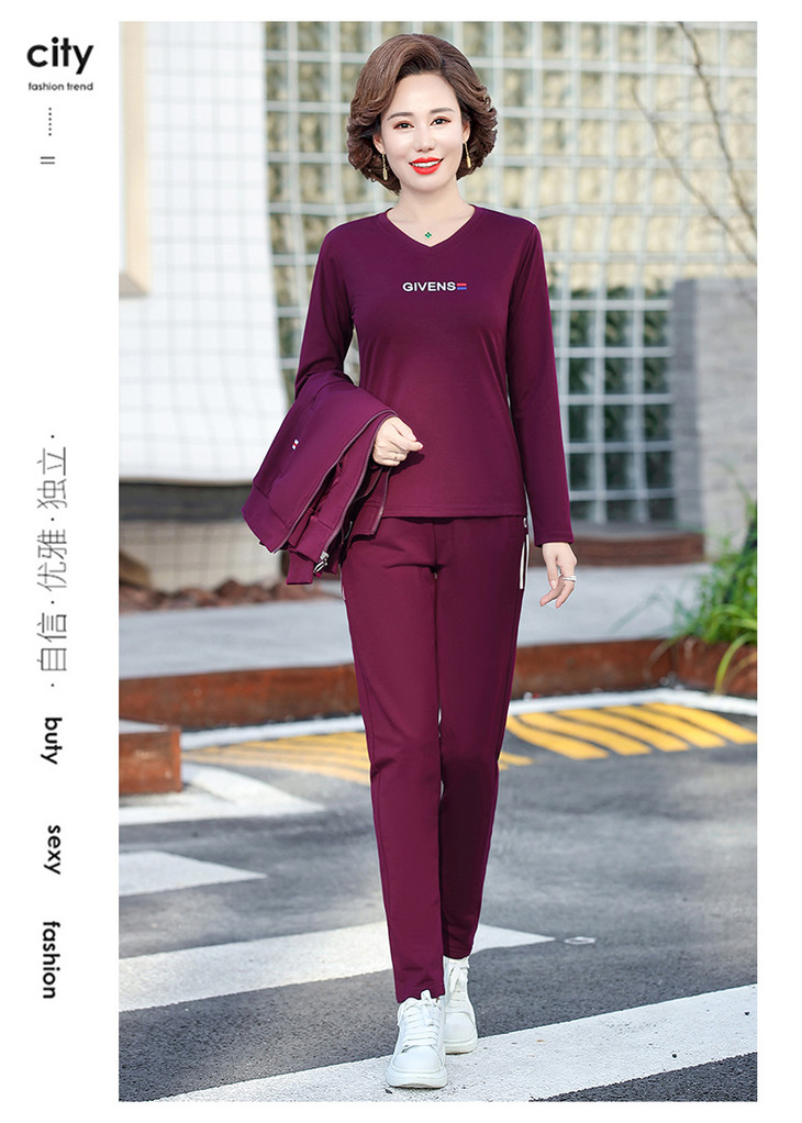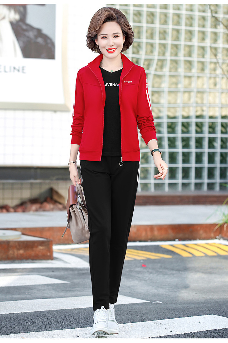 W-2666秋新款洋气减龄休闲中老年运动服套装外套三件套
