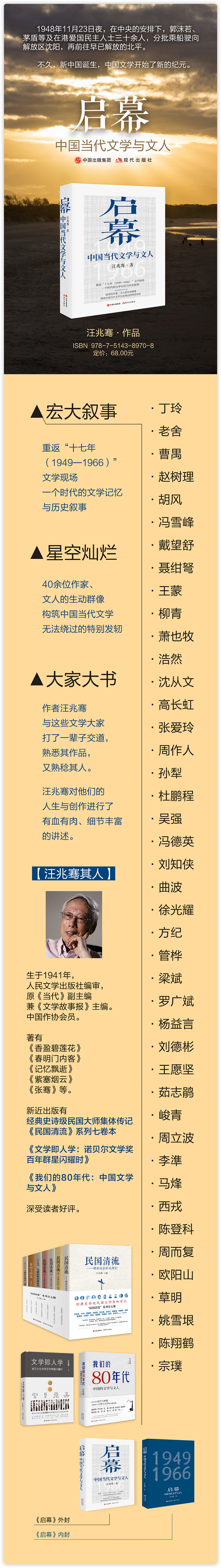 这些中国当代作家,自觉地将壮丽斗争的历史记忆和人民创造新生活的现实记忆,铸成文学的情感与经验,内化于心性血脉,以清醒保持中国传统文化的身份、发挥自己的民族特色,以其品种、颜色和香气竞相争妍于家国的姿态,显示了文学的繁荣与力量。他们和他们的作品,构成了一部中国当代文学启幕史。