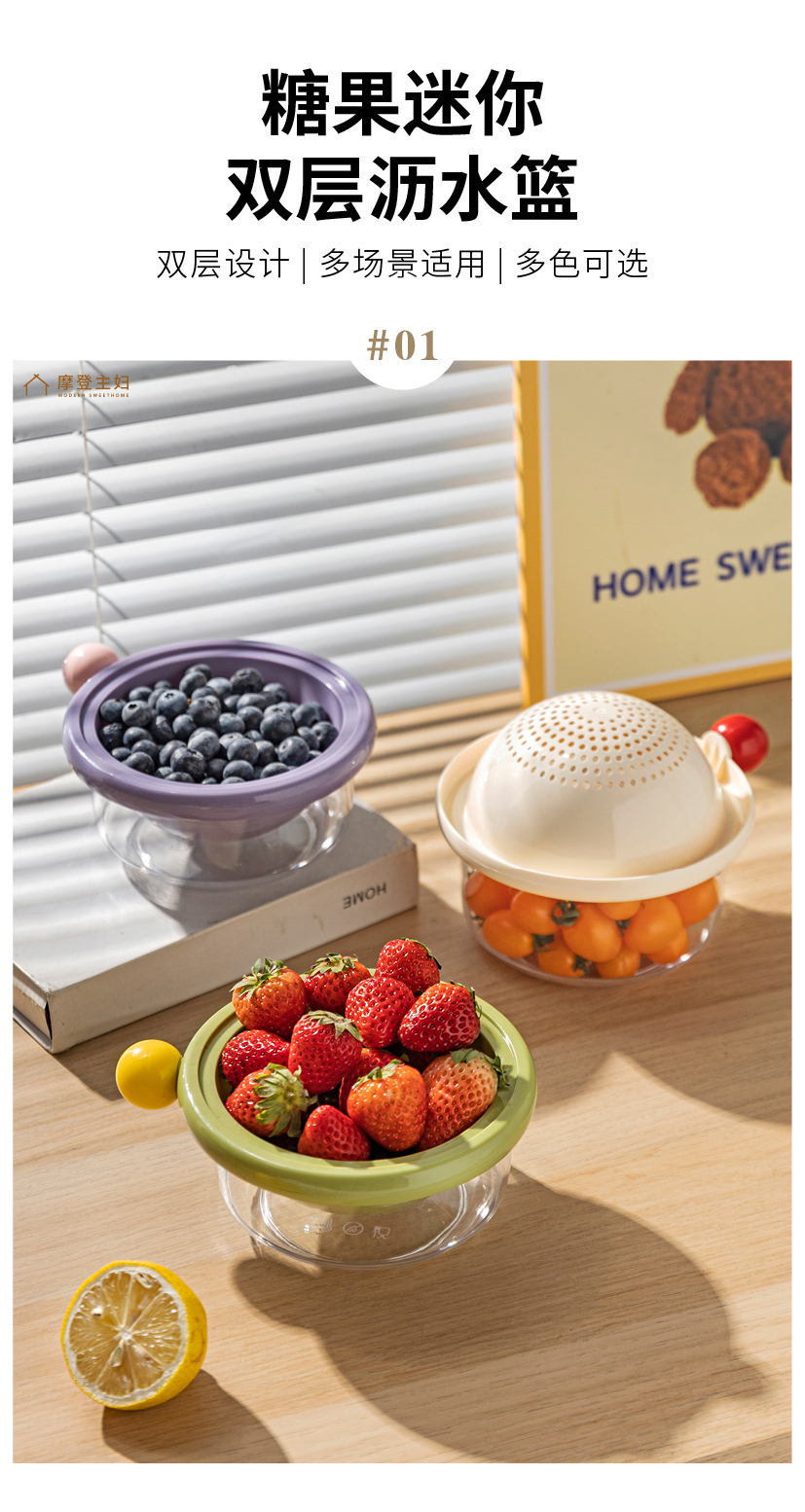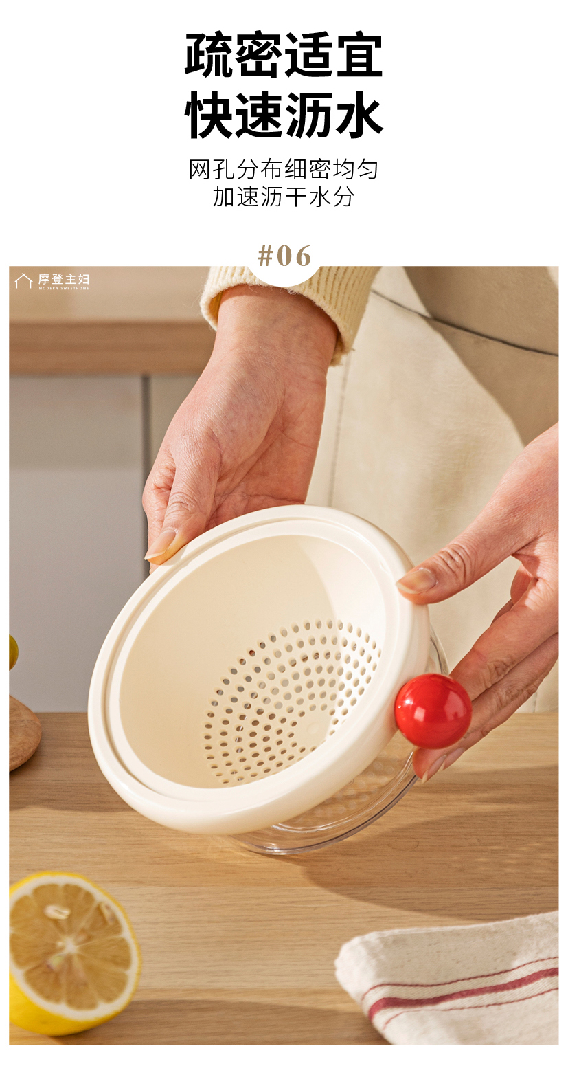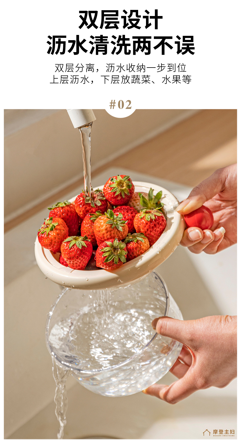 摩登主妇洗水果沥水篮客厅家用新款水果盘小精致高颜值双层滤水篮