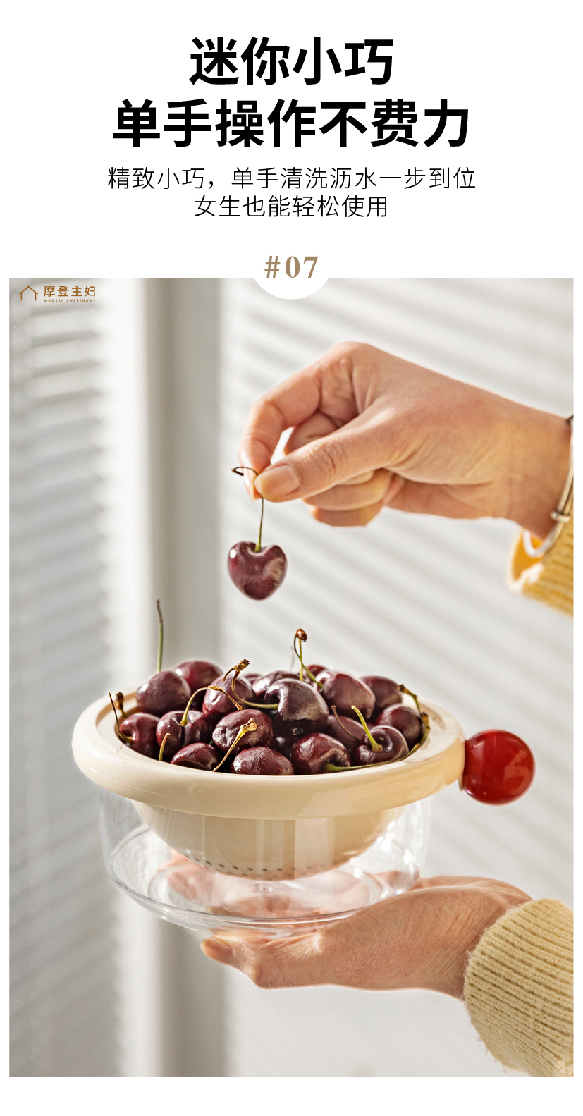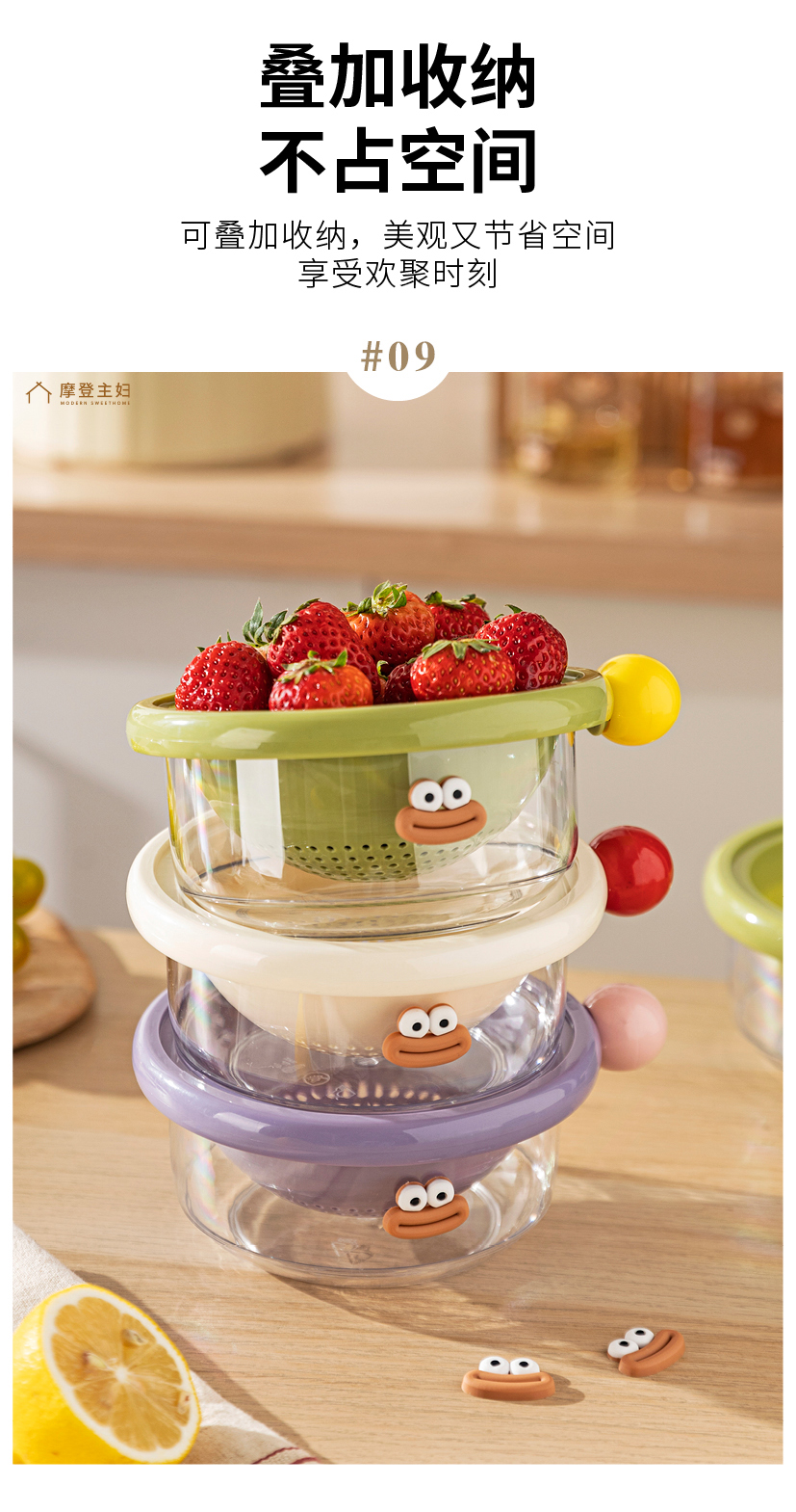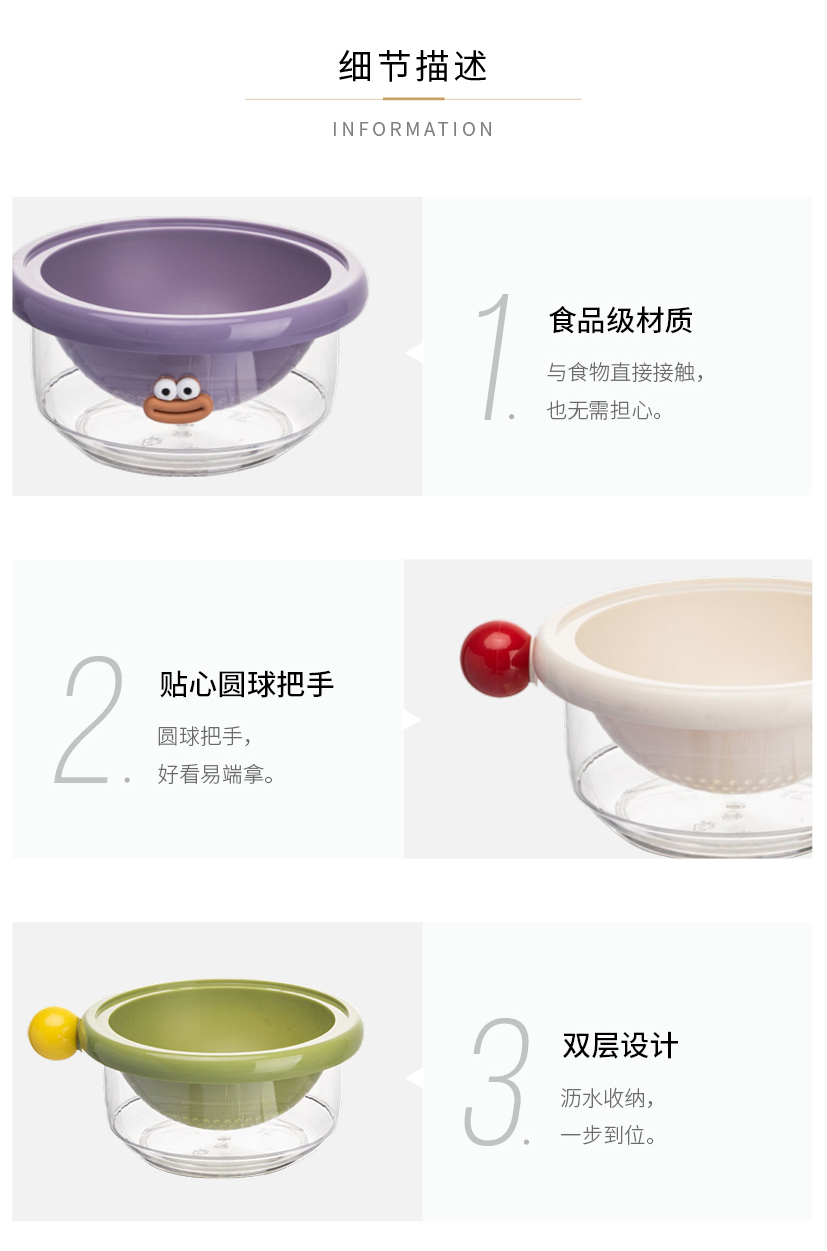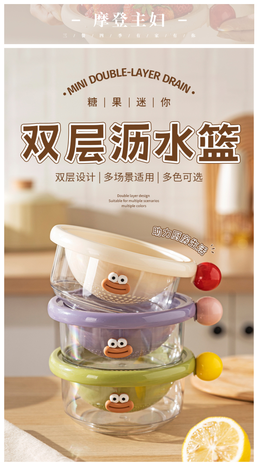 摩登主妇洗水果沥水篮客厅家用新款水果盘小精致高颜值双层滤水篮
