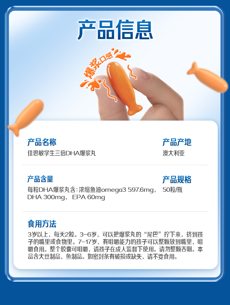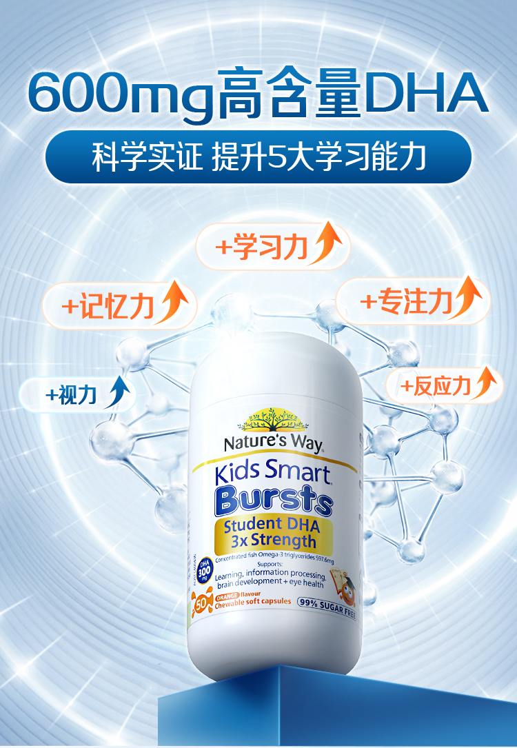 Nature's Way佳思敏三倍dha儿童鱼油学生补脑营养包50粒