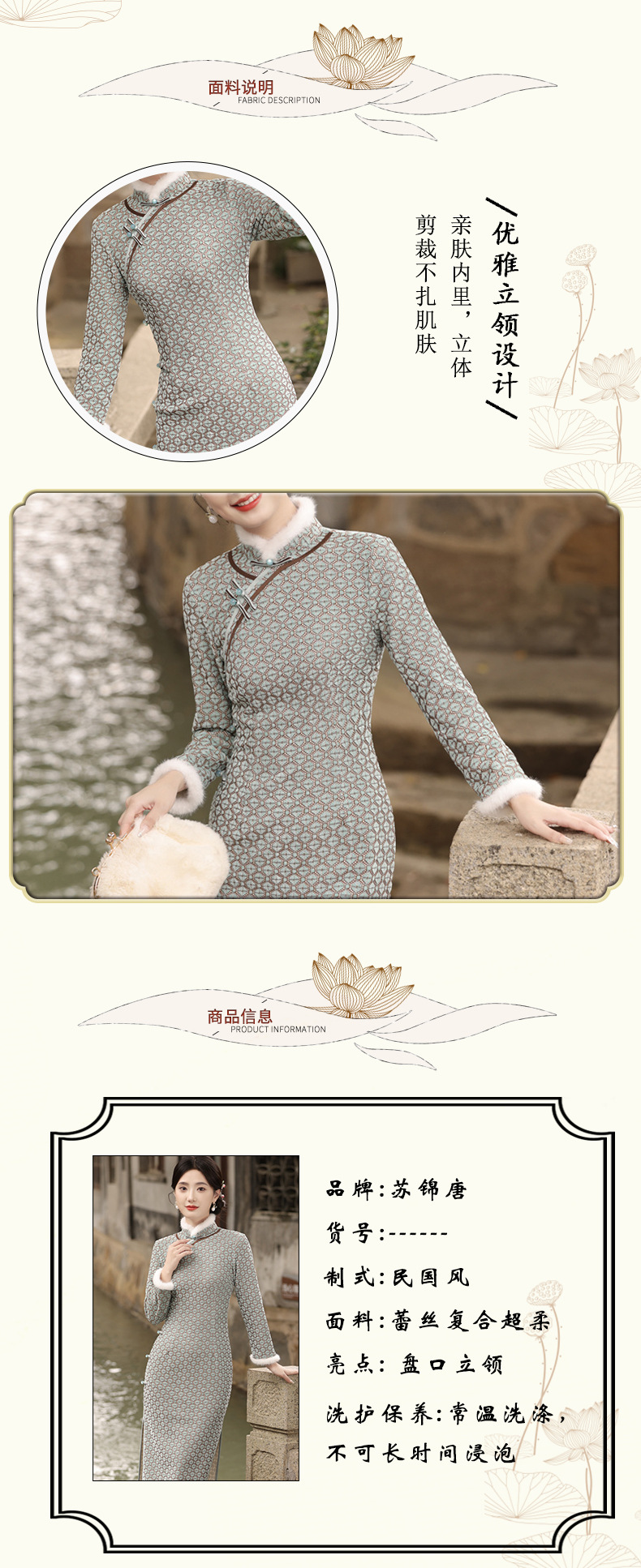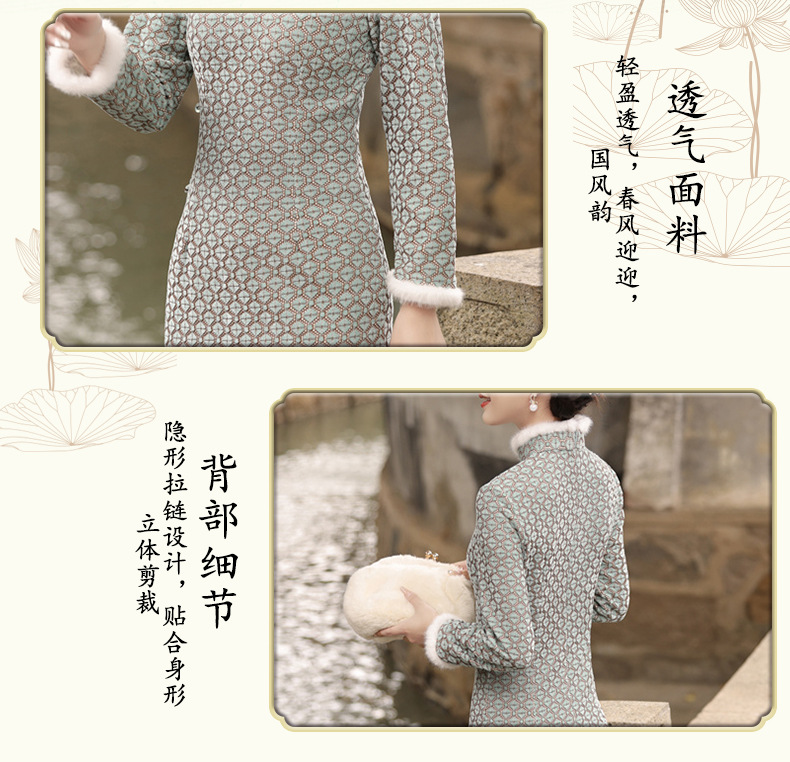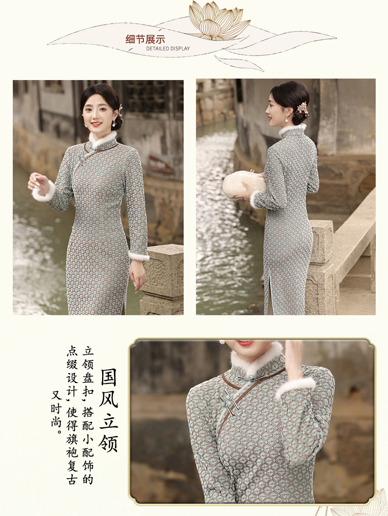 JN-401冬季加绒加毛加厚侧八扣长款旗袍文艺复古中国风气质女款旗袍