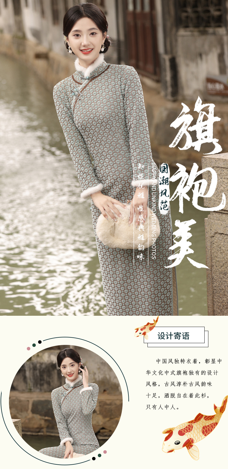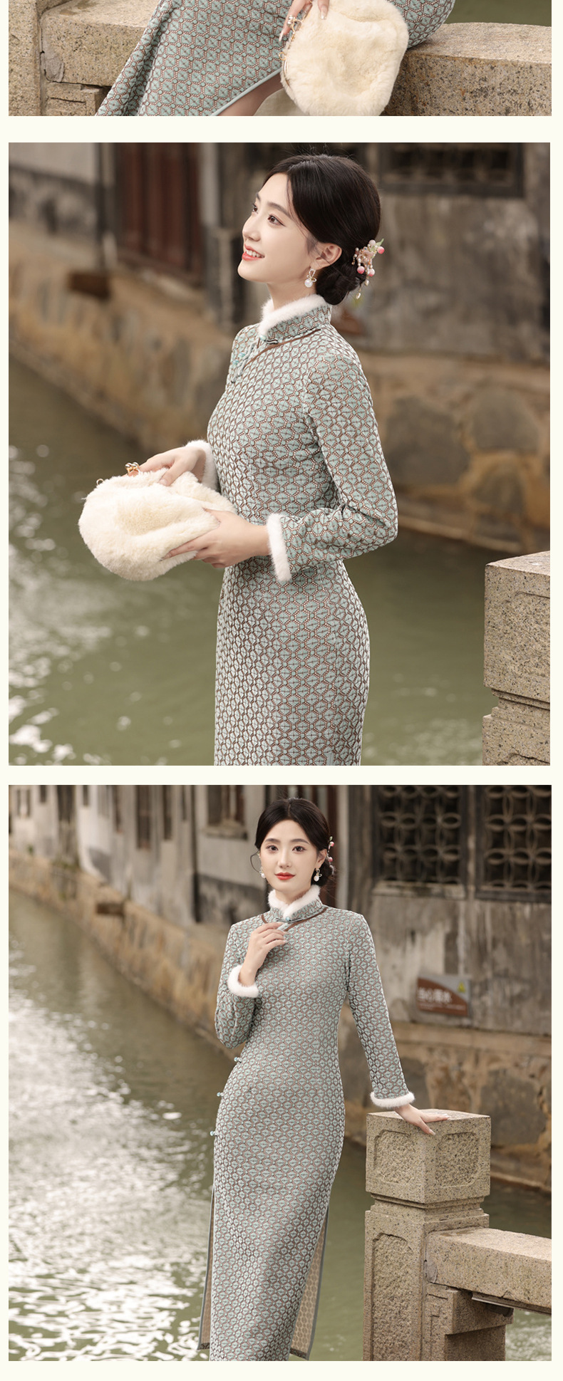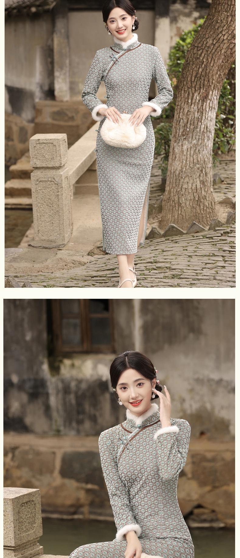 JN-401冬季加绒加毛加厚侧八扣长款旗袍文艺复古中国风气质女款旗袍