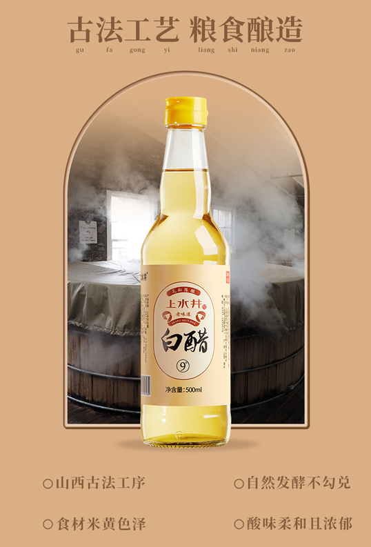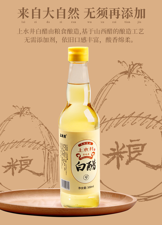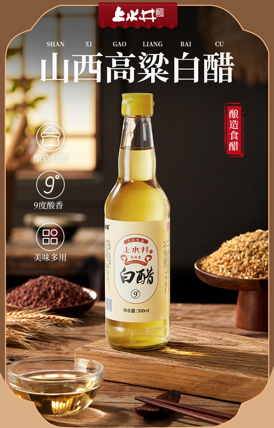 山西上水井9度白醋500ML*2瓶起粮食酿造家用食用高粱白醋