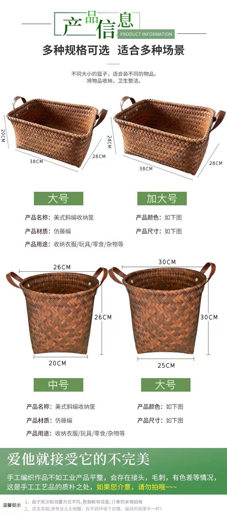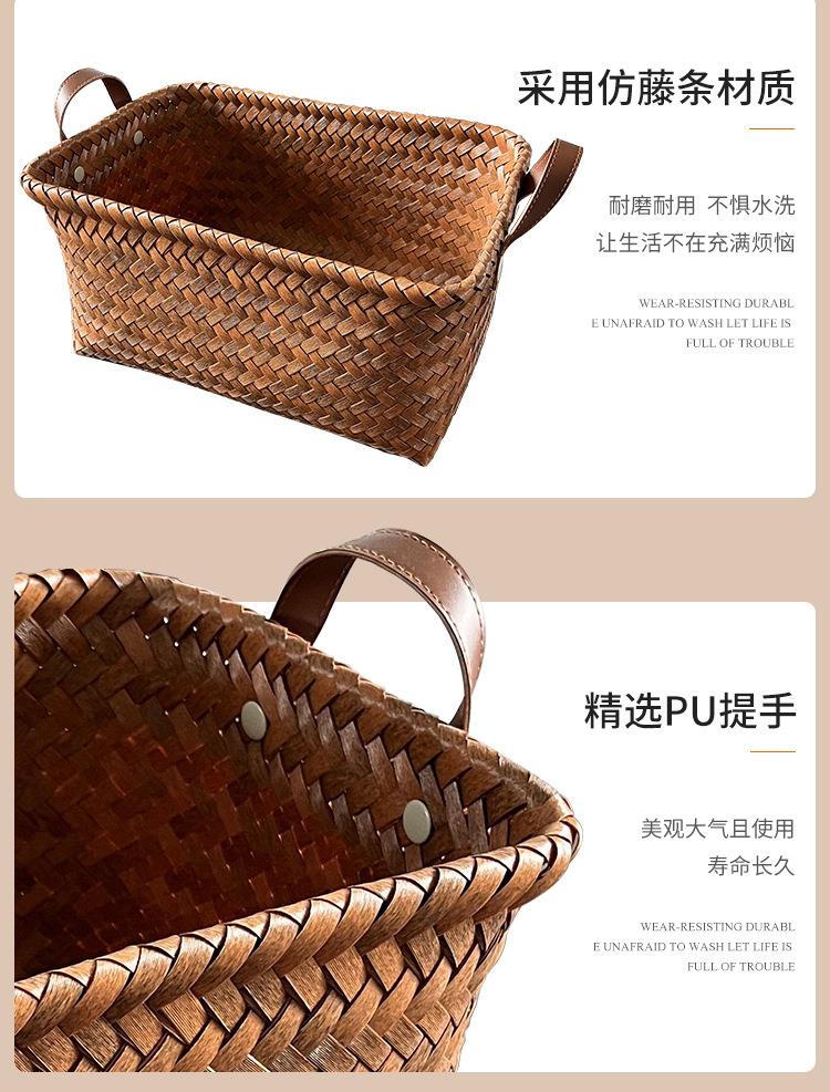 【美式编制高级收纳筐】脏衣服篮网红款仿藤编PU把手洗衣桶零食玩具脏衣篓