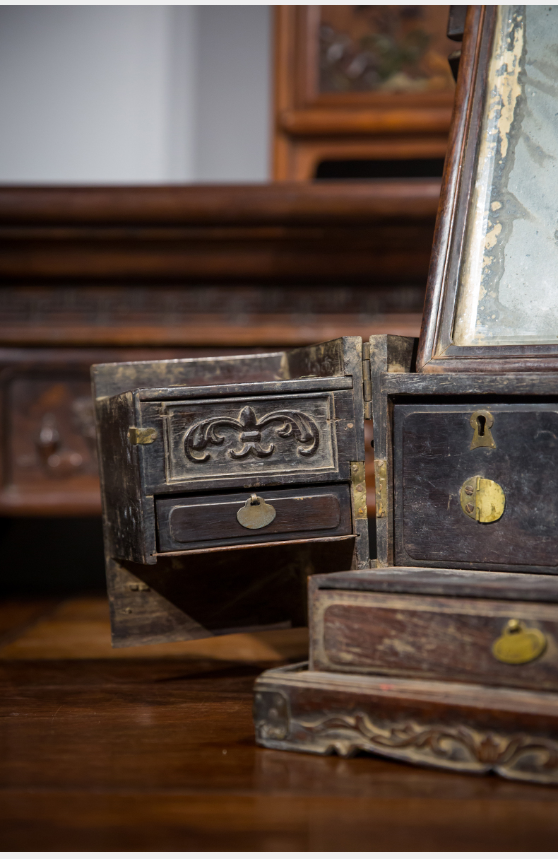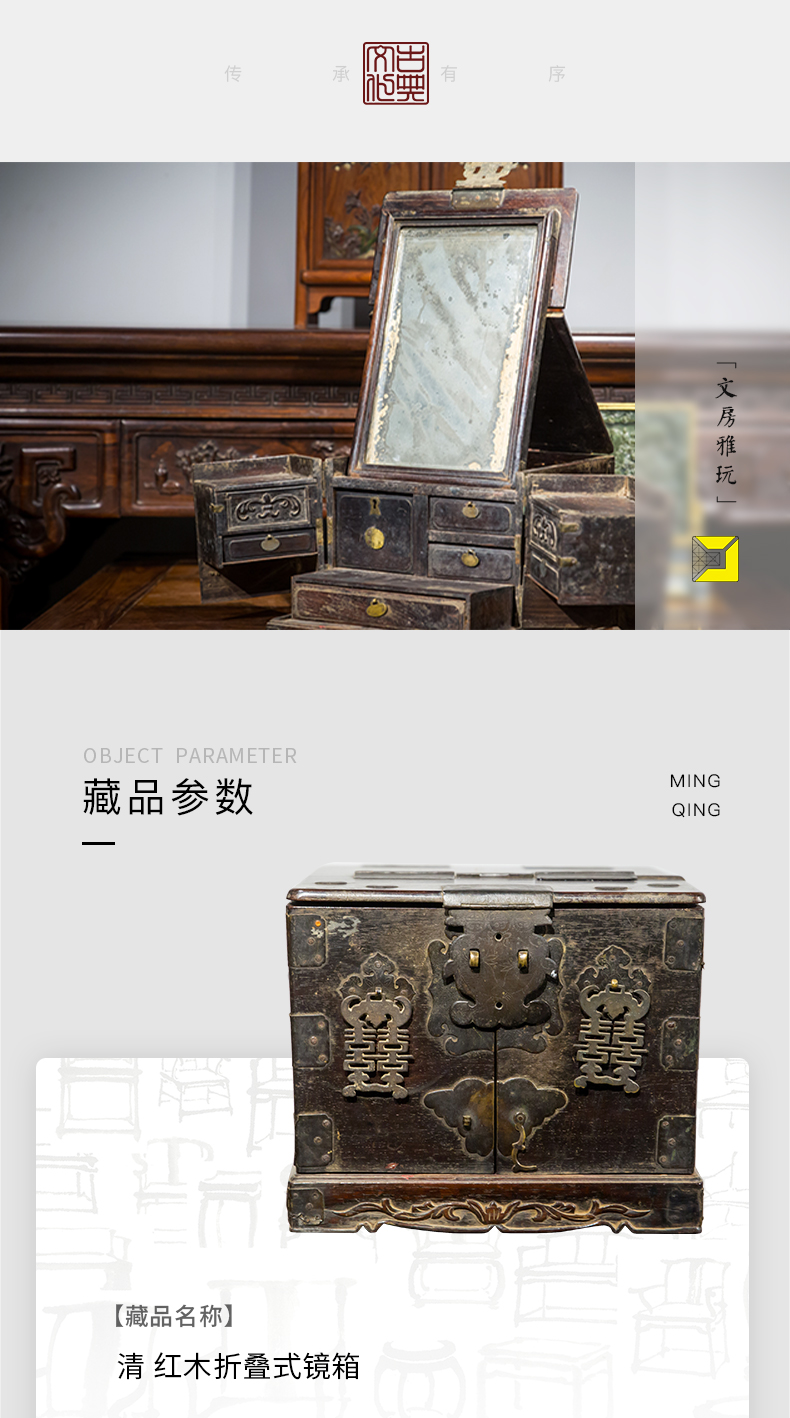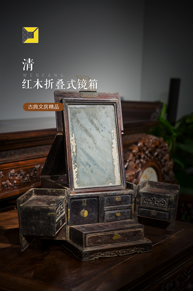 清代 红木折叠式镜箱