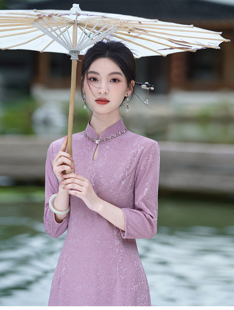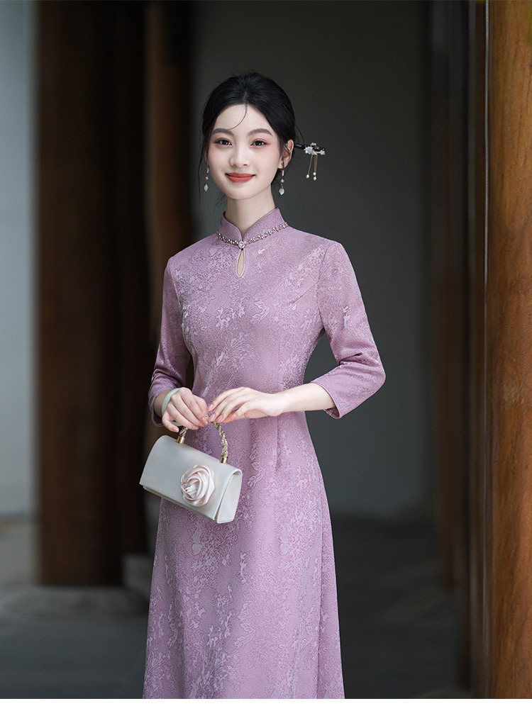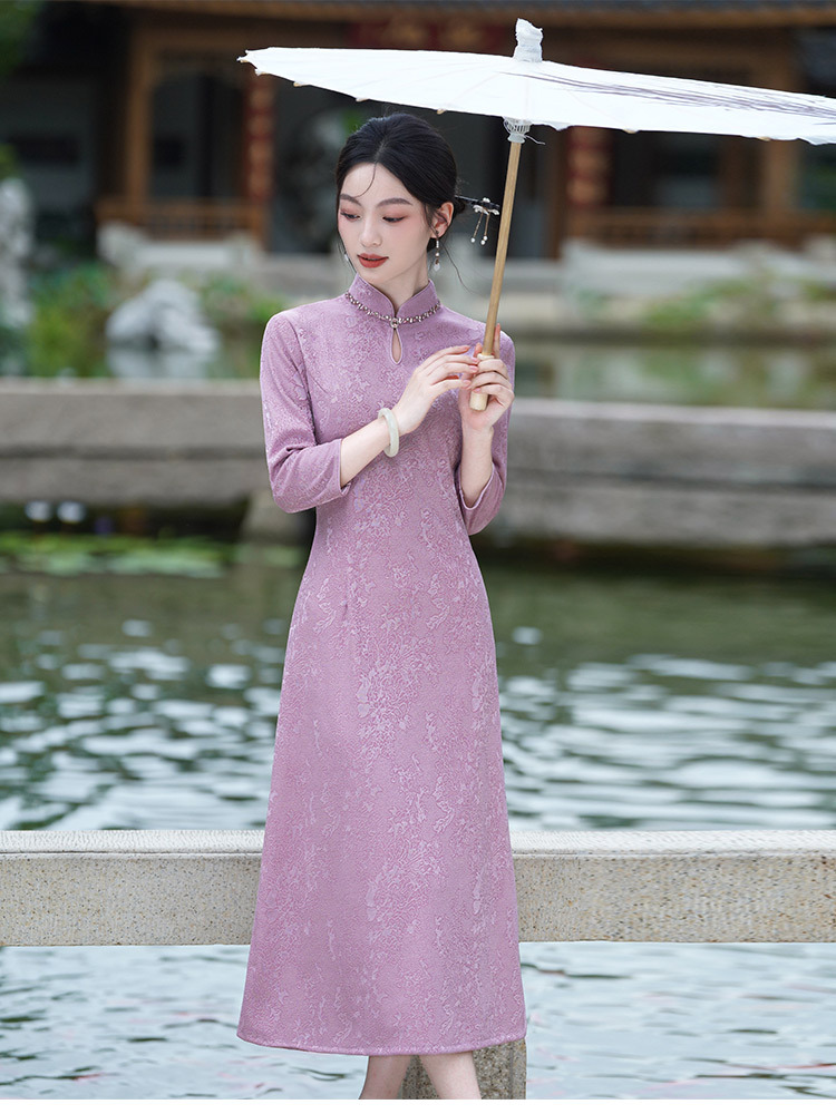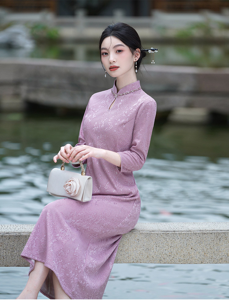 SC22303紫色显瘦妈妈装国风新中式秋季长袖旗袍2025新款女复古连衣裙秋冬