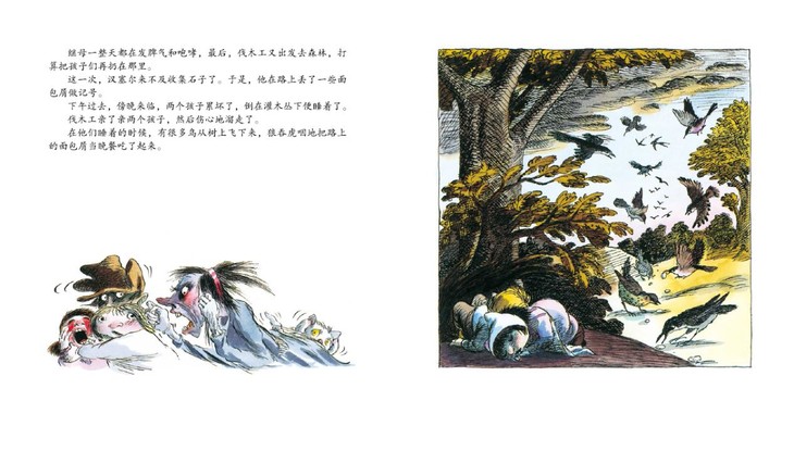 很久以前,伐木工和他的两个孩子,住在一片昏暗树林的一座昏暗小木屋里。男孩叫汉塞尔,他的妹妹叫格莱特。