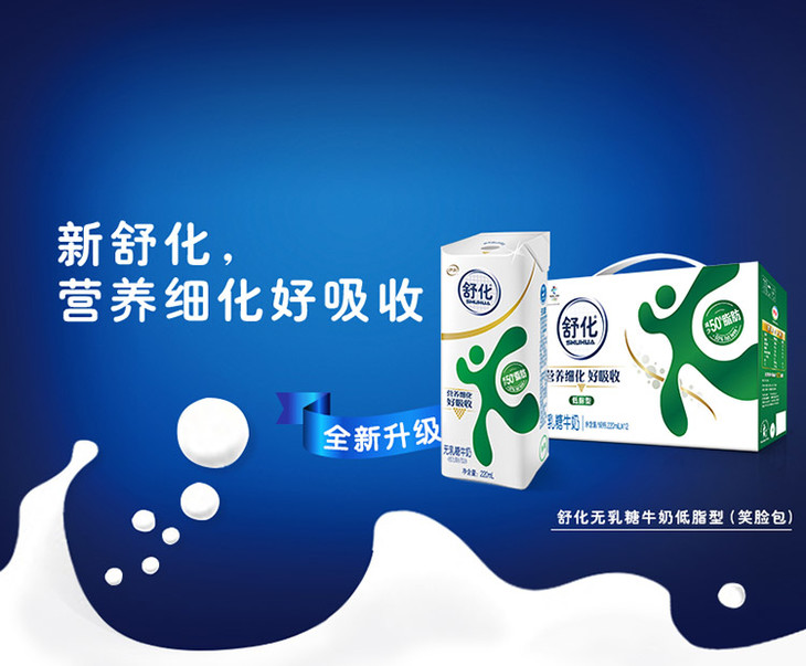 舒化无乳糖牛奶低脂型、全脂型220ml*12盒