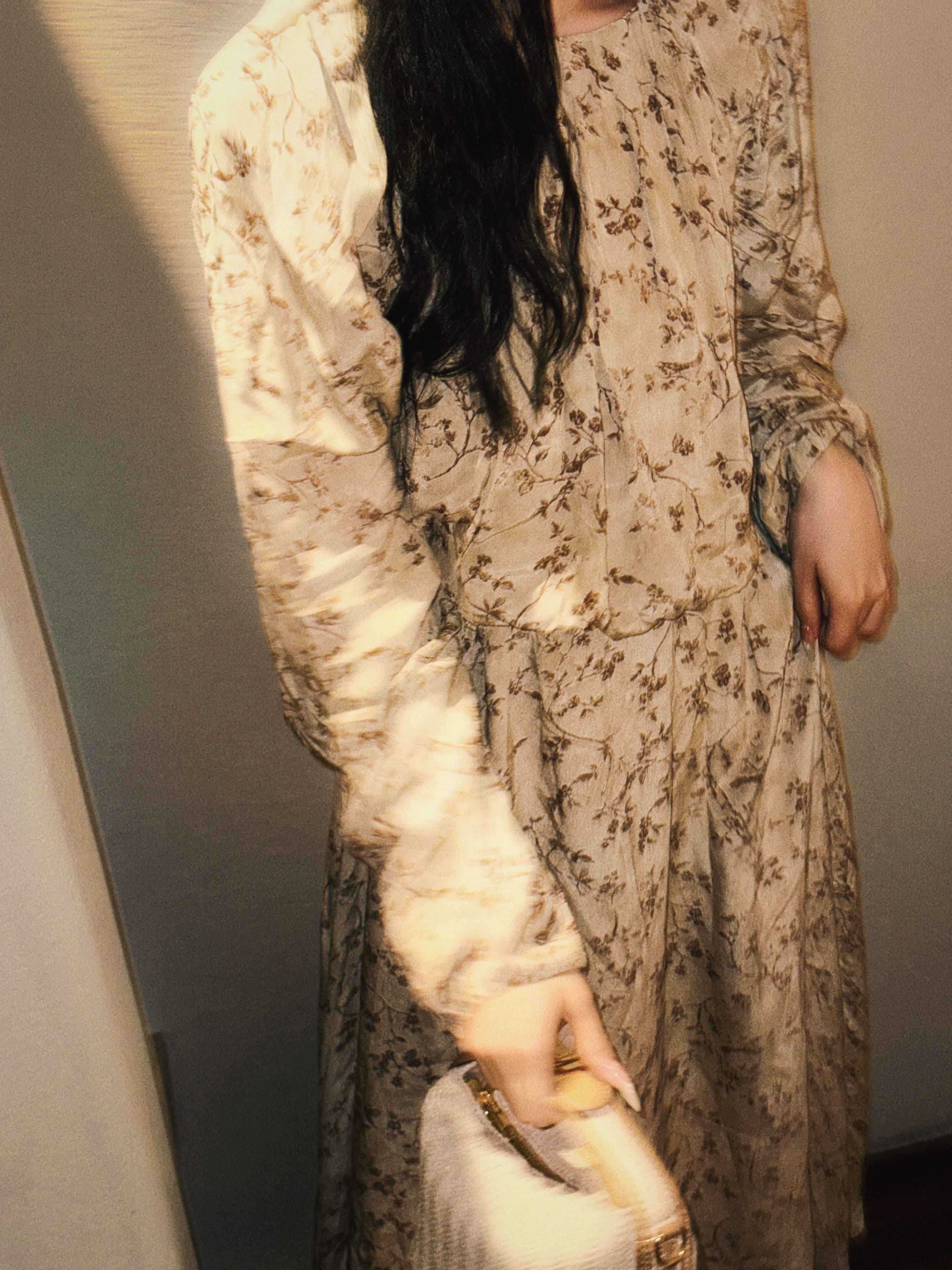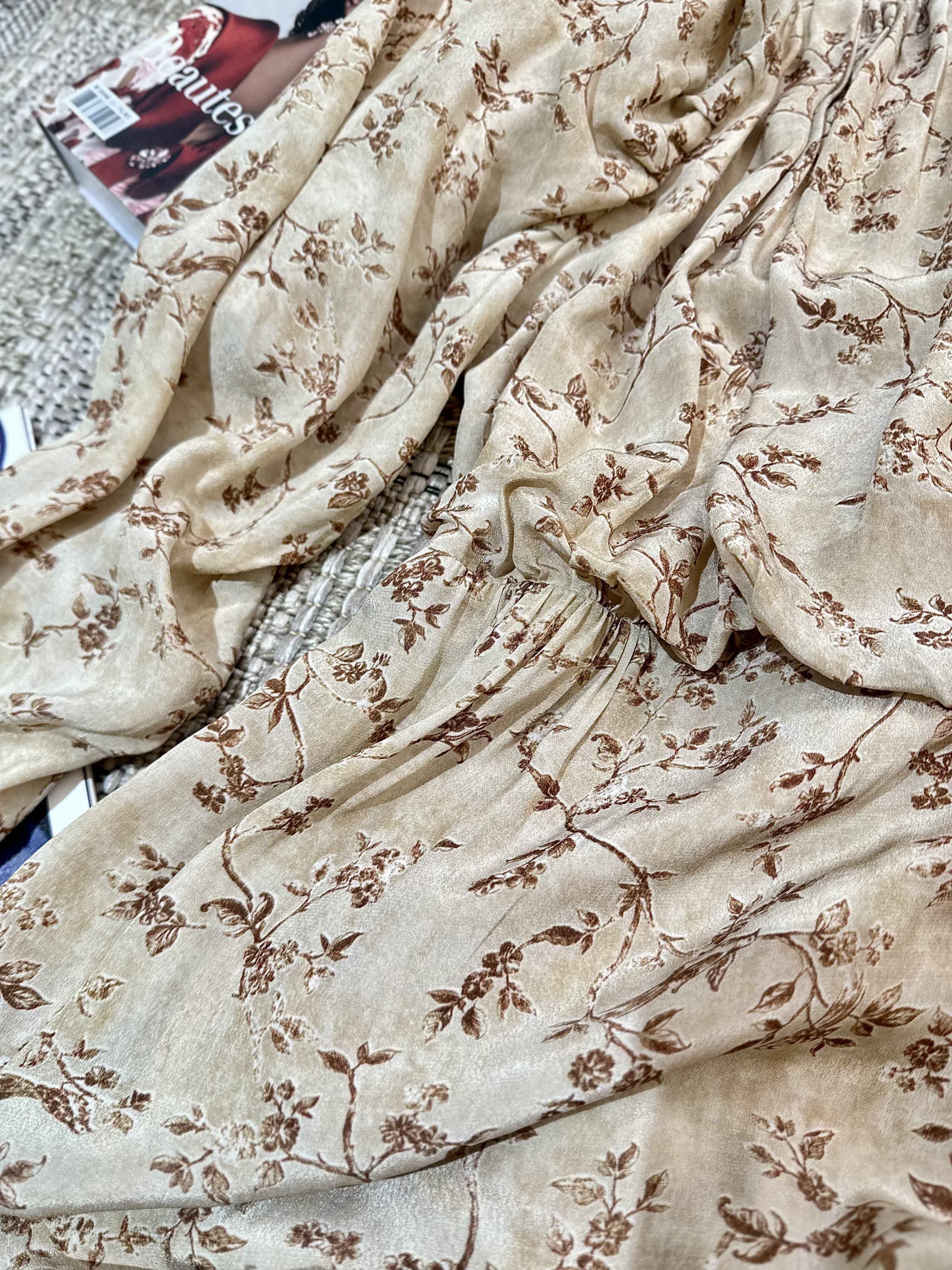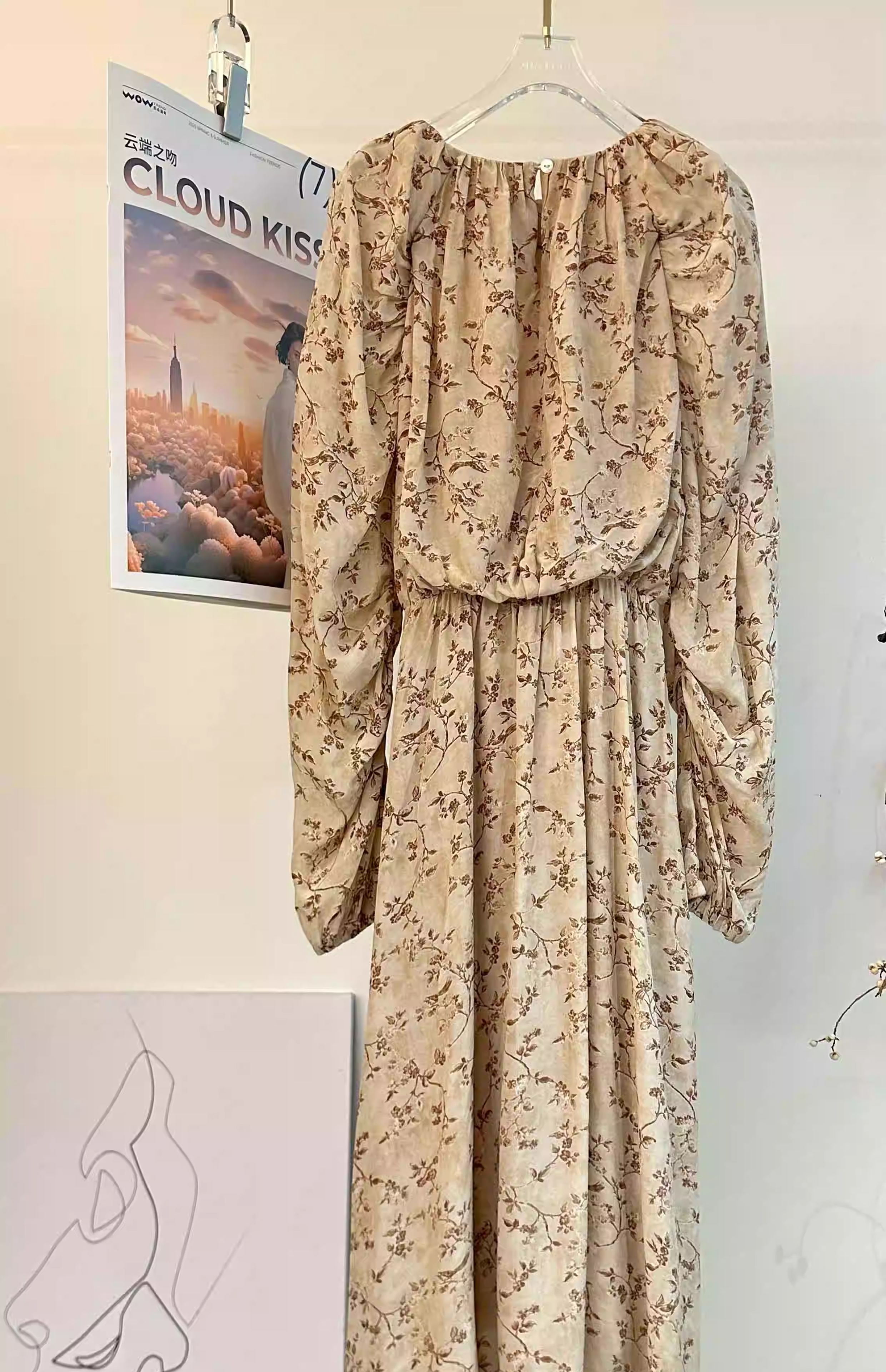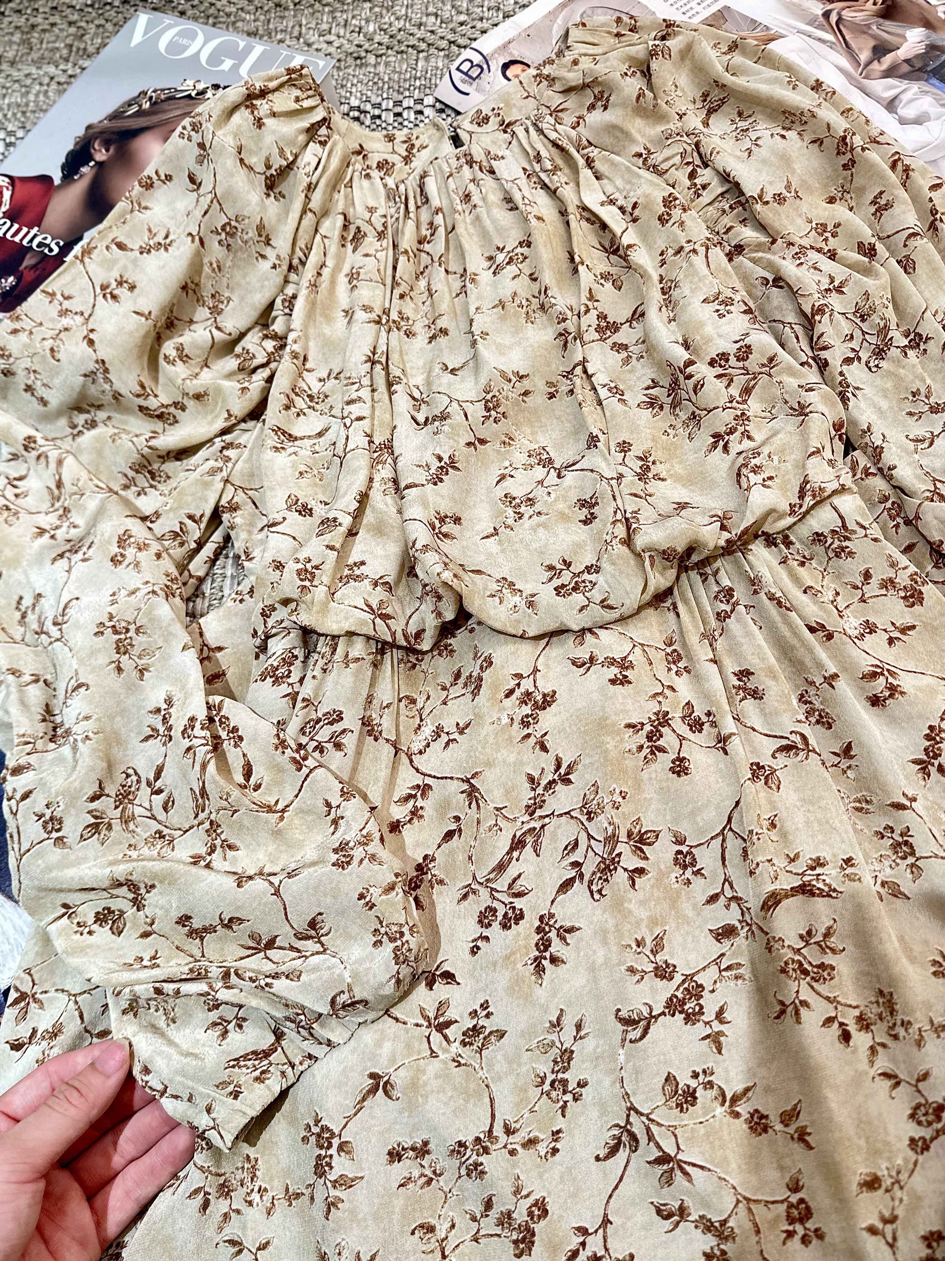 顺丰包邮洛诗琳15754春季新款气质人丝清新印花抽褶连衣裙女50748