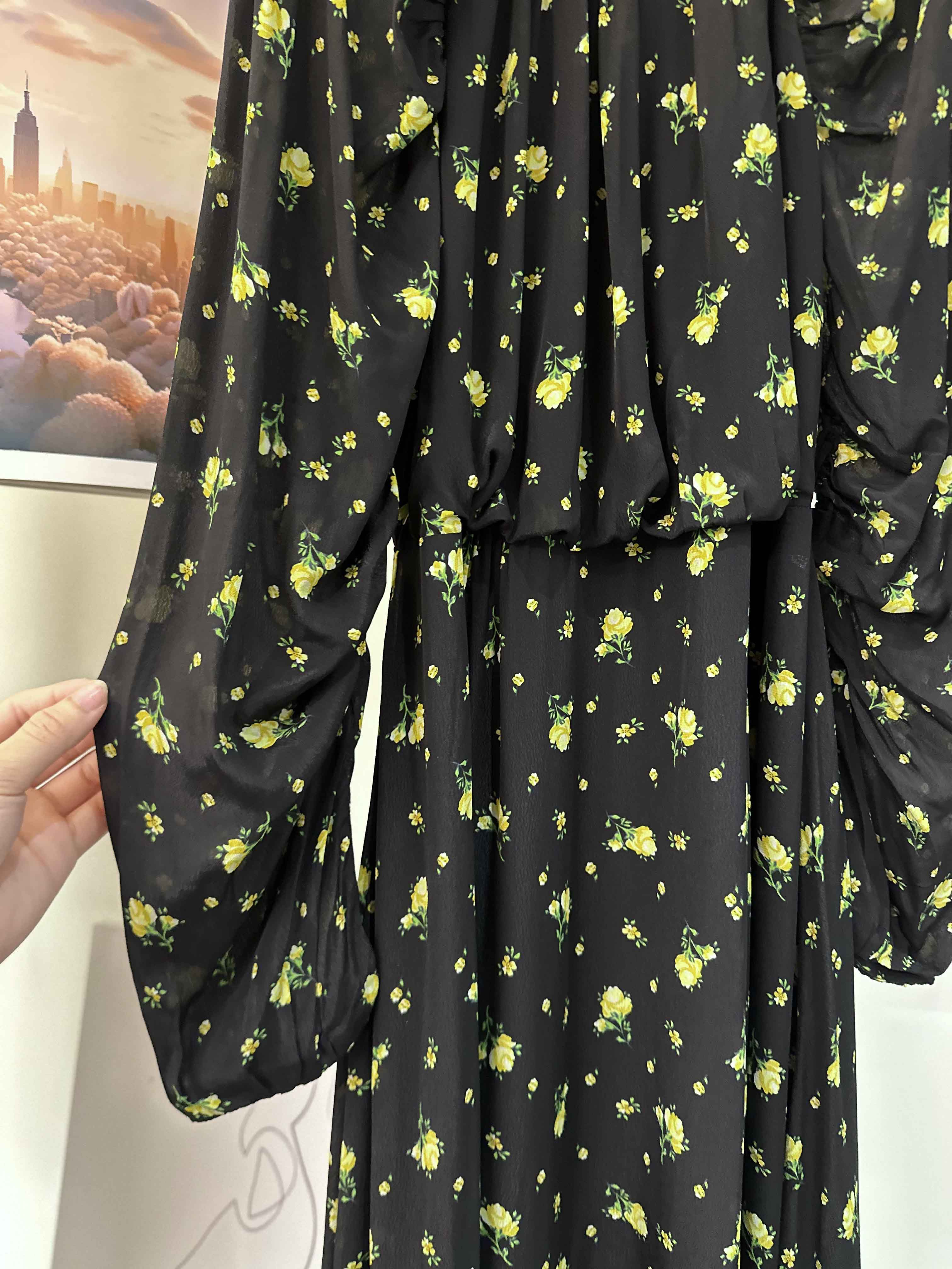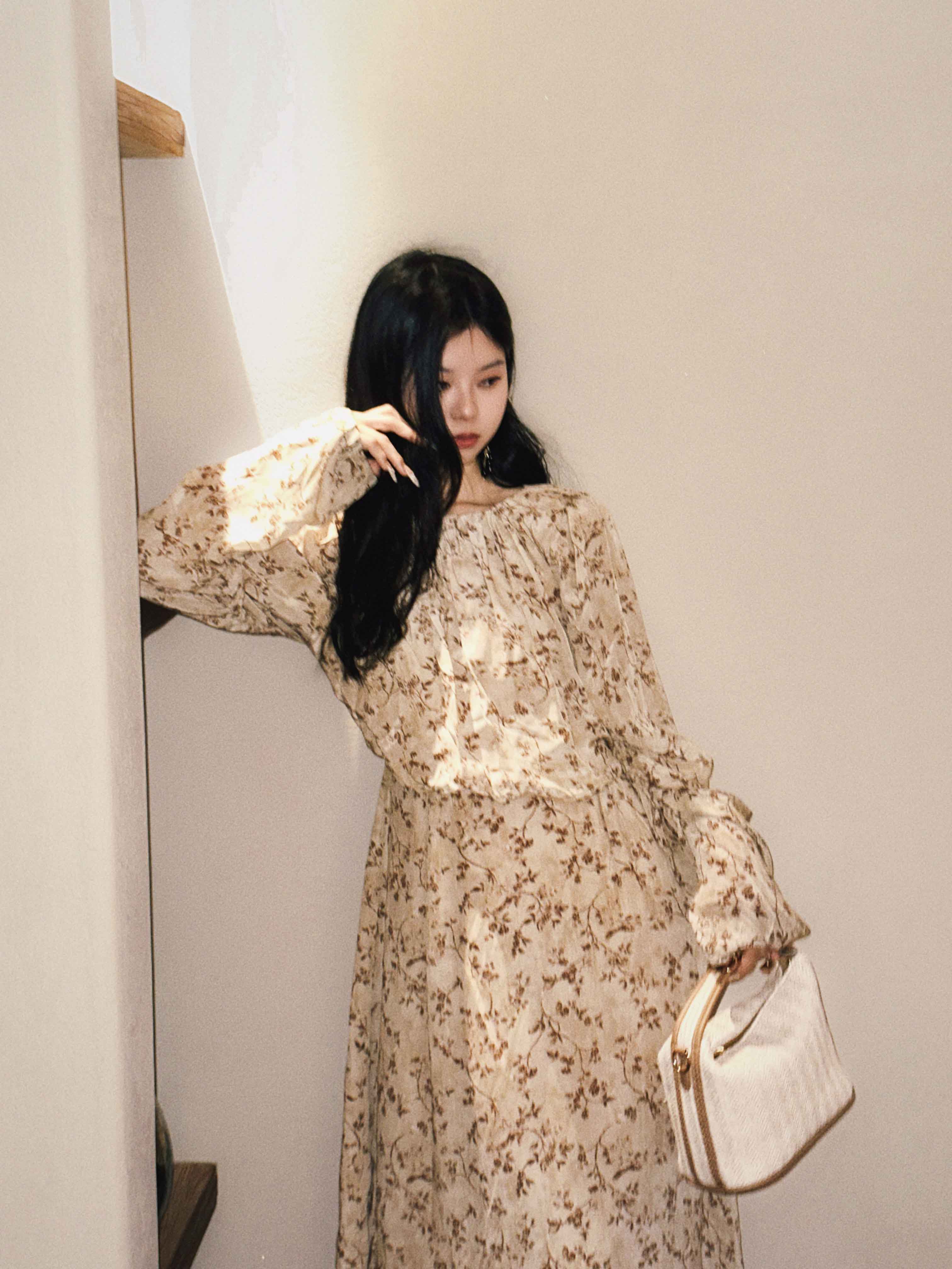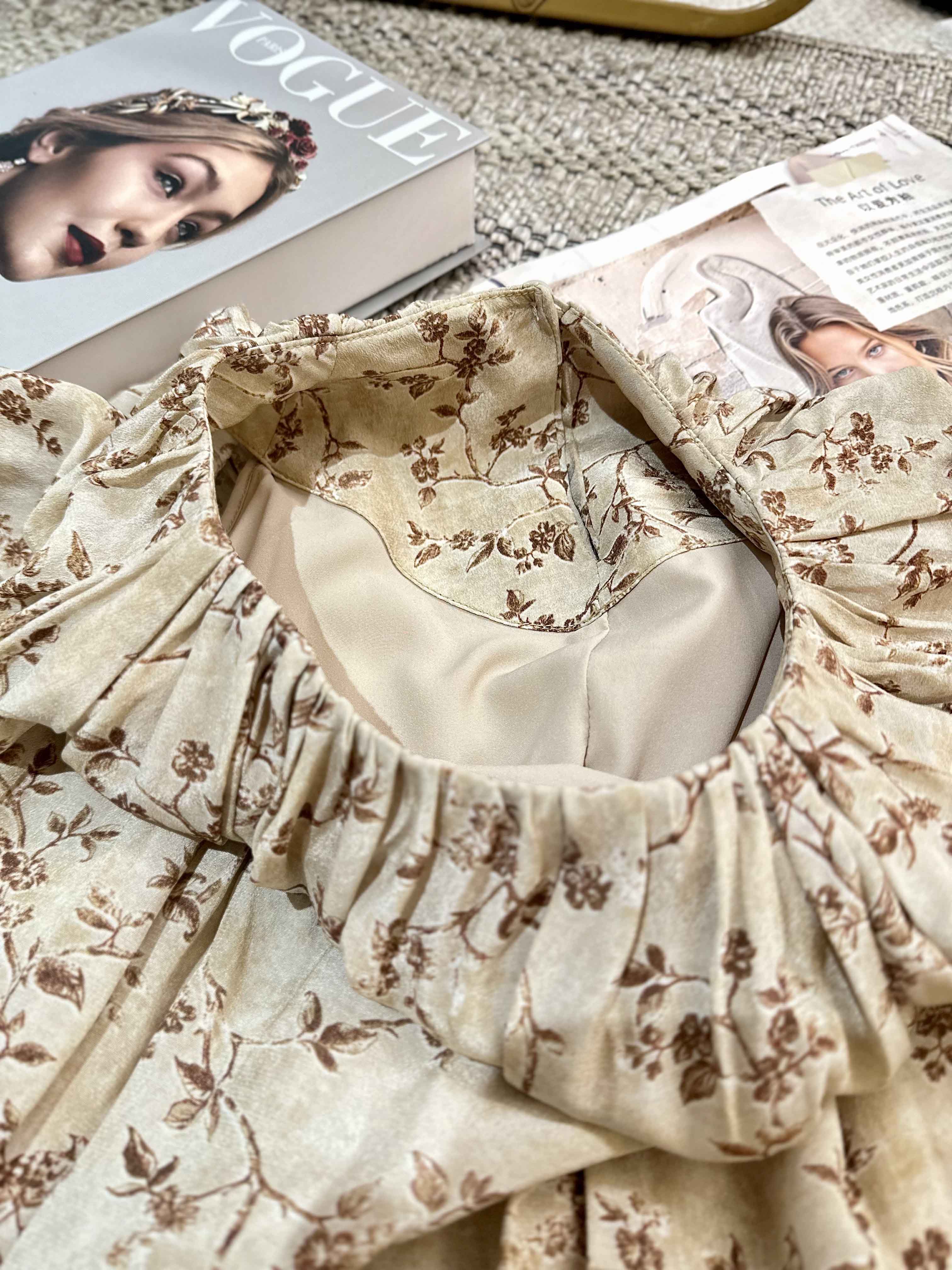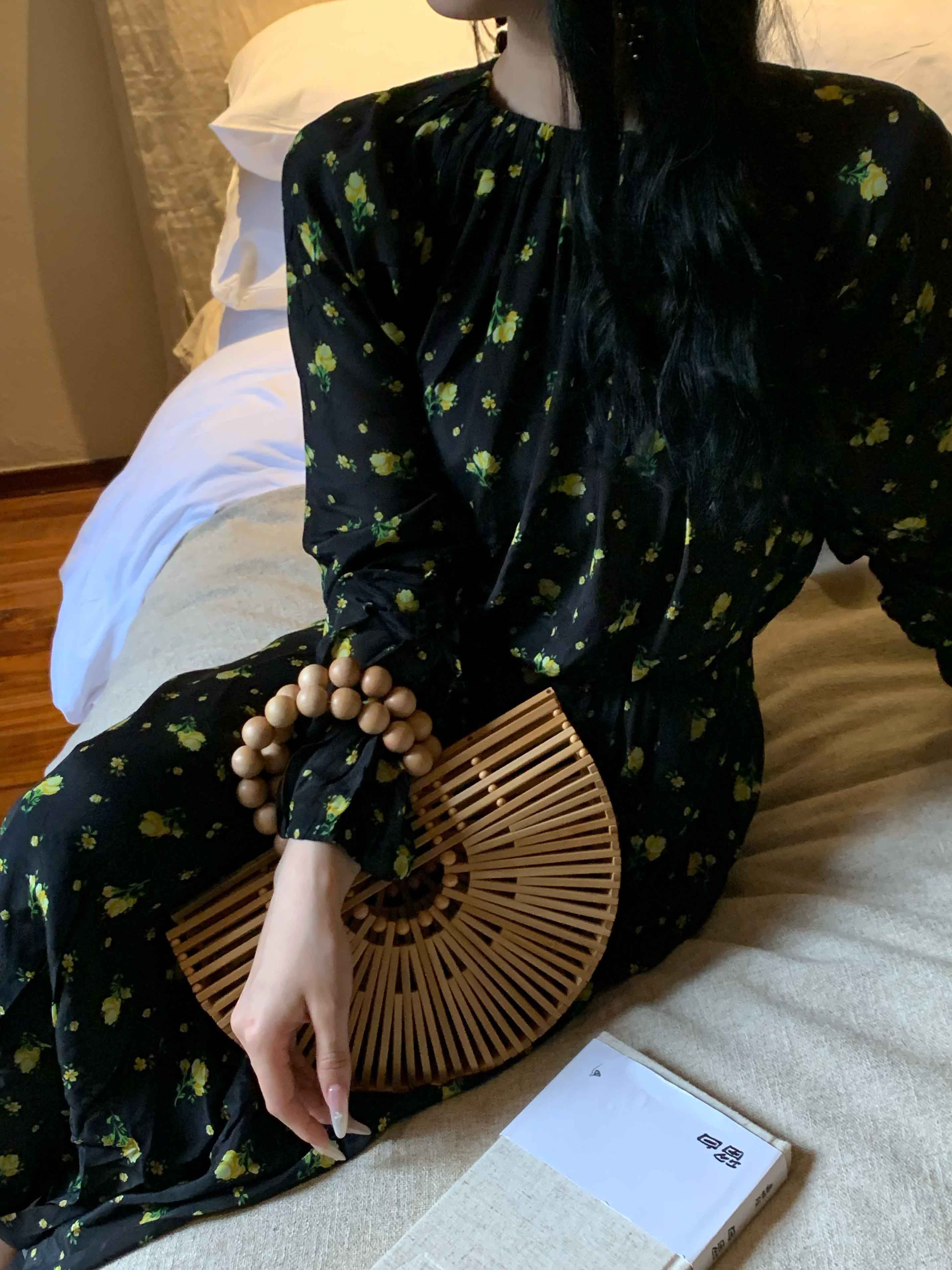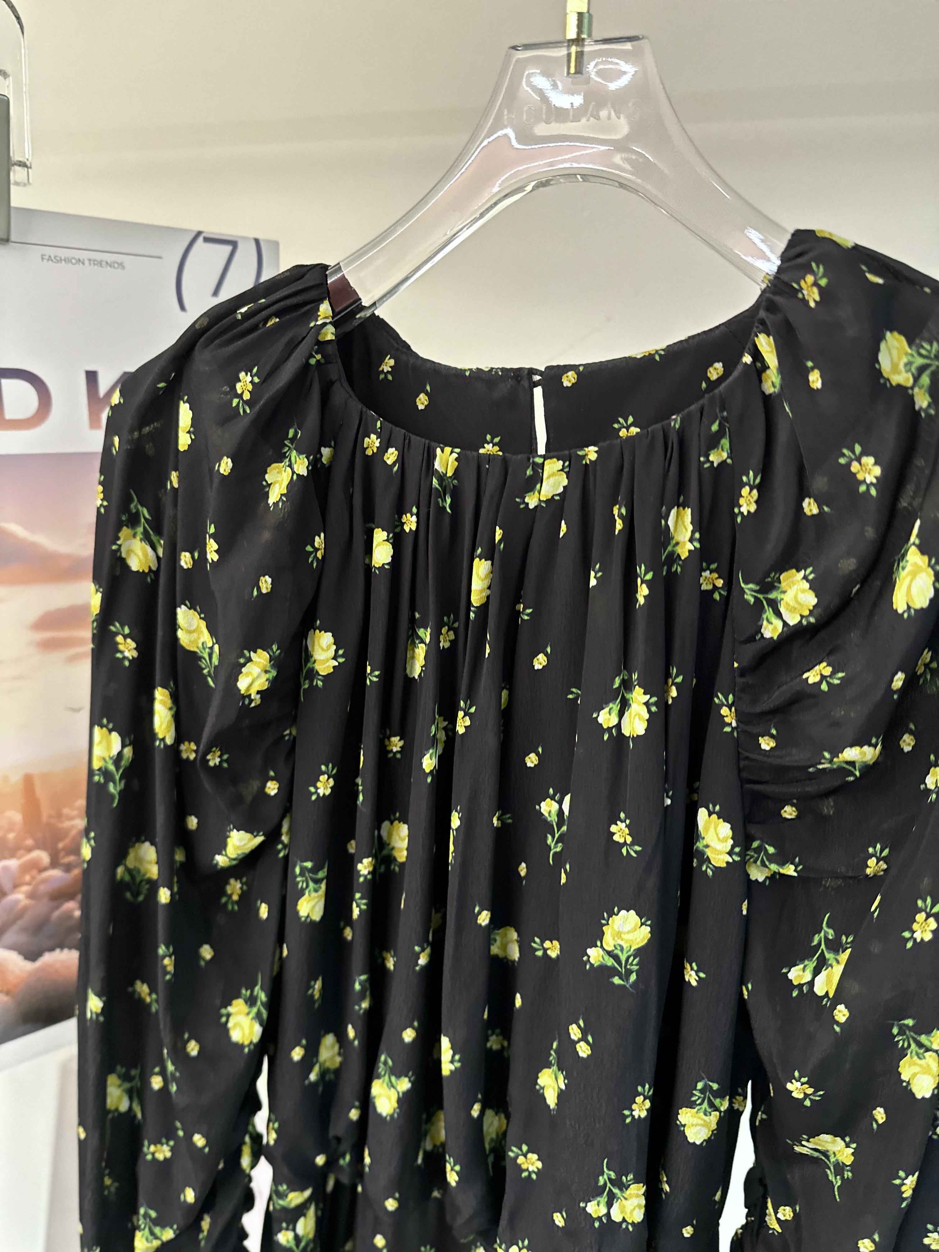 顺丰包邮洛诗琳15754春季新款气质人丝清新印花抽褶连衣裙女50748