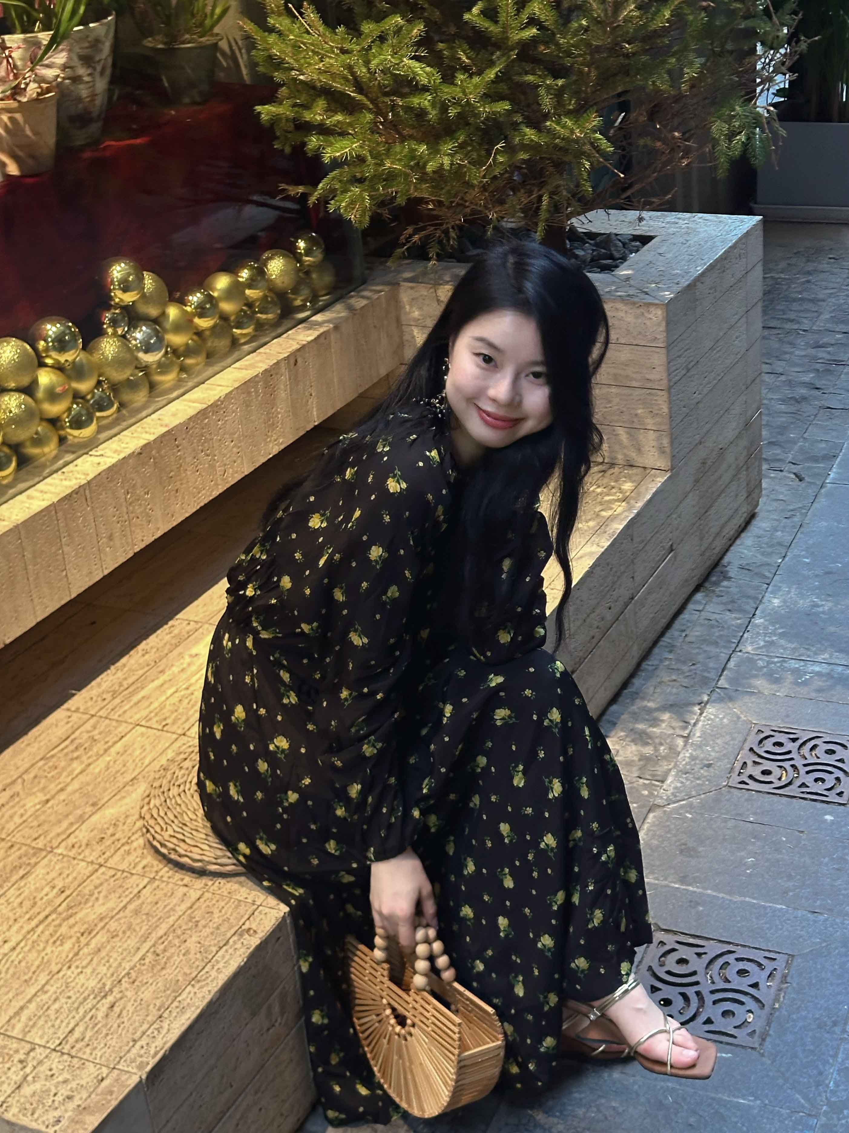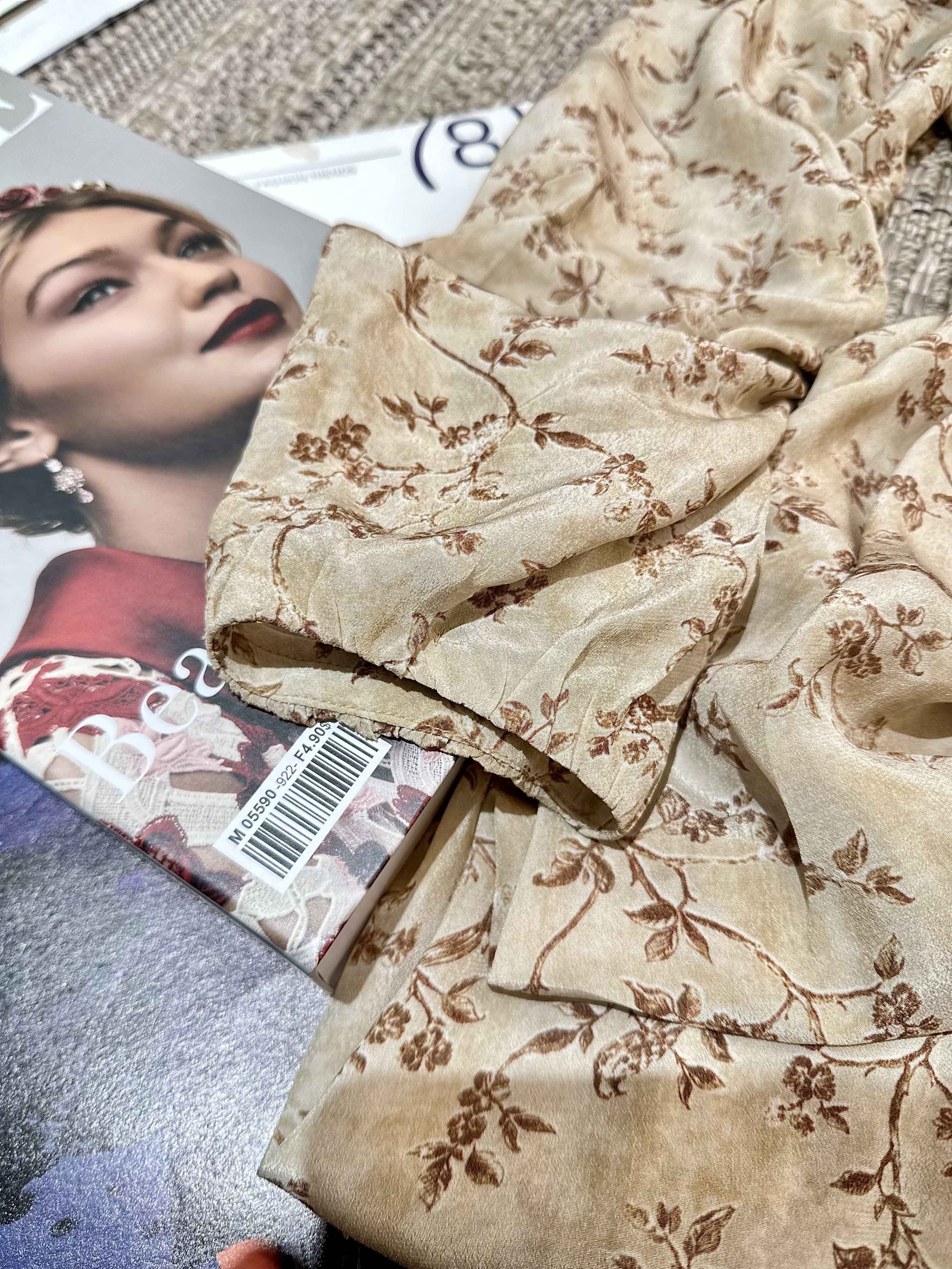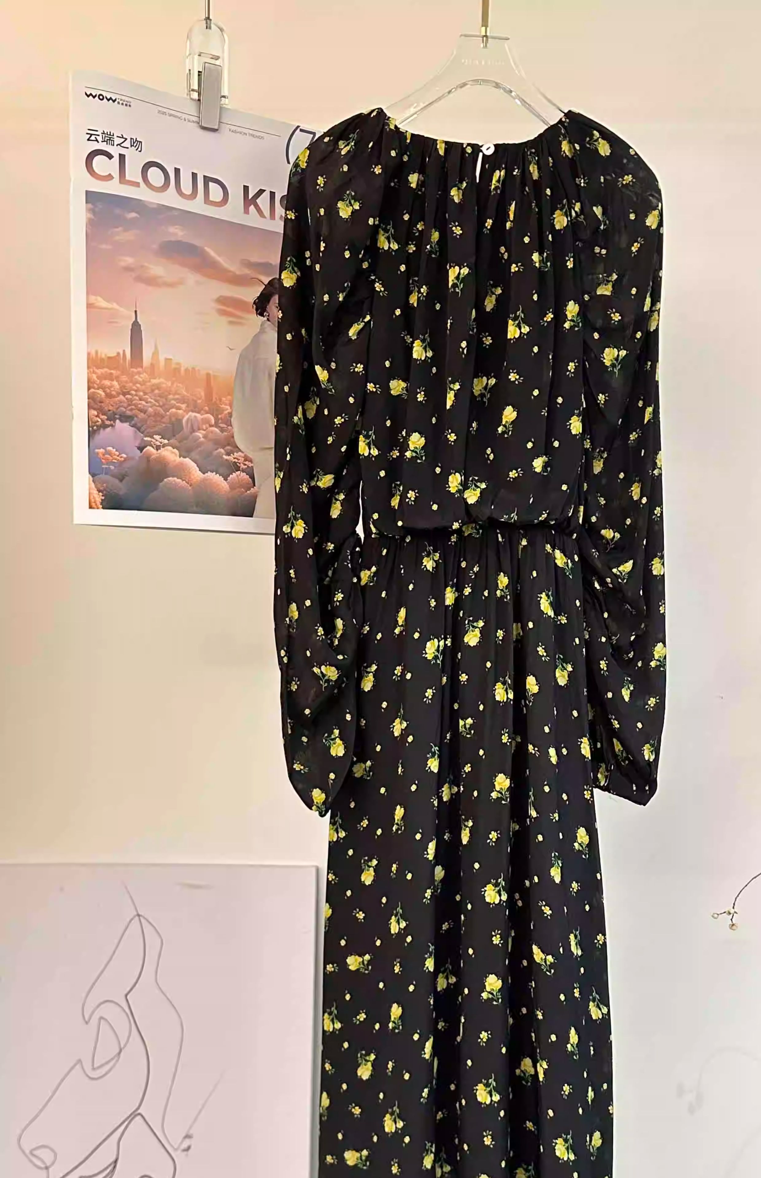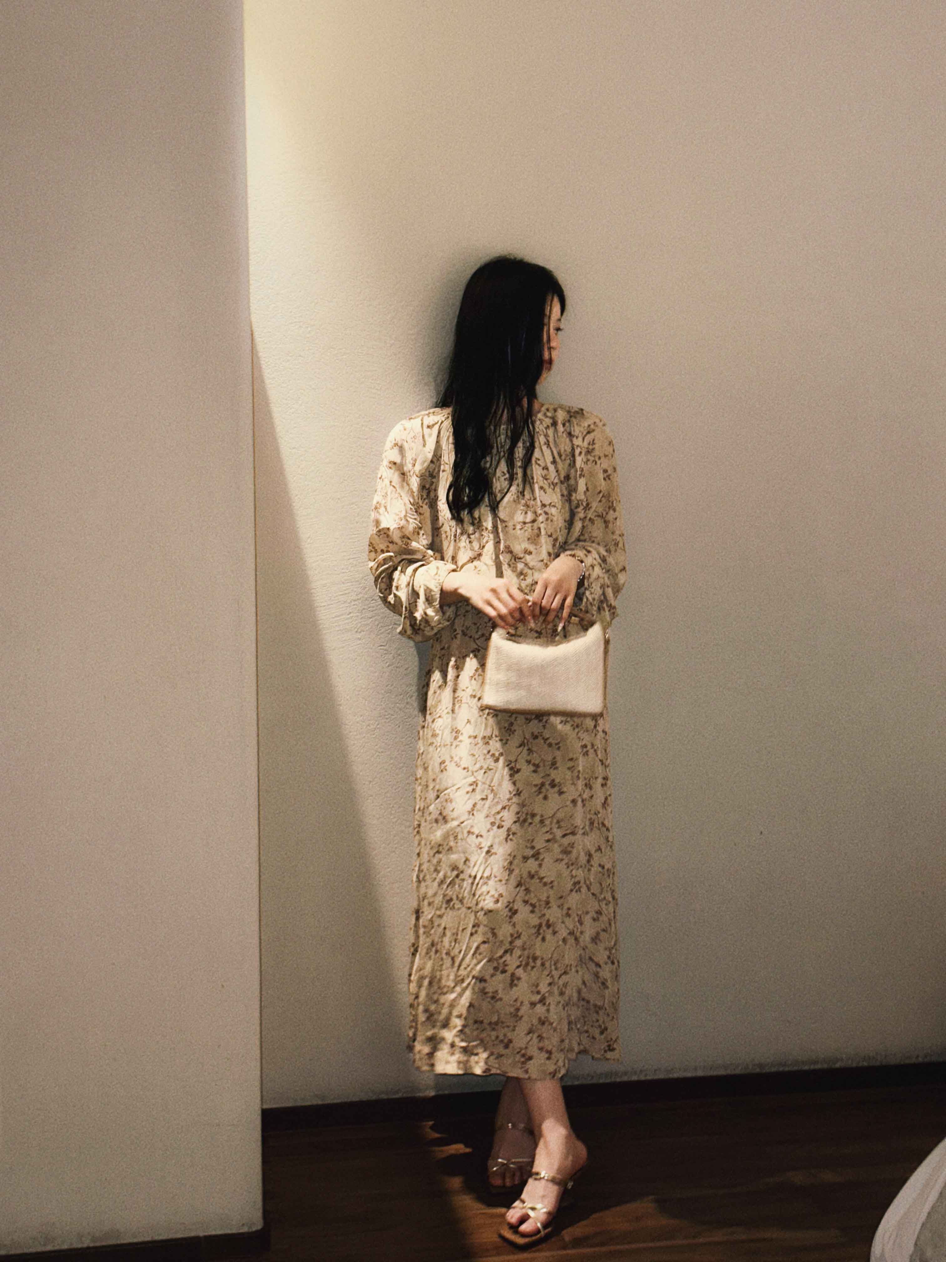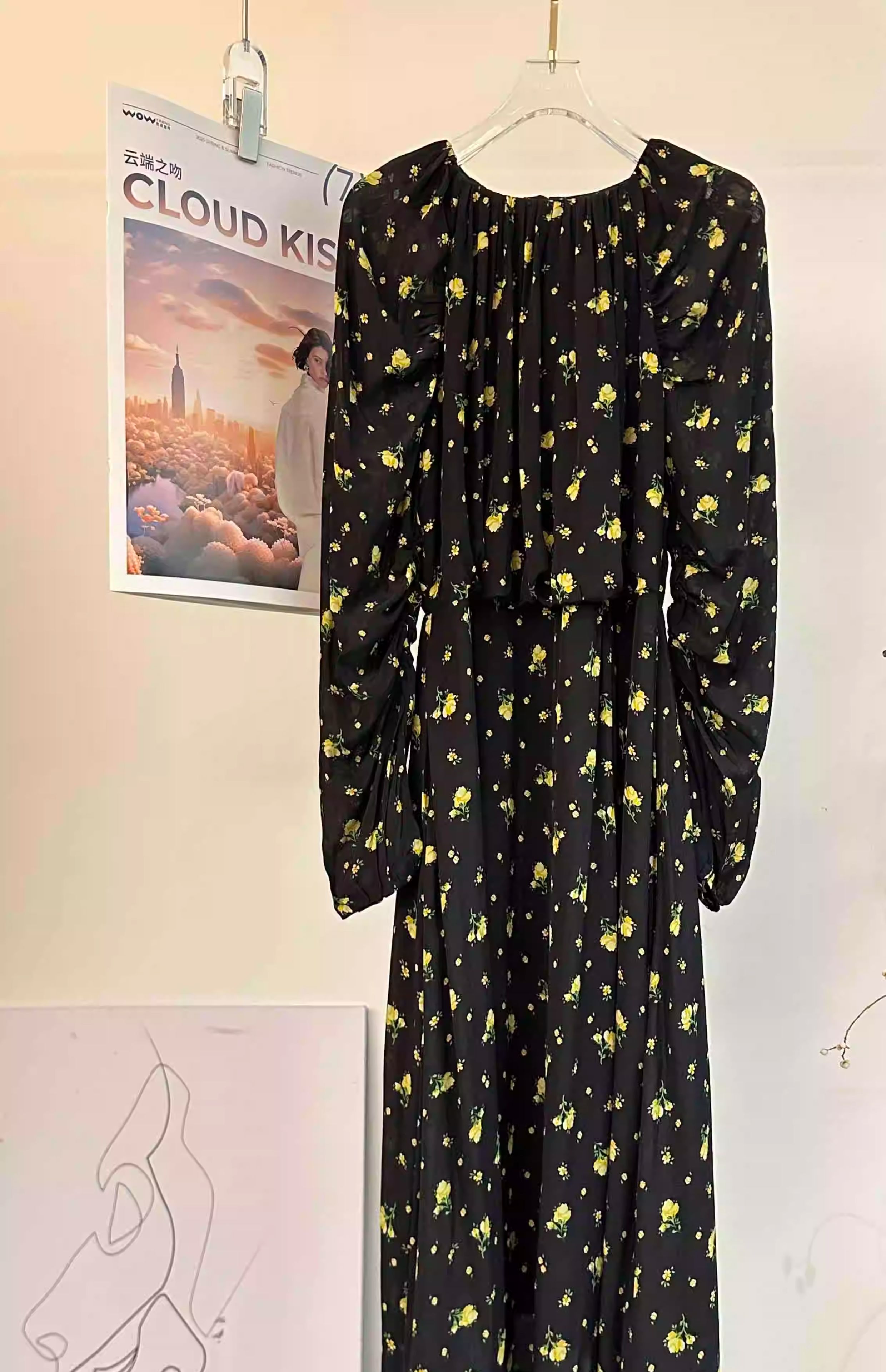 顺丰包邮洛诗琳15754春季新款气质人丝清新印花抽褶连衣裙女50748