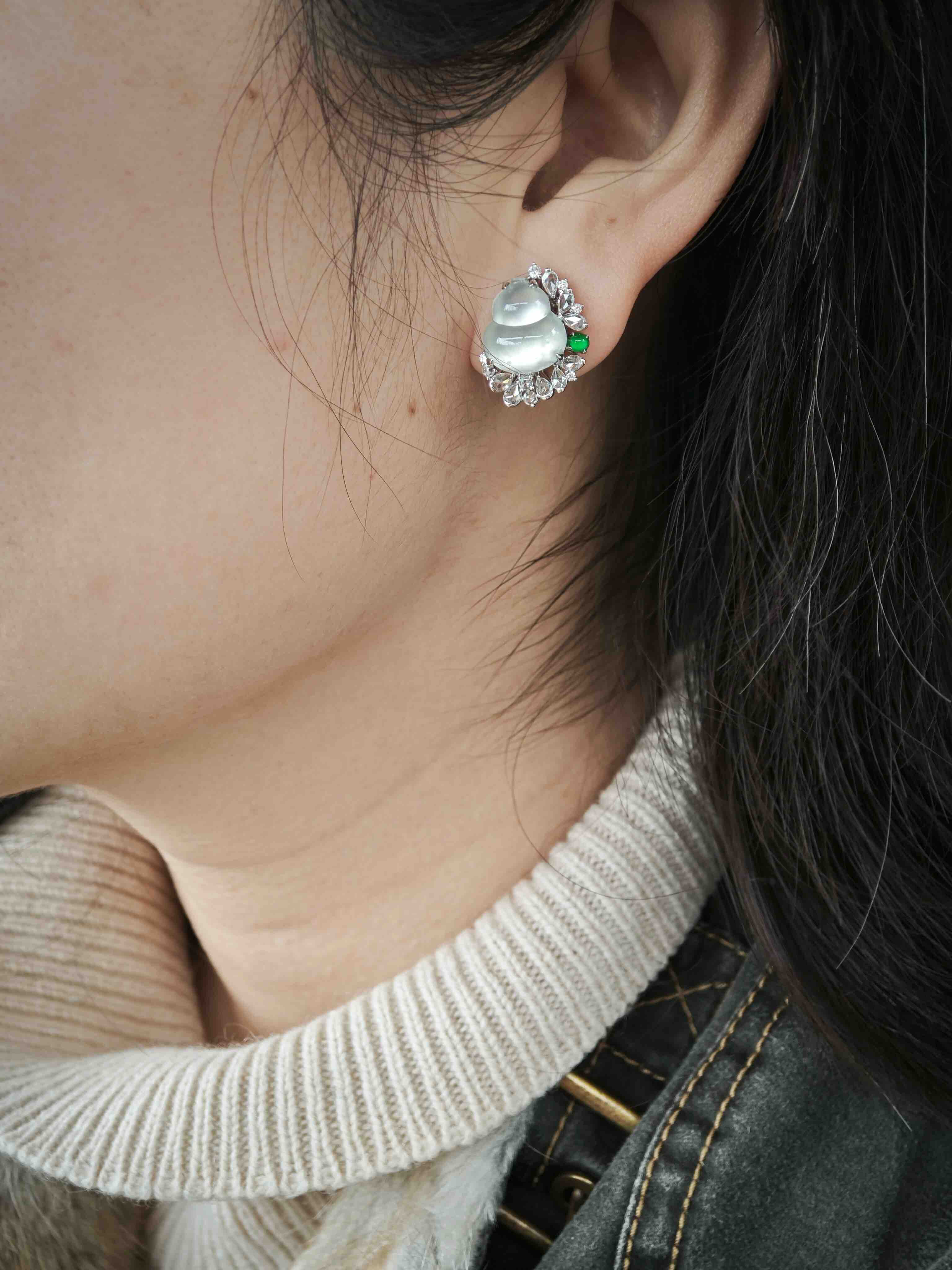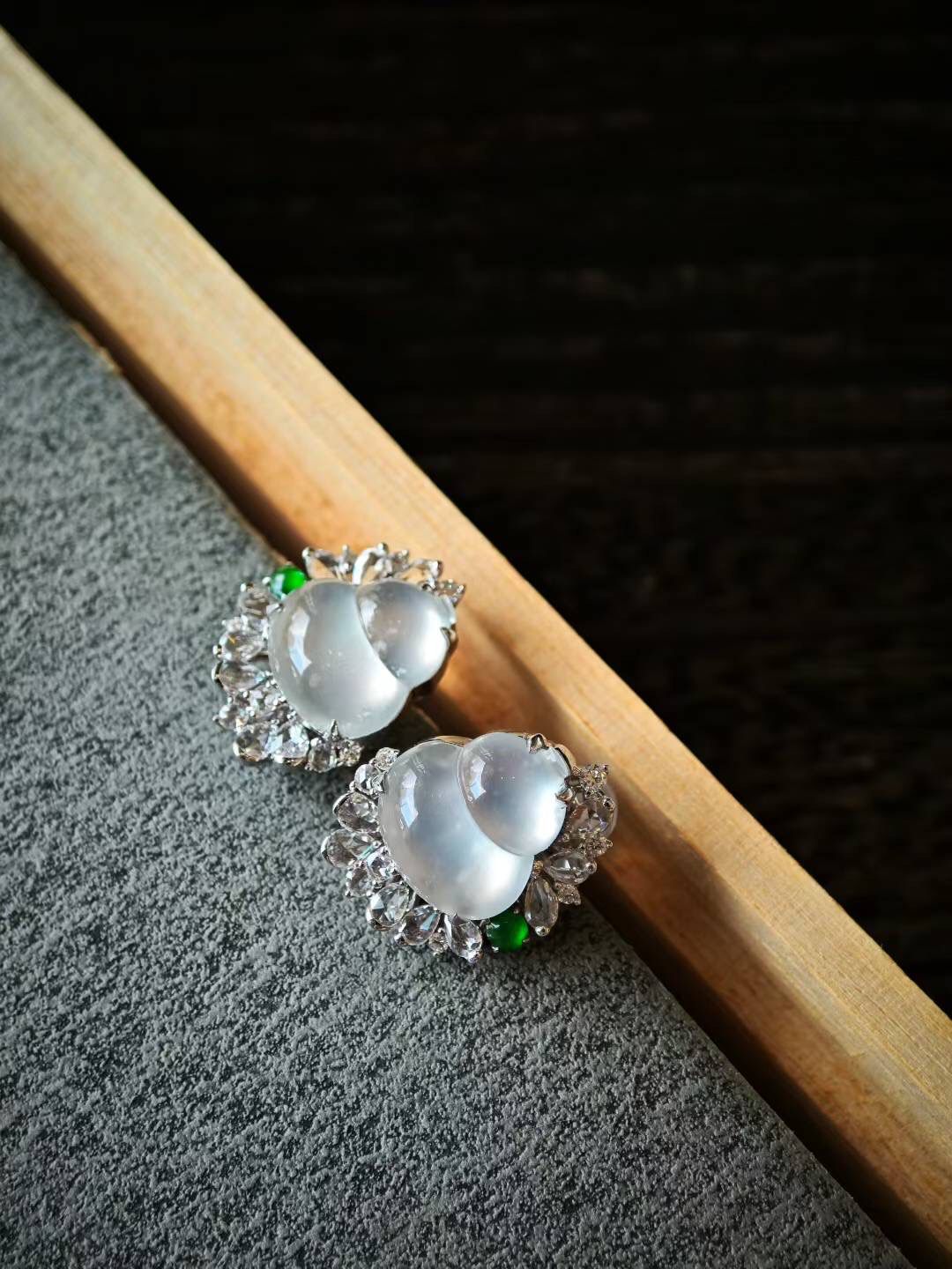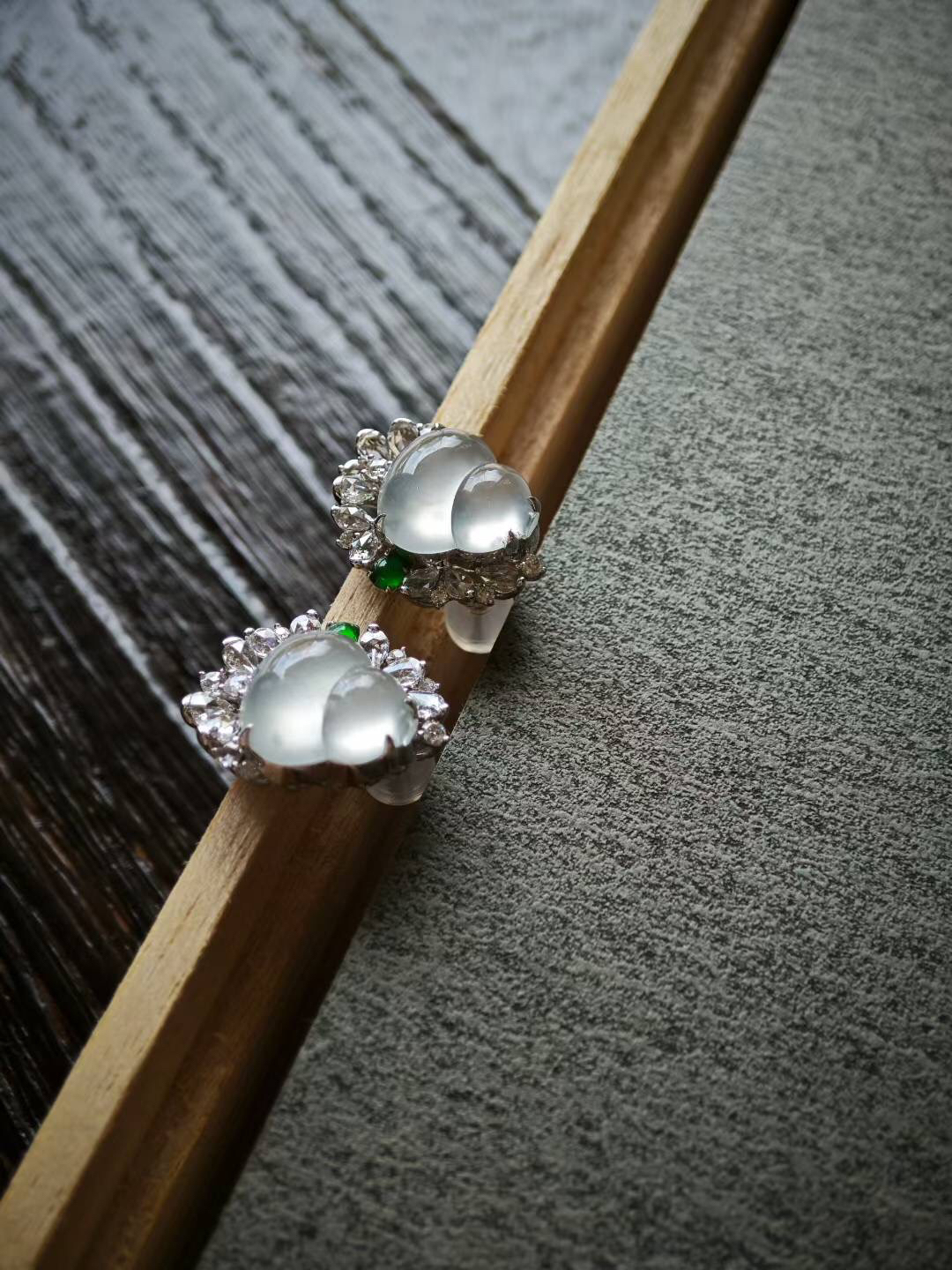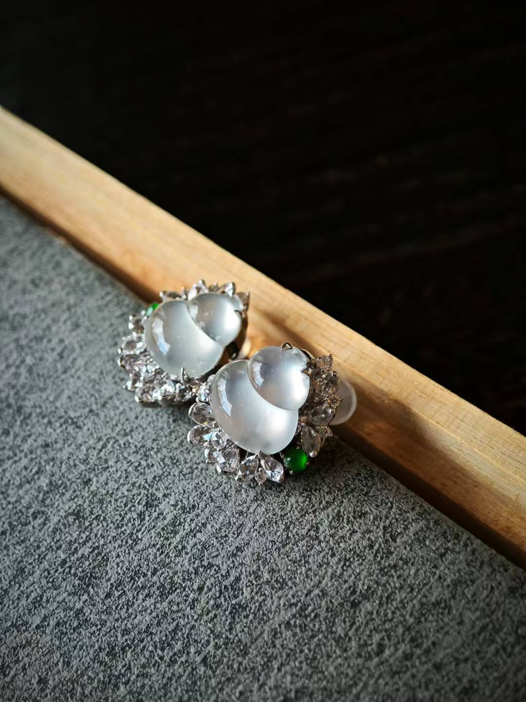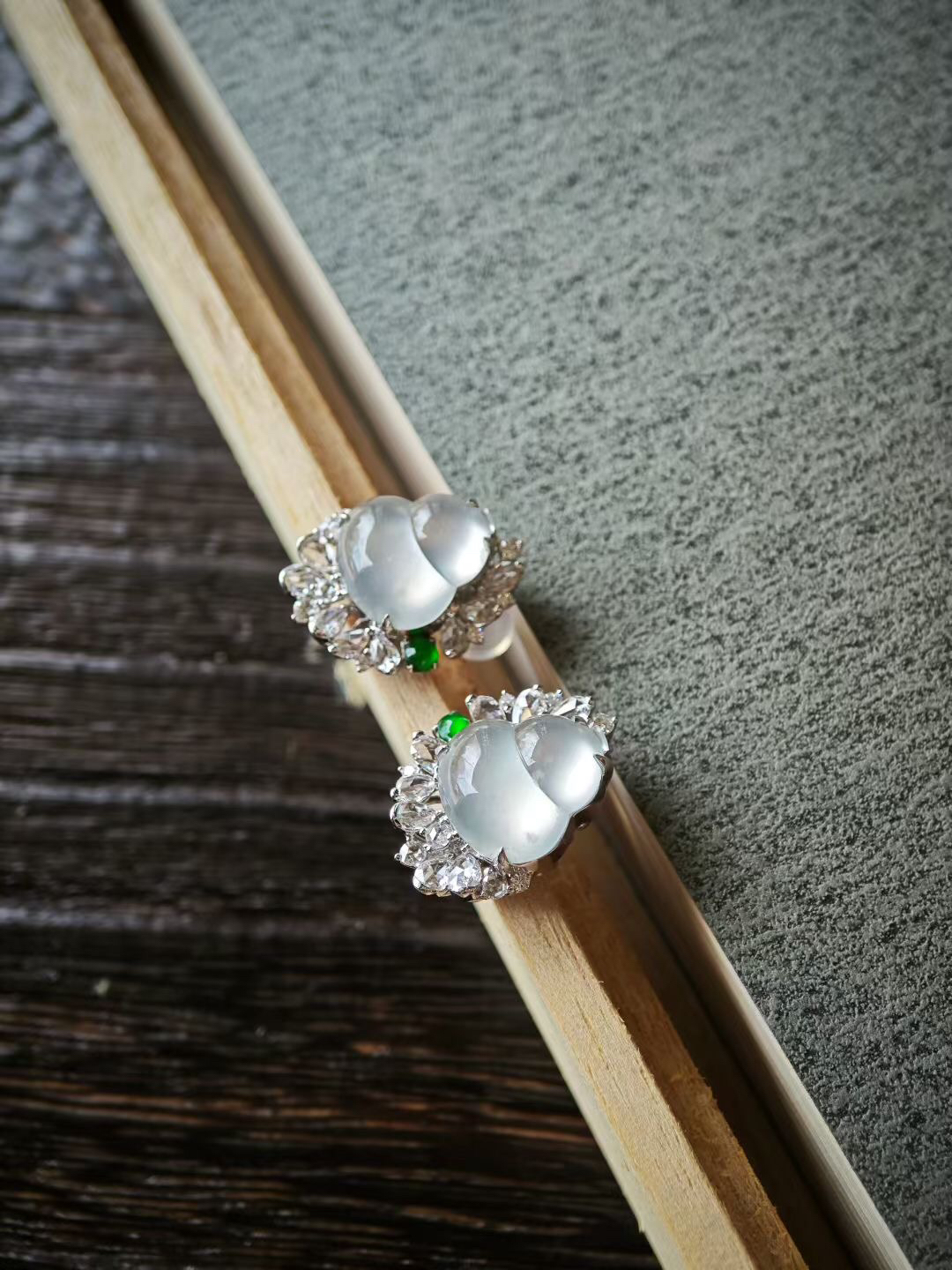 玻璃种胖葫芦耳钉,设计很有特点,也比较大,又很肥,哪哪都很可爱。