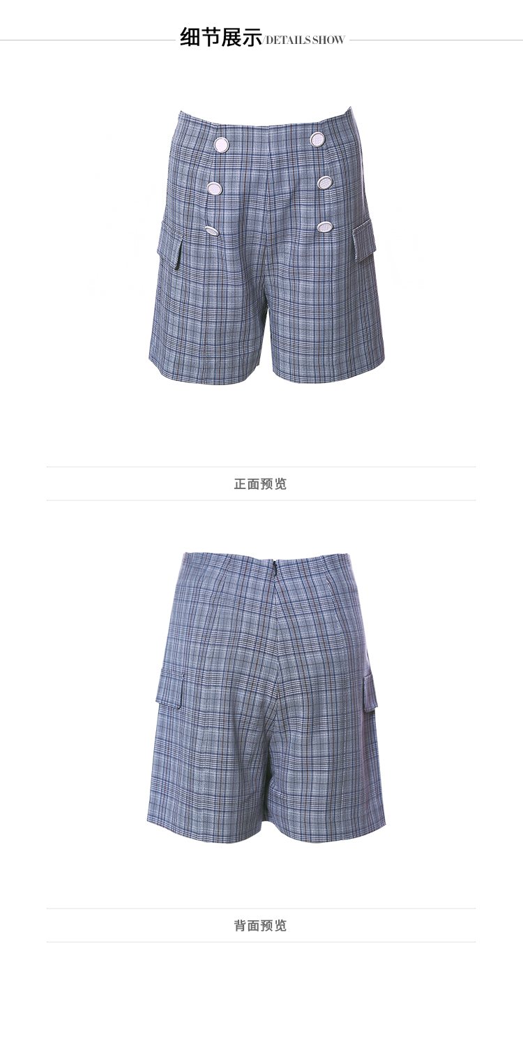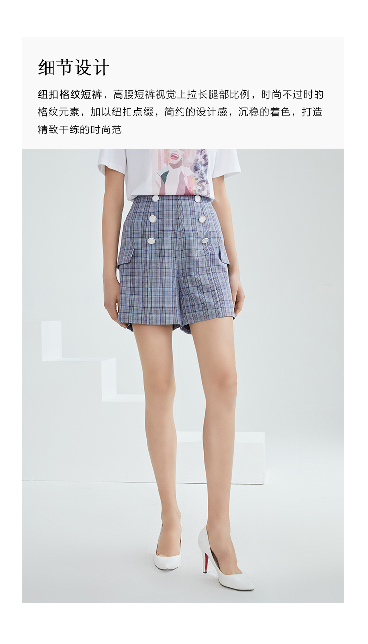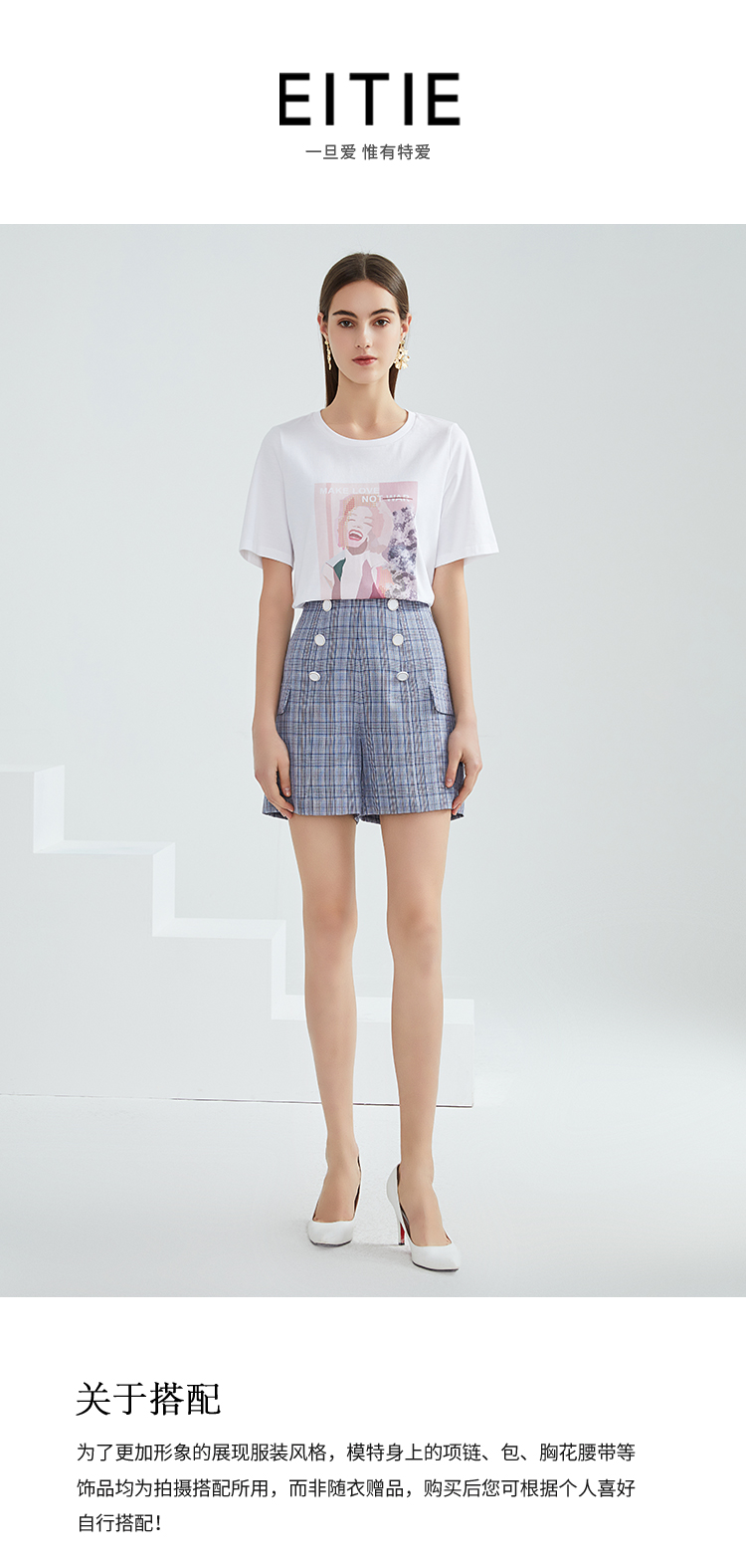 EITIE爱特爱夏季新款洋气复古格纹排扣高腰显瘦百搭短裤女裤