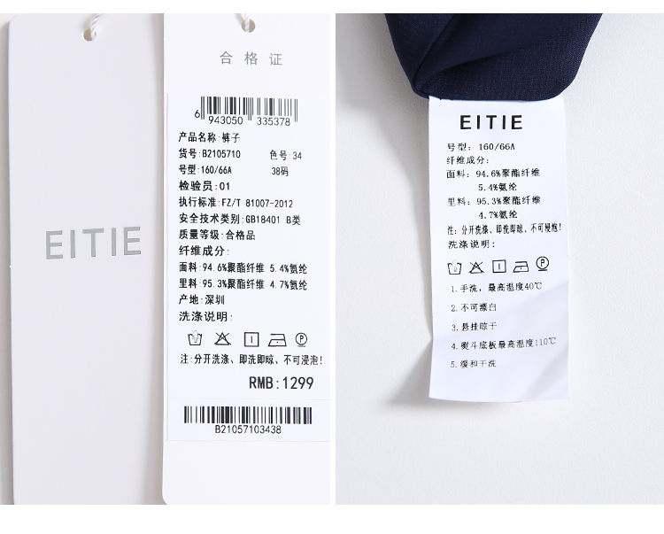 EITIE爱特爱春季新款高腰微喇显瘦OL通勤百搭干练纯色休闲裤A2305113