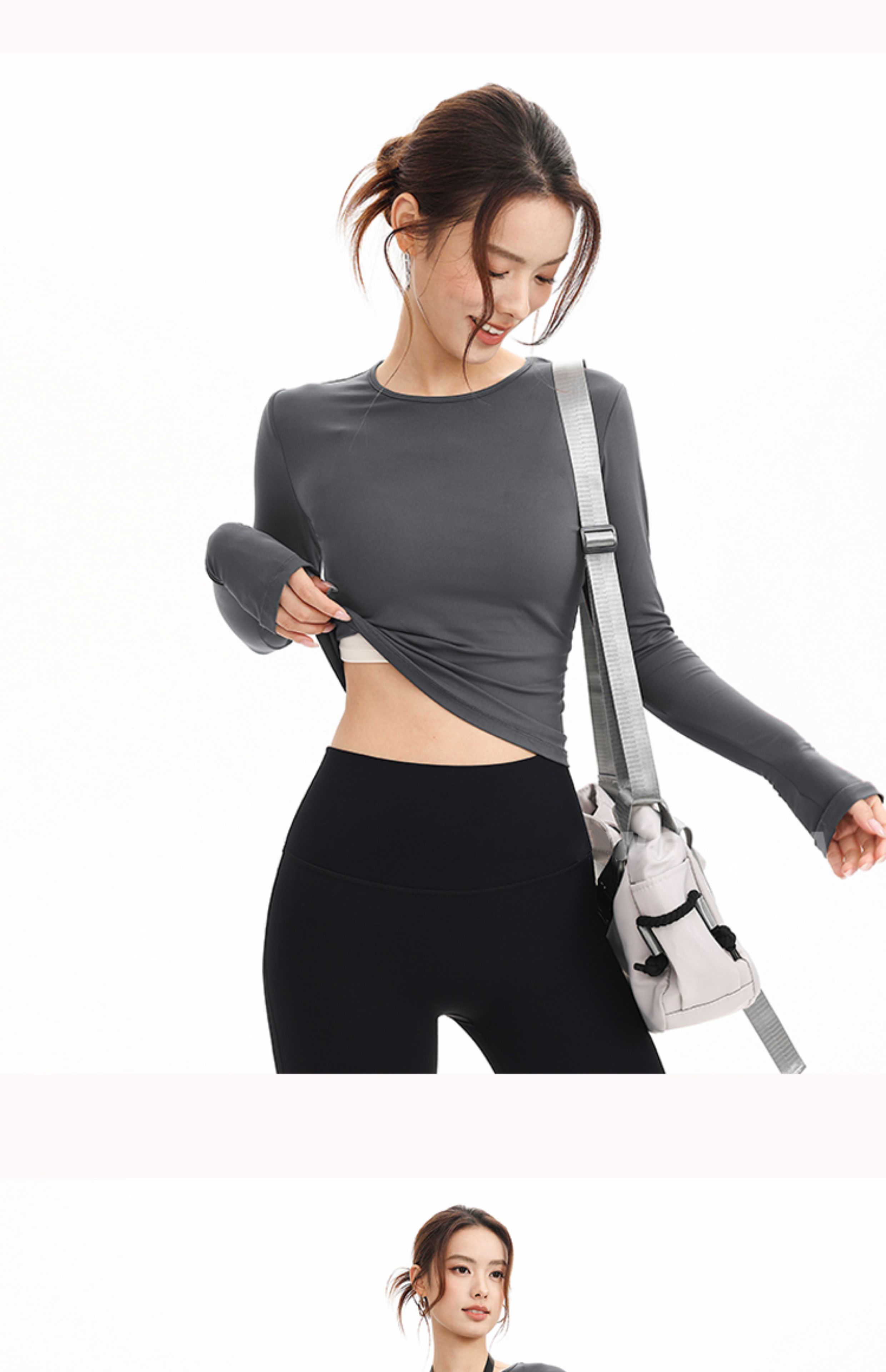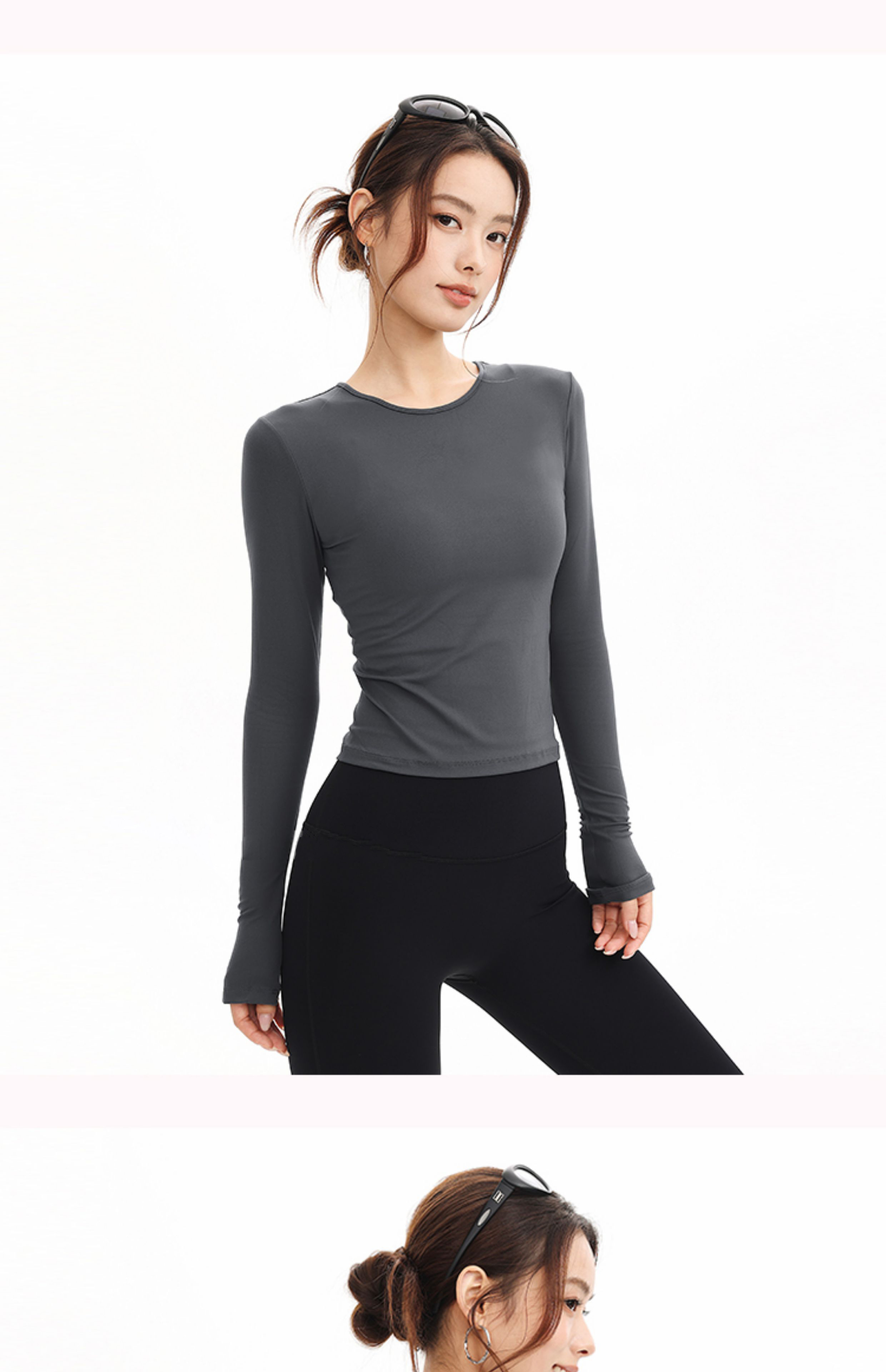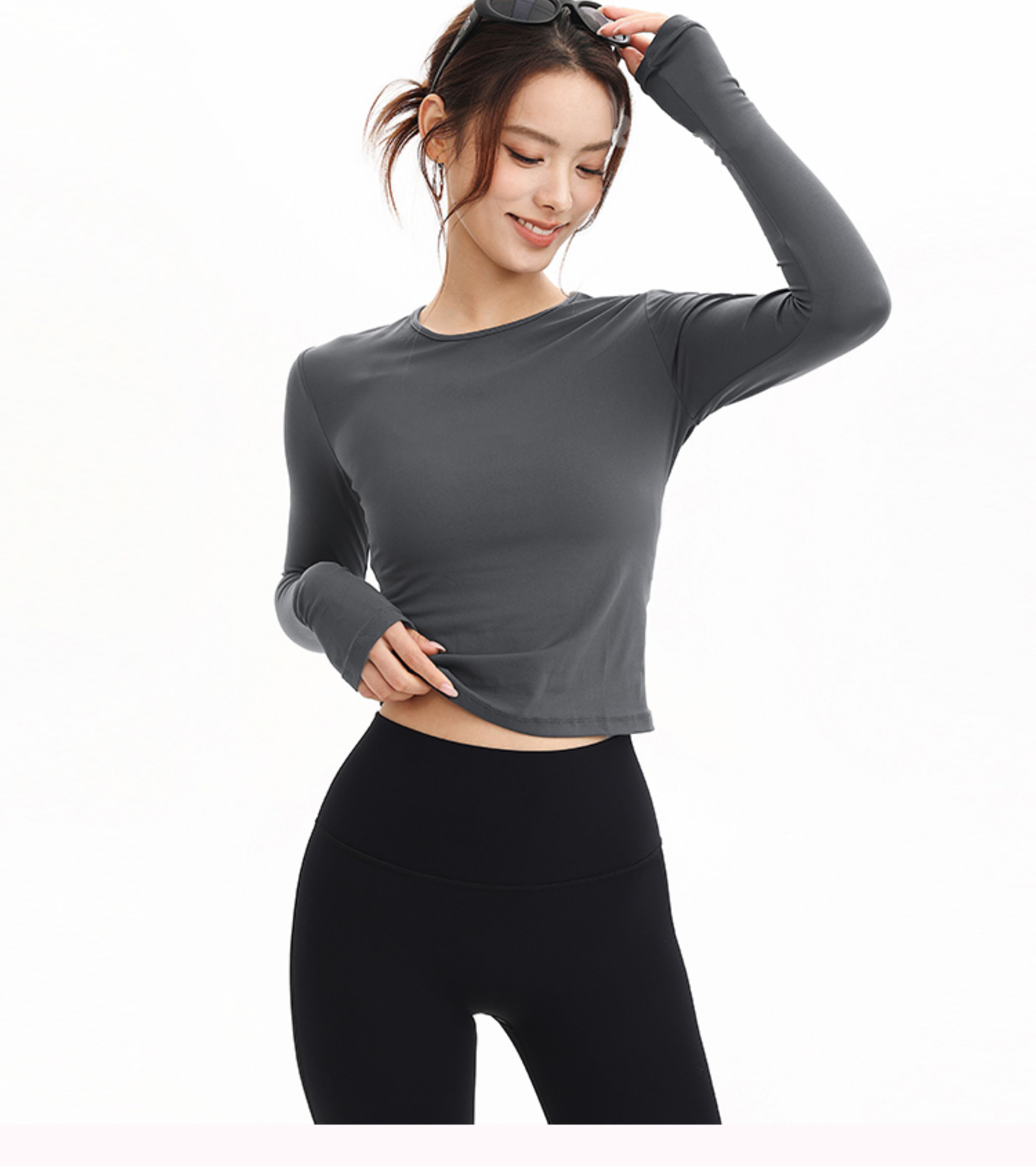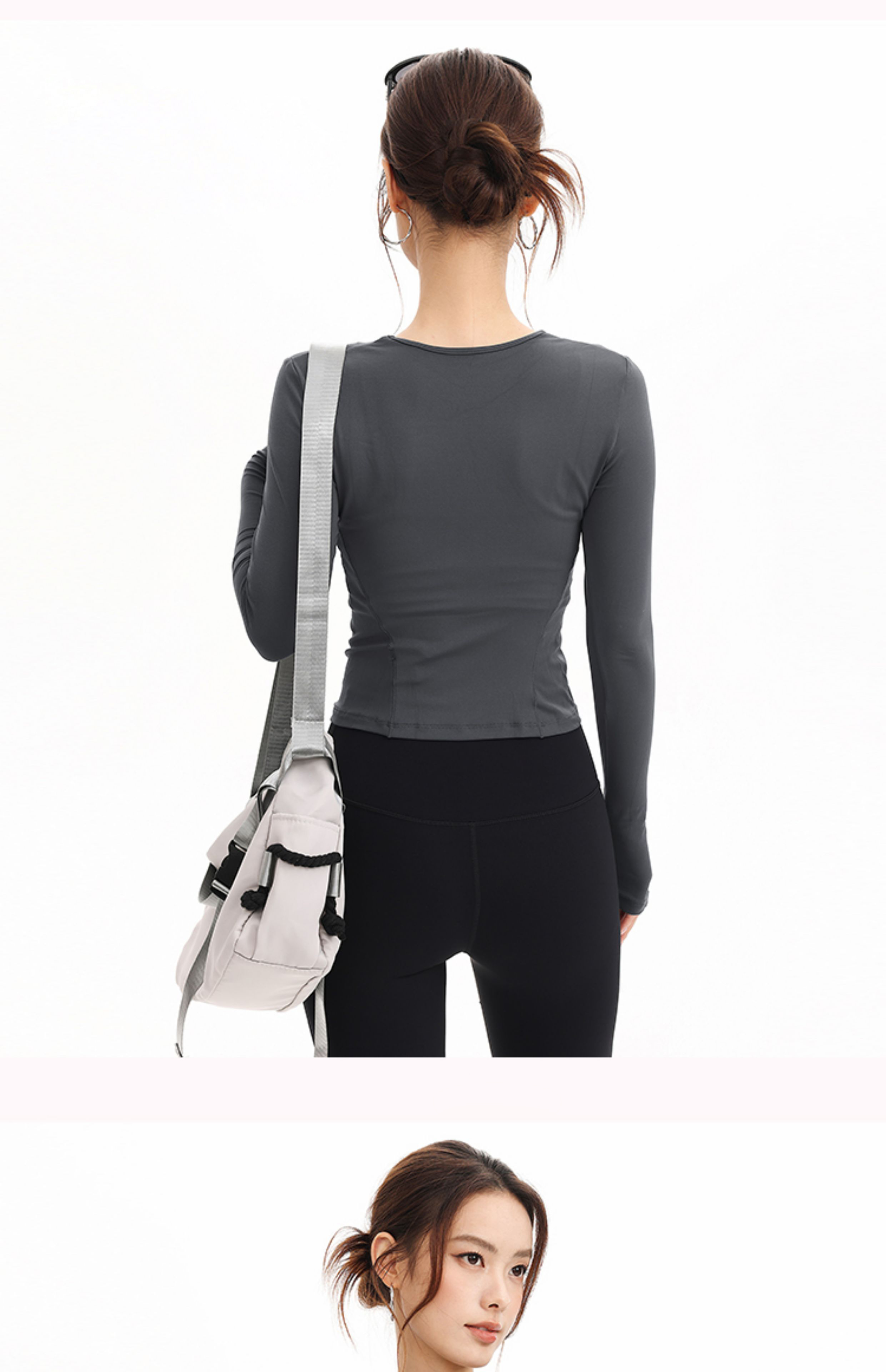 跃牌【禅语梵心】抗菌休闲运动长袖裸感收腰修身透气瑜伽T恤跑步训练健身上衣CX3399