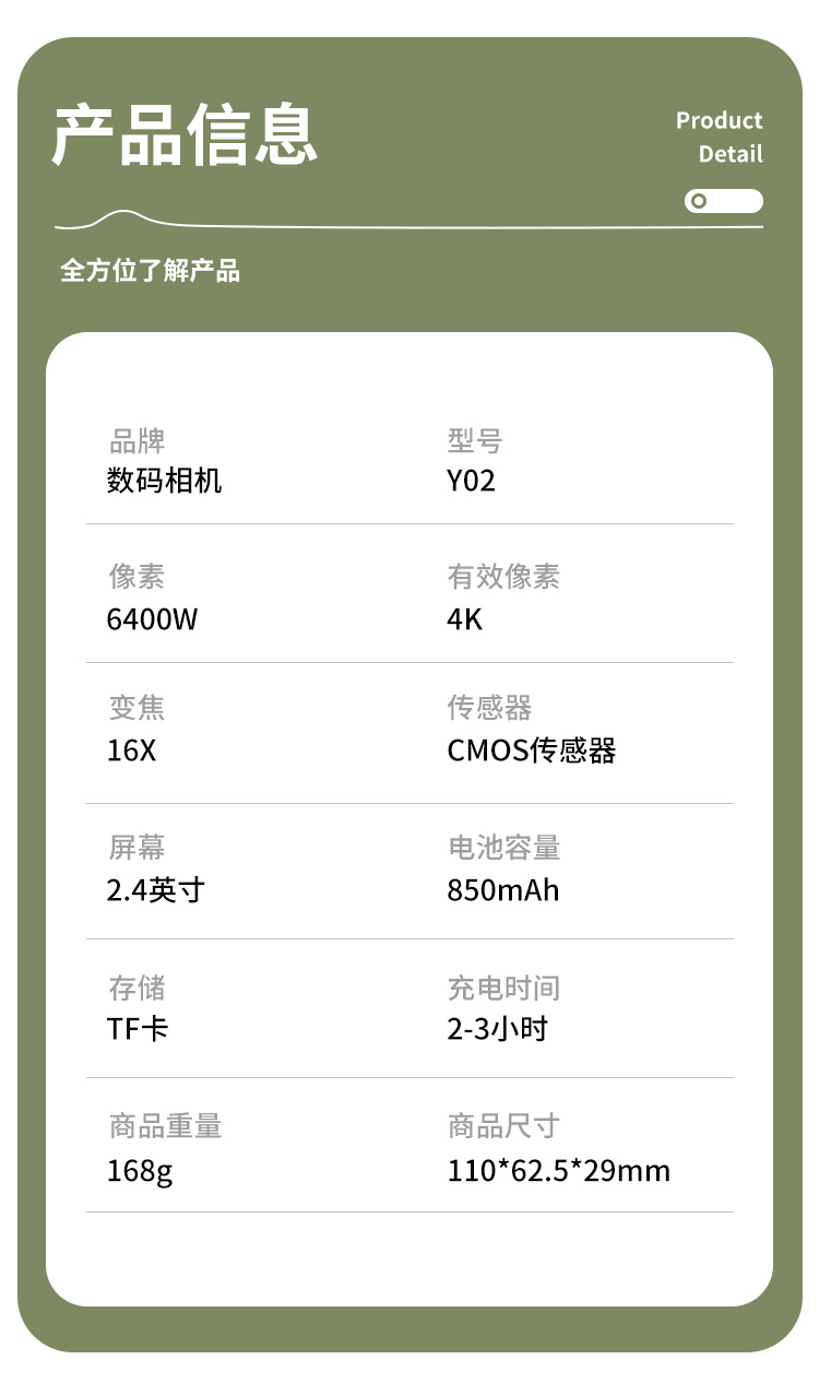 【MONZECI KOIMS Y02翻转屏幕CCD相机】6400W像素+4K画质 内置滤镜黑科技 光影魔术手+CMOS传感器