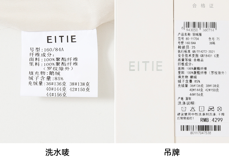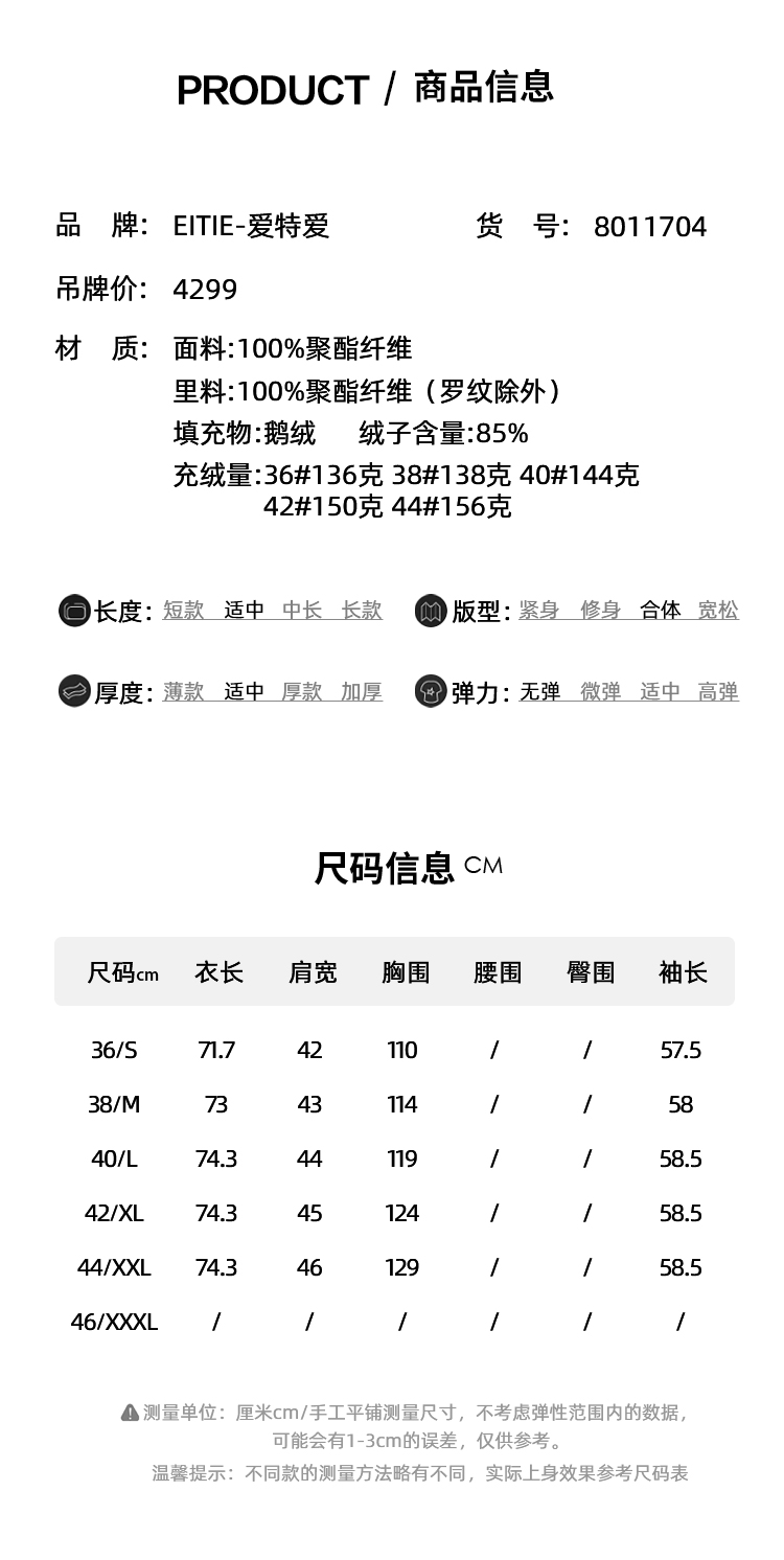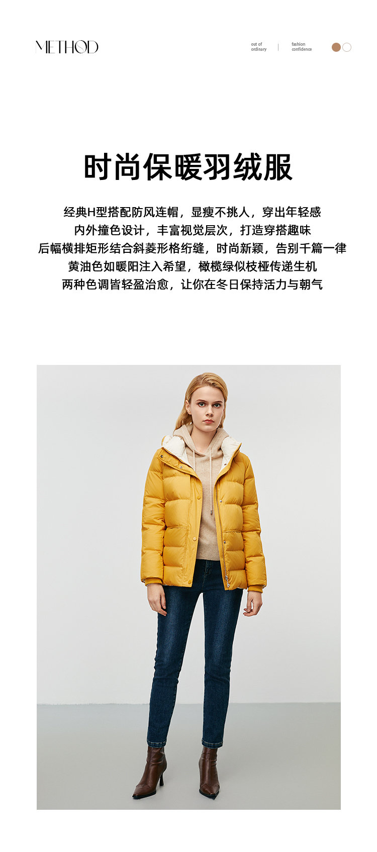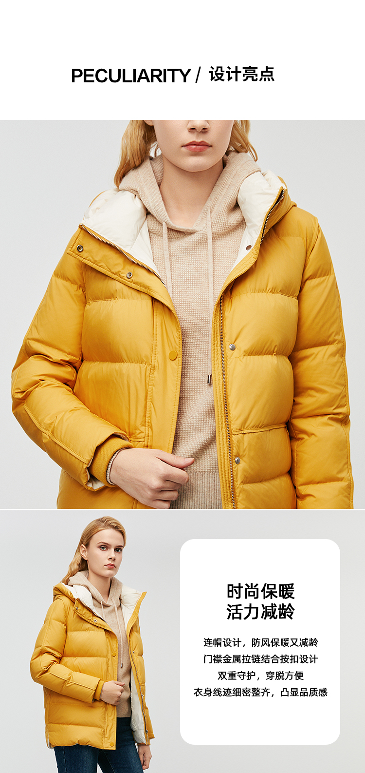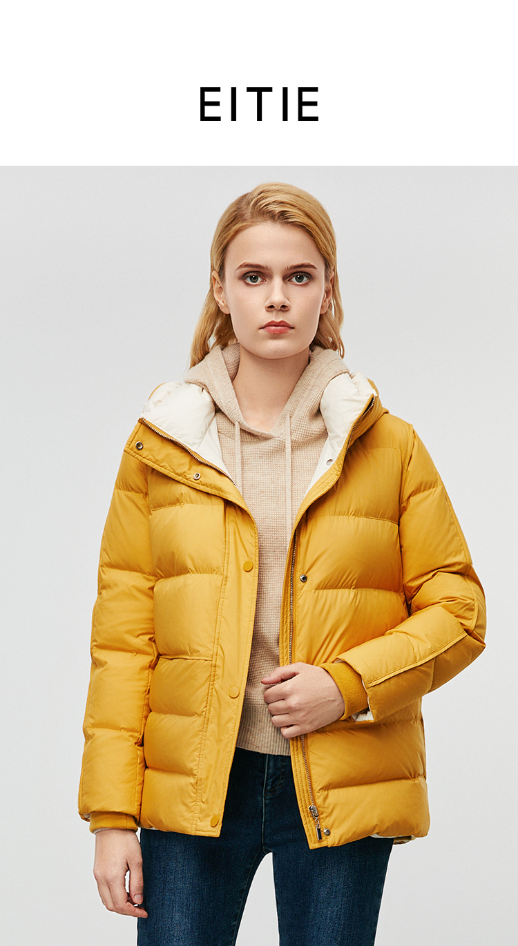 EITIE爱特爱冬季新款通勤简约保暖收腰显瘦连帽羽绒服8011704