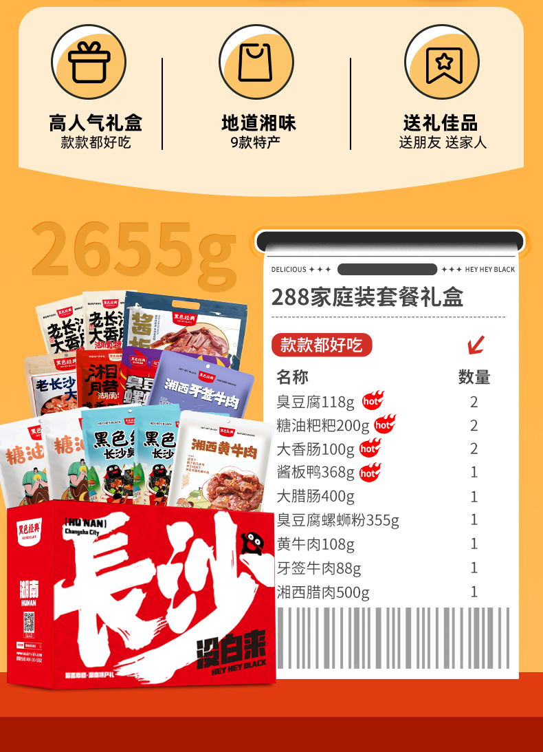 【周二套餐折上折】黑色经典家庭装套餐特产零食狂欢礼包 共9款12份特产 配精美礼盒