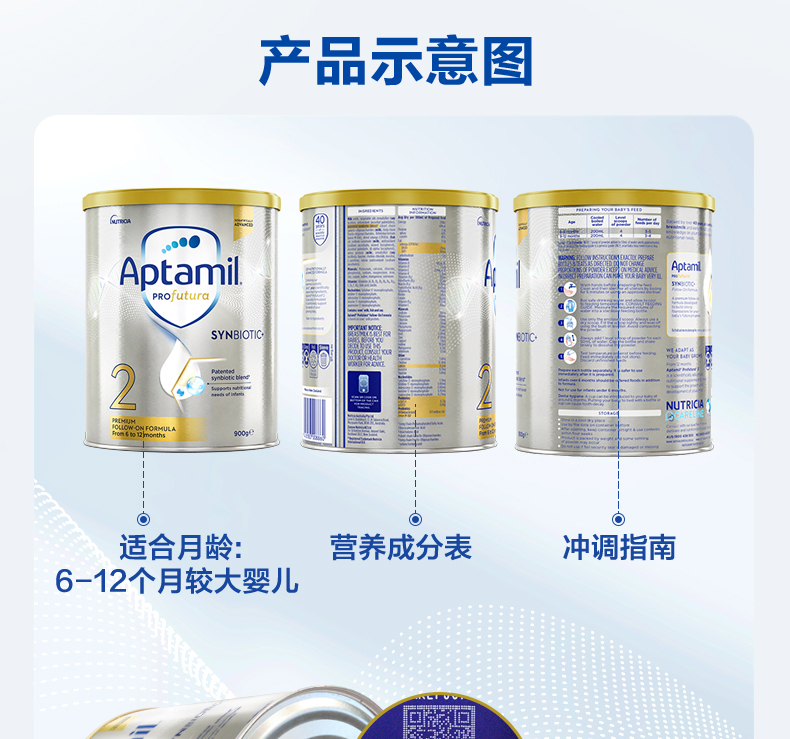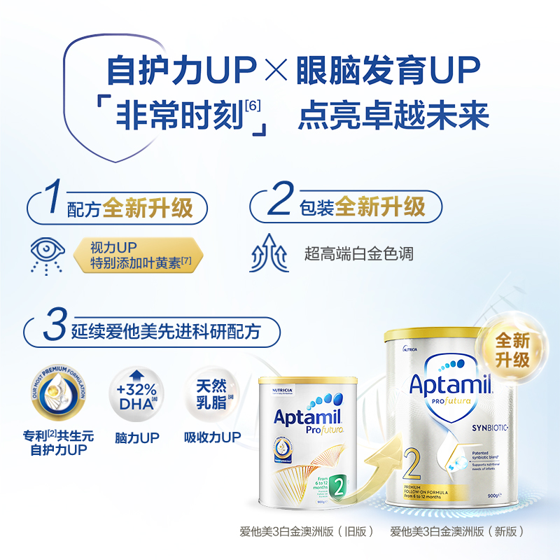 澳洲爱他美白金版婴幼儿奶粉2段 900g 跨境购