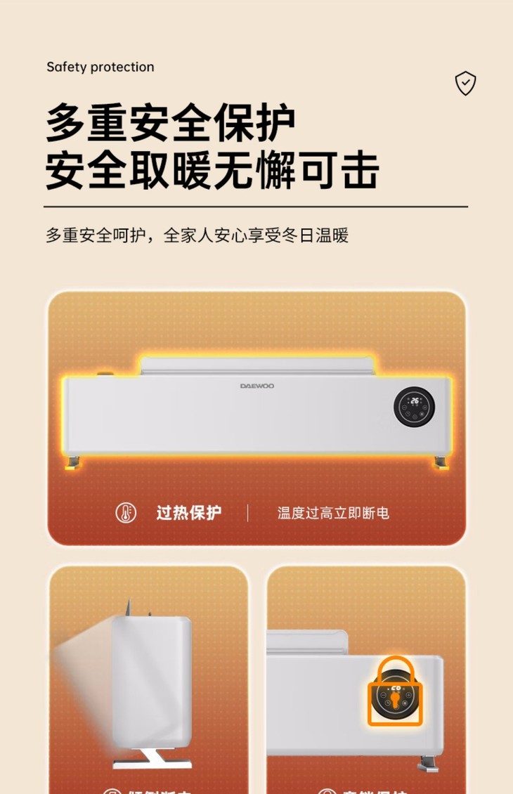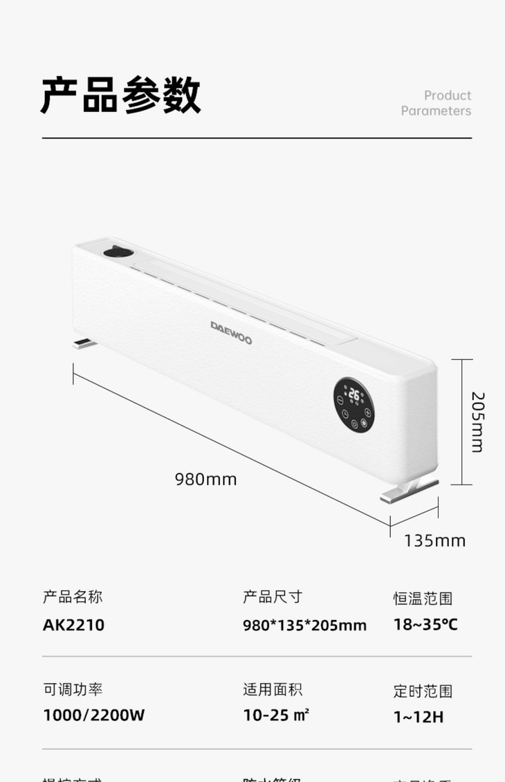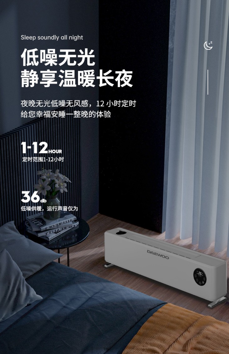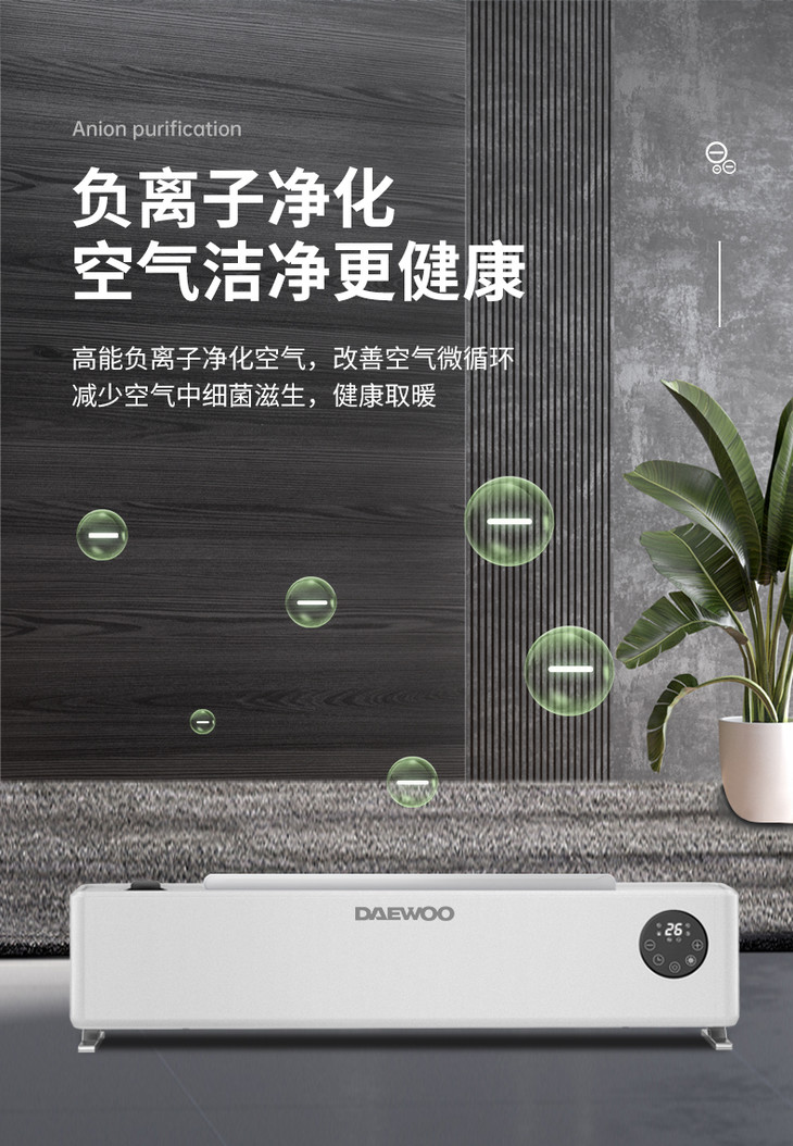 韩国大宇家用节能客厅可移动石墨烯取暖器全屋速热踢脚线电暖风机