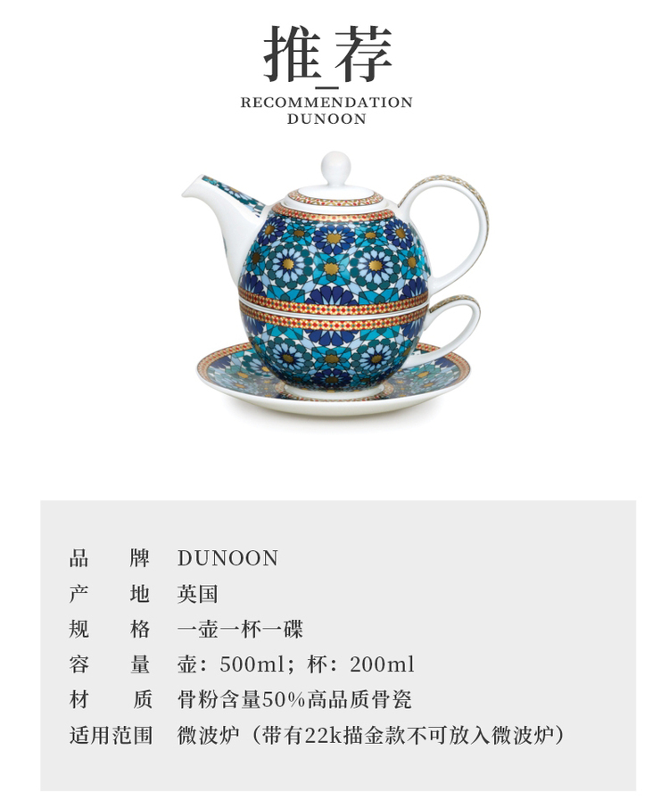 英国丹侬Dunoon骨瓷茶壶套装(一壶一杯一碟)伊什塔尔