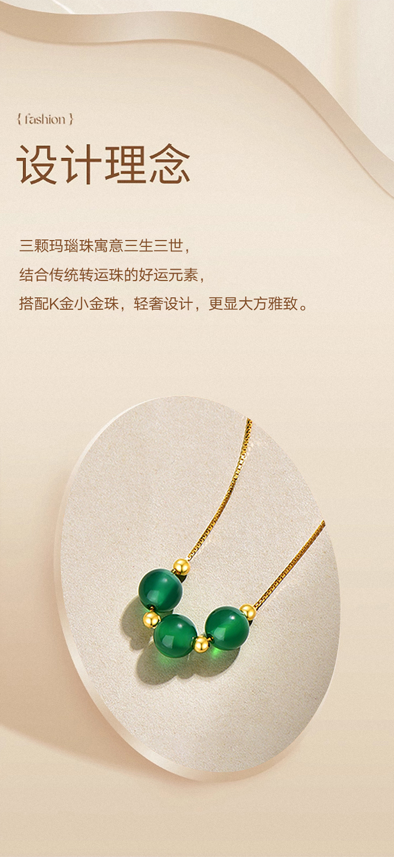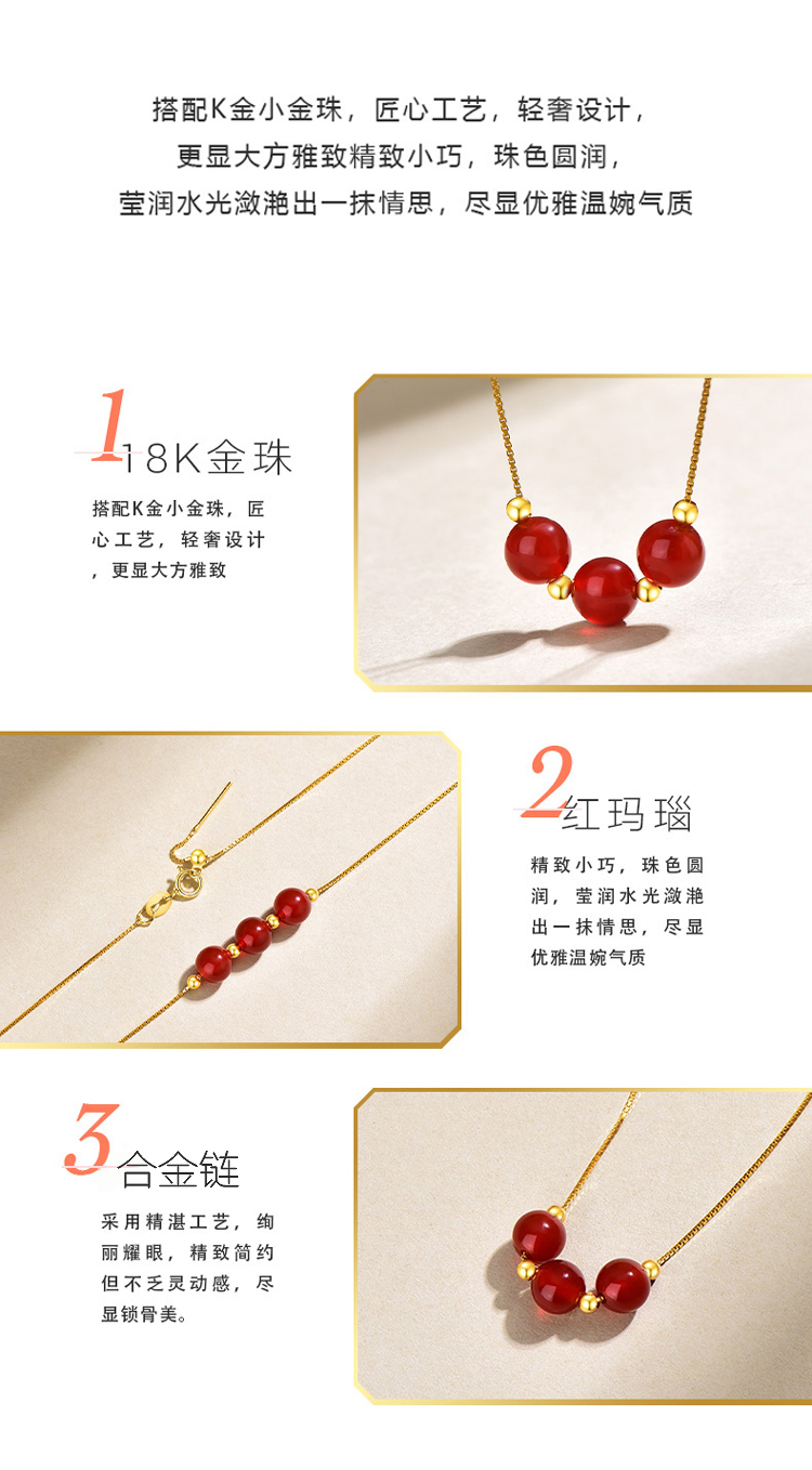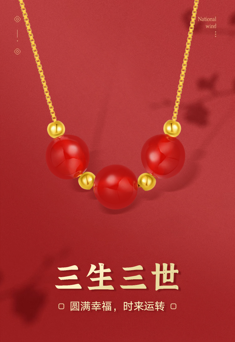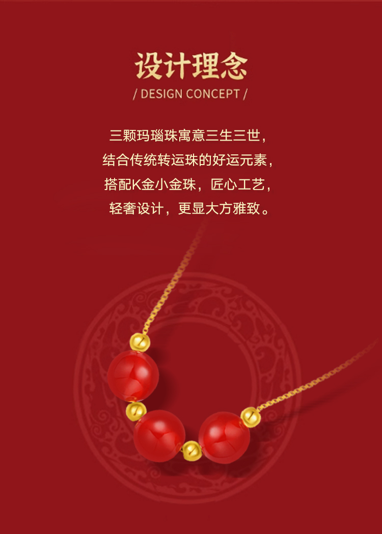 【三生三世 圆满幸福 时来运转】金六福吉祥 18K金珠 红绿玛瑙吊坠系列