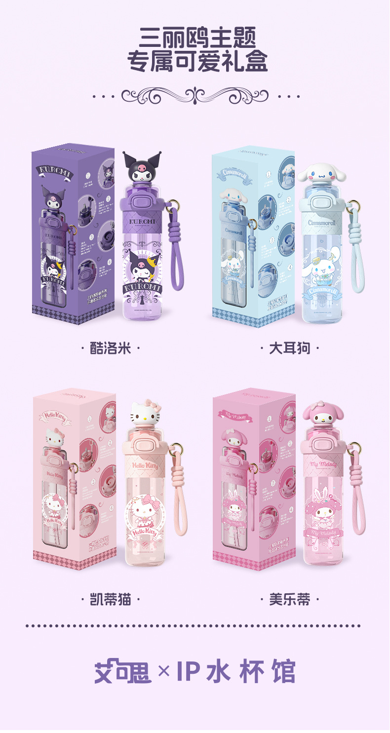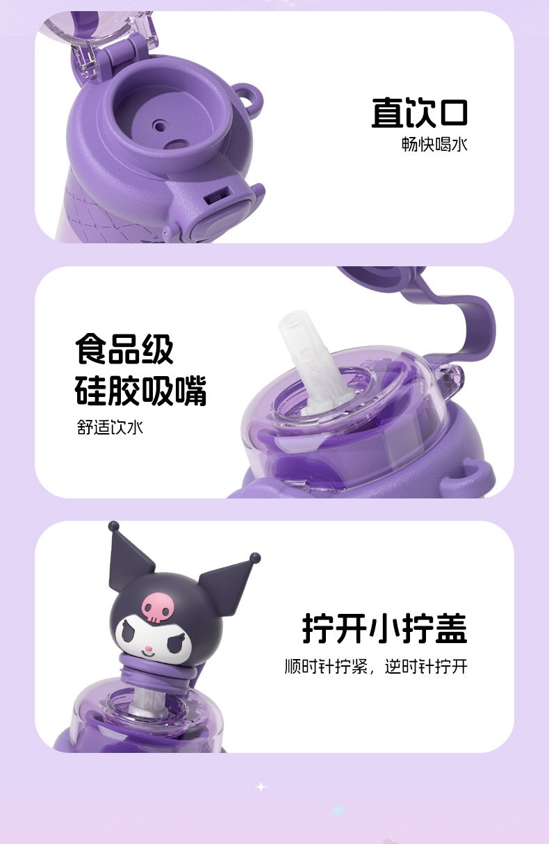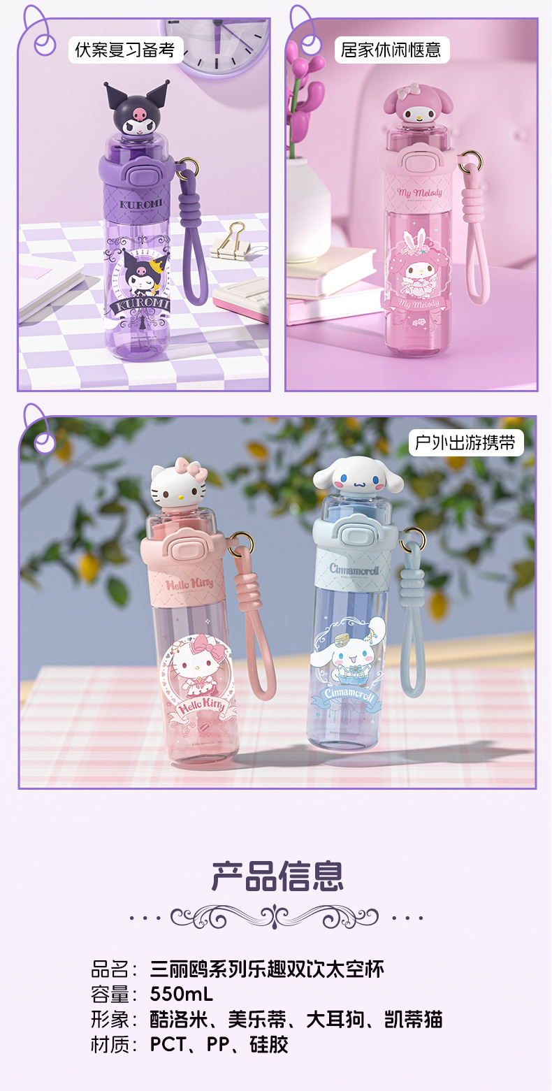 夏日出游季!【可爱吸管杯子,高颜值塑料杯!】三丽鸥儿童水杯 大容量双饮杯 便捷女可爱吸管杯子 学生高颜值塑料杯-QQ