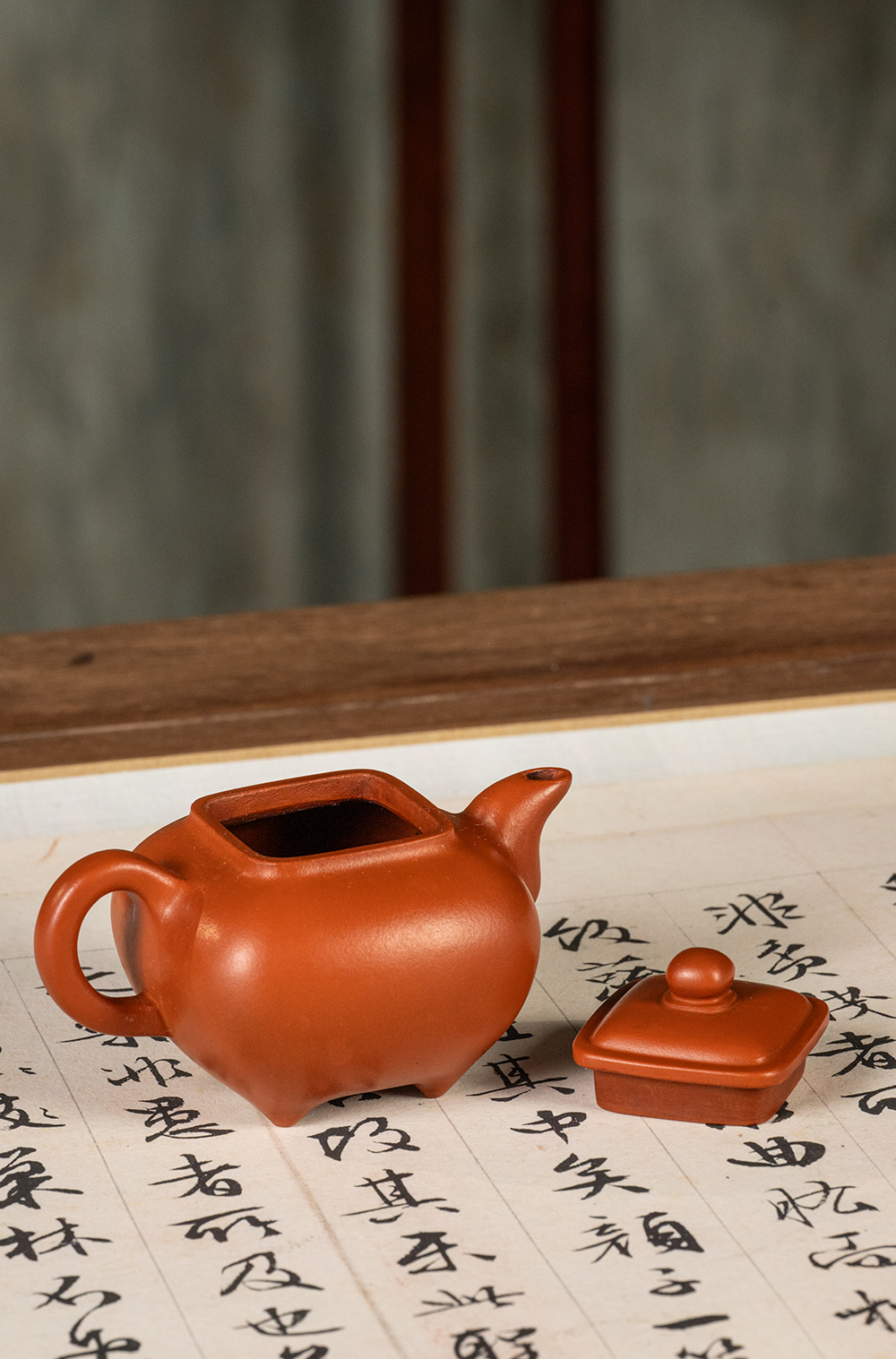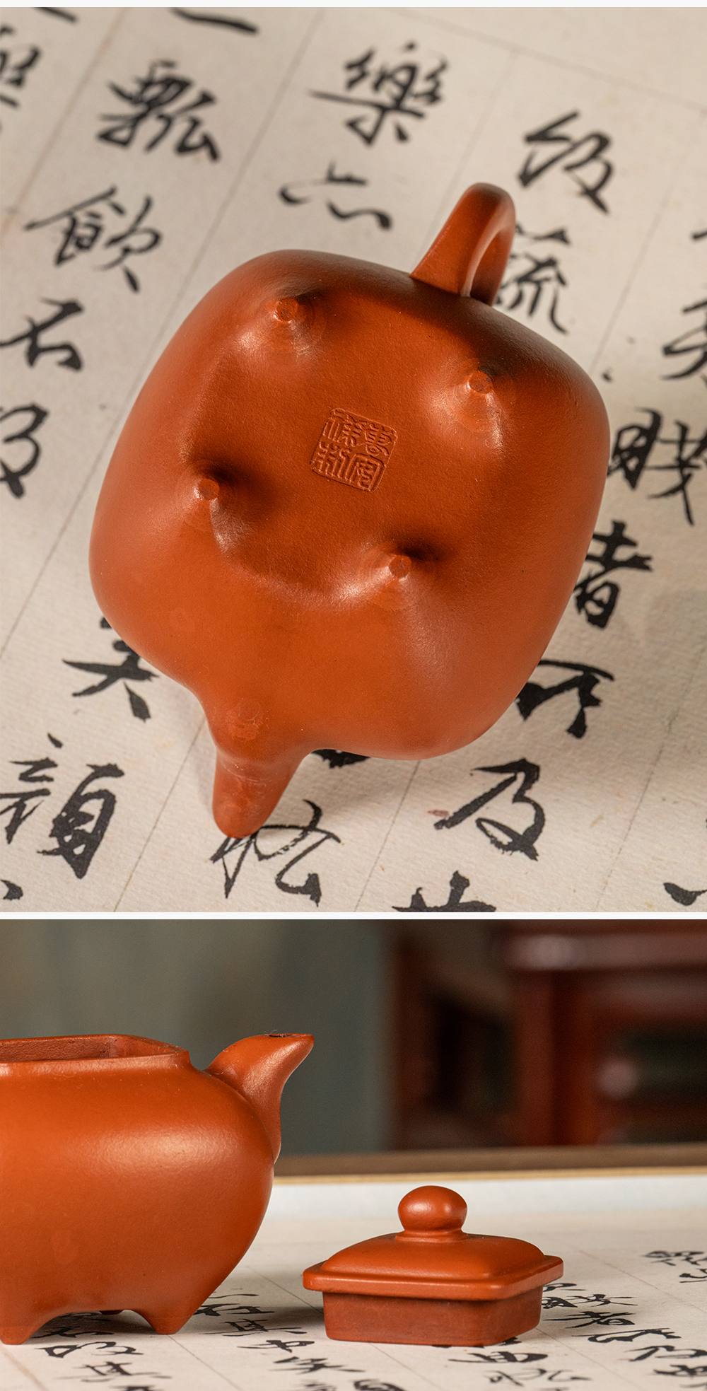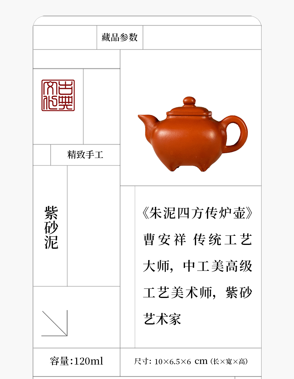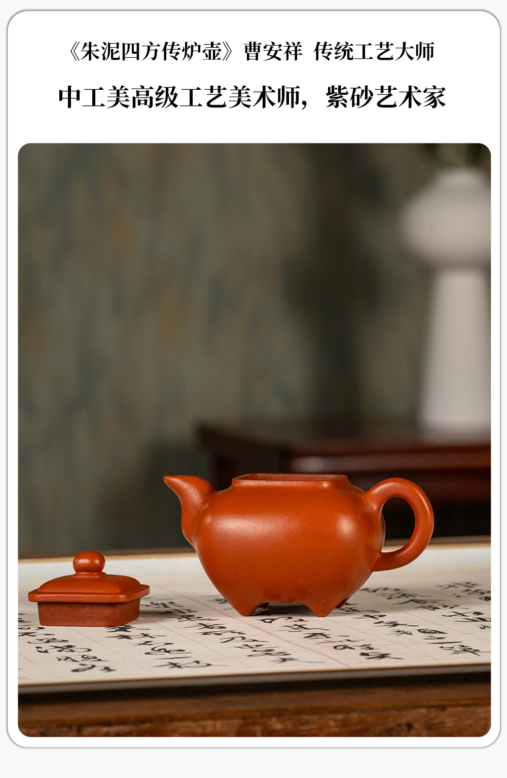 《朱泥四方传炉壶》曹安祥 传统工艺大师,中工美高级工艺美术师,紫砂艺术家