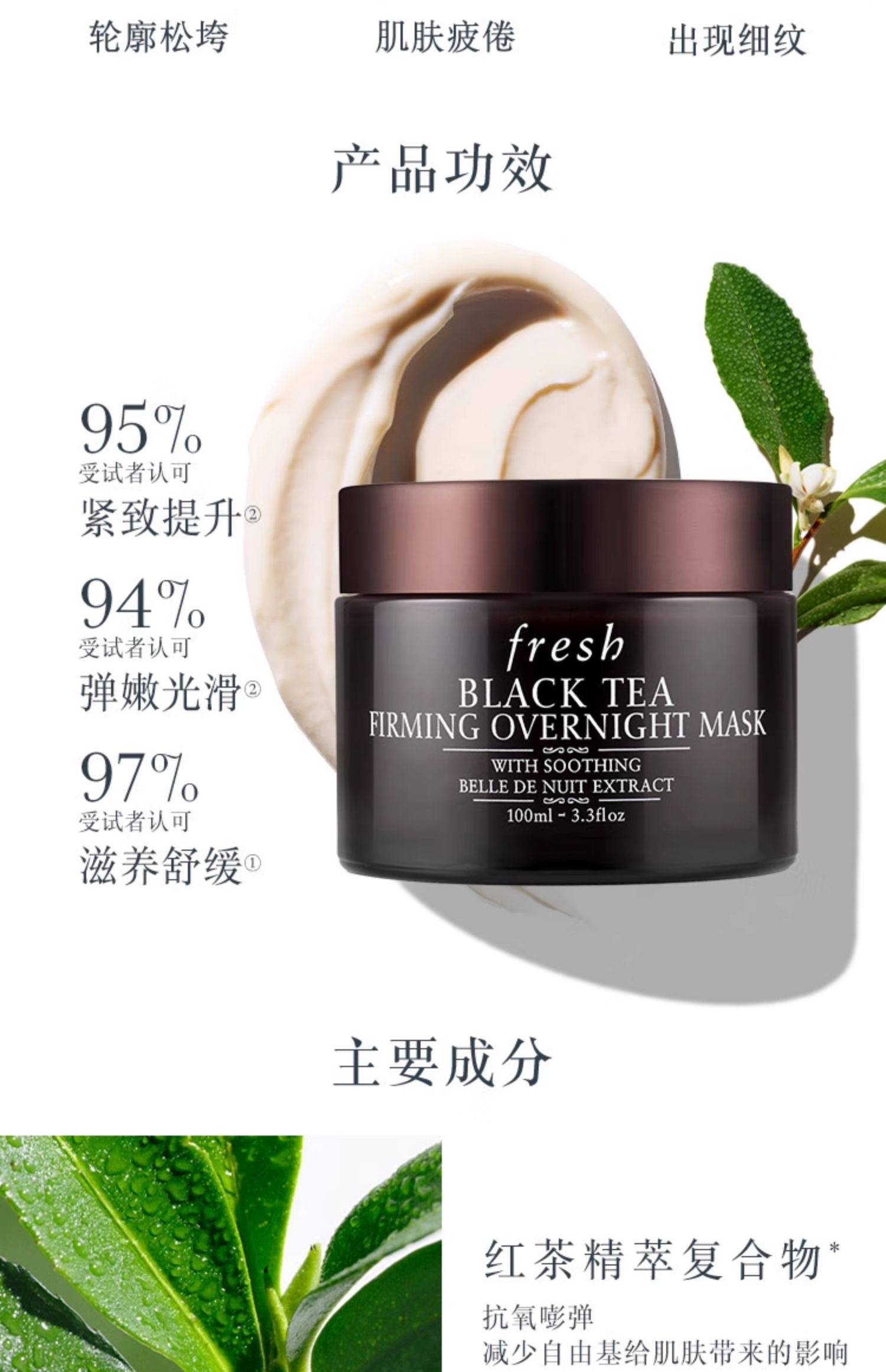 第二瓶0元【全球购】Fresh馥蕾诗红茶光采焕颜100ml睡眠面膜黑罐面膜