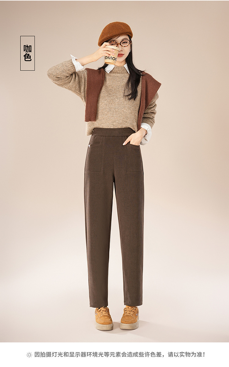 MYX-HWM-6075-Y灯芯绒厚款哈伦裤时尚气质女装高腰小脚裤气质优雅秋冬款长裤