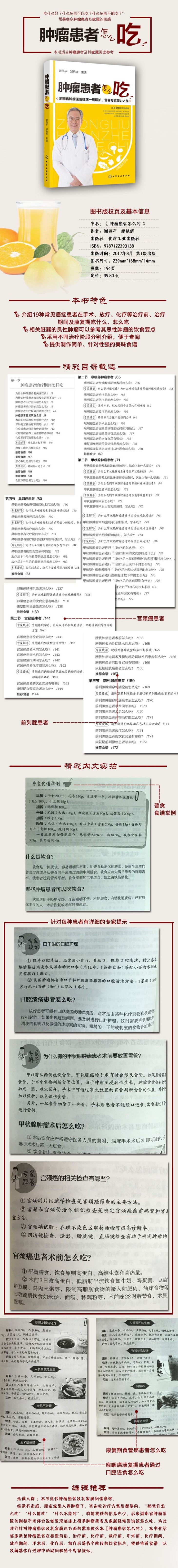 本书主要介绍临床常见肿瘤的患者在治疗前、治疗期间及康复期的饮食知识要点,还介绍一些患者应该注意的事项,解答了患者的个别疑惑,以及提供推荐食谱,便于肿瘤患者家属制作。