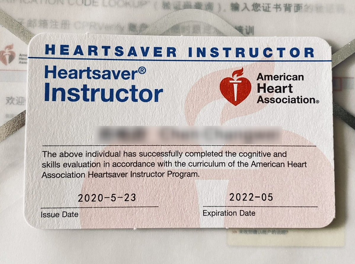 课程通过者将获得由国际医学权威机构——美国心脏协会AHA颁发的导师证书,该证书持有者可在全球AHA认证中心教授HeartSaver®课程并为通过测试的学员认证。