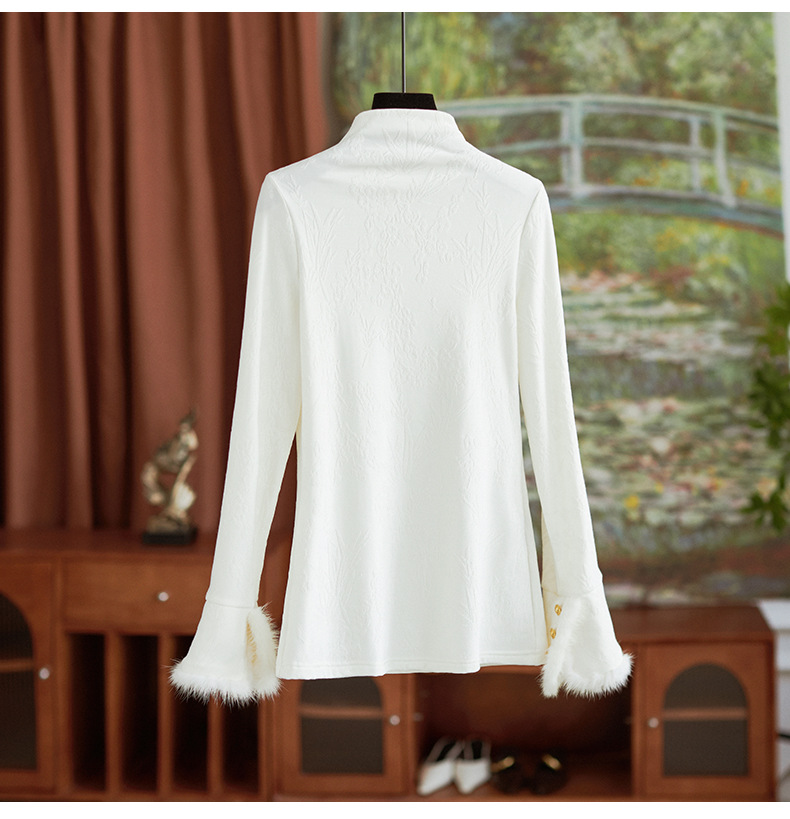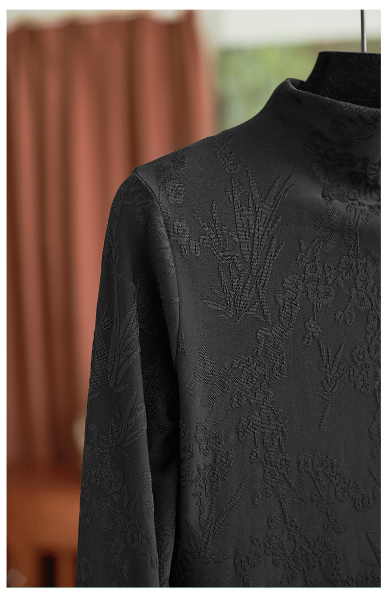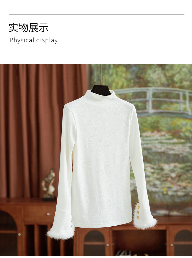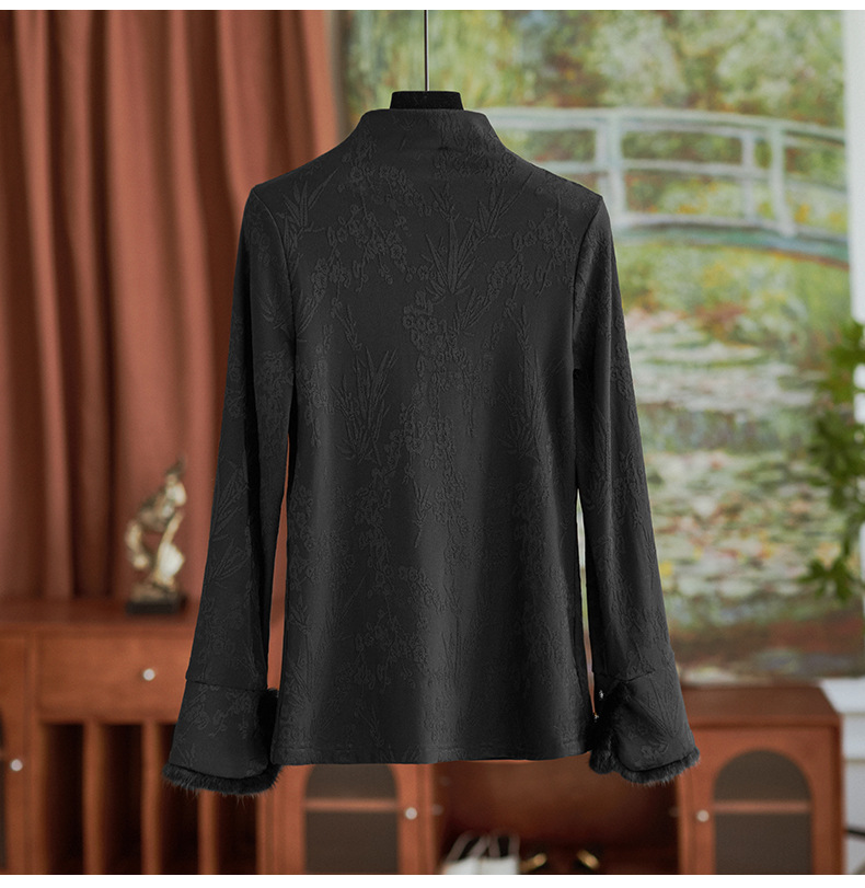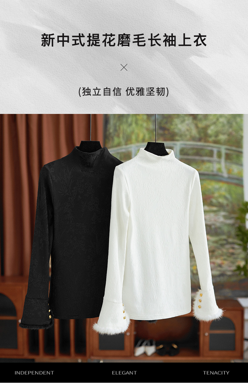 【高货wl】全新升级【铂金会员220/天猫299/差价79】(75159) 洛诗琳秋冬新中式半立领提花磨毛袖口水貂毛打底衫上衣