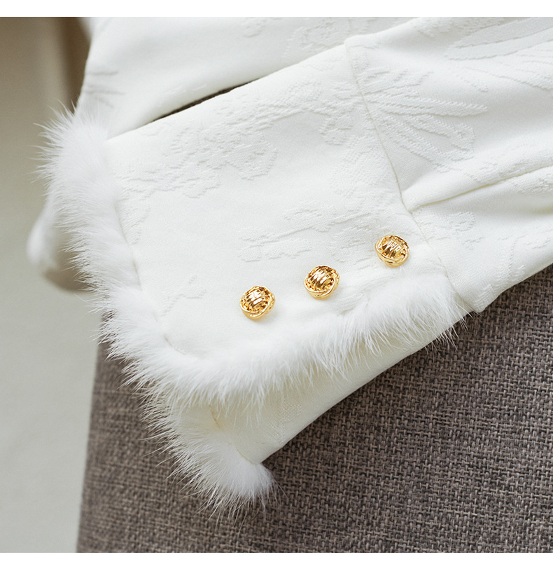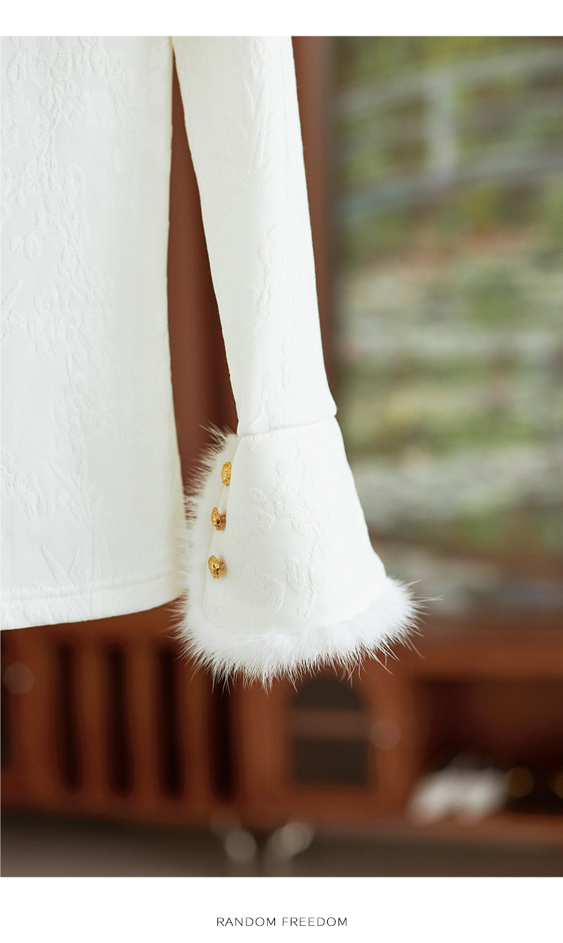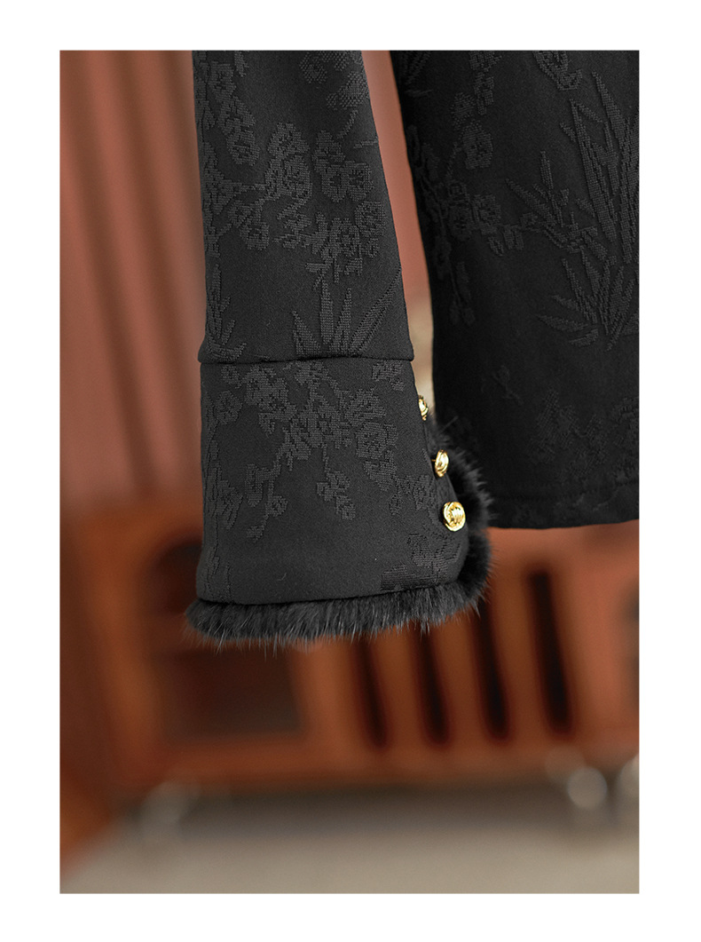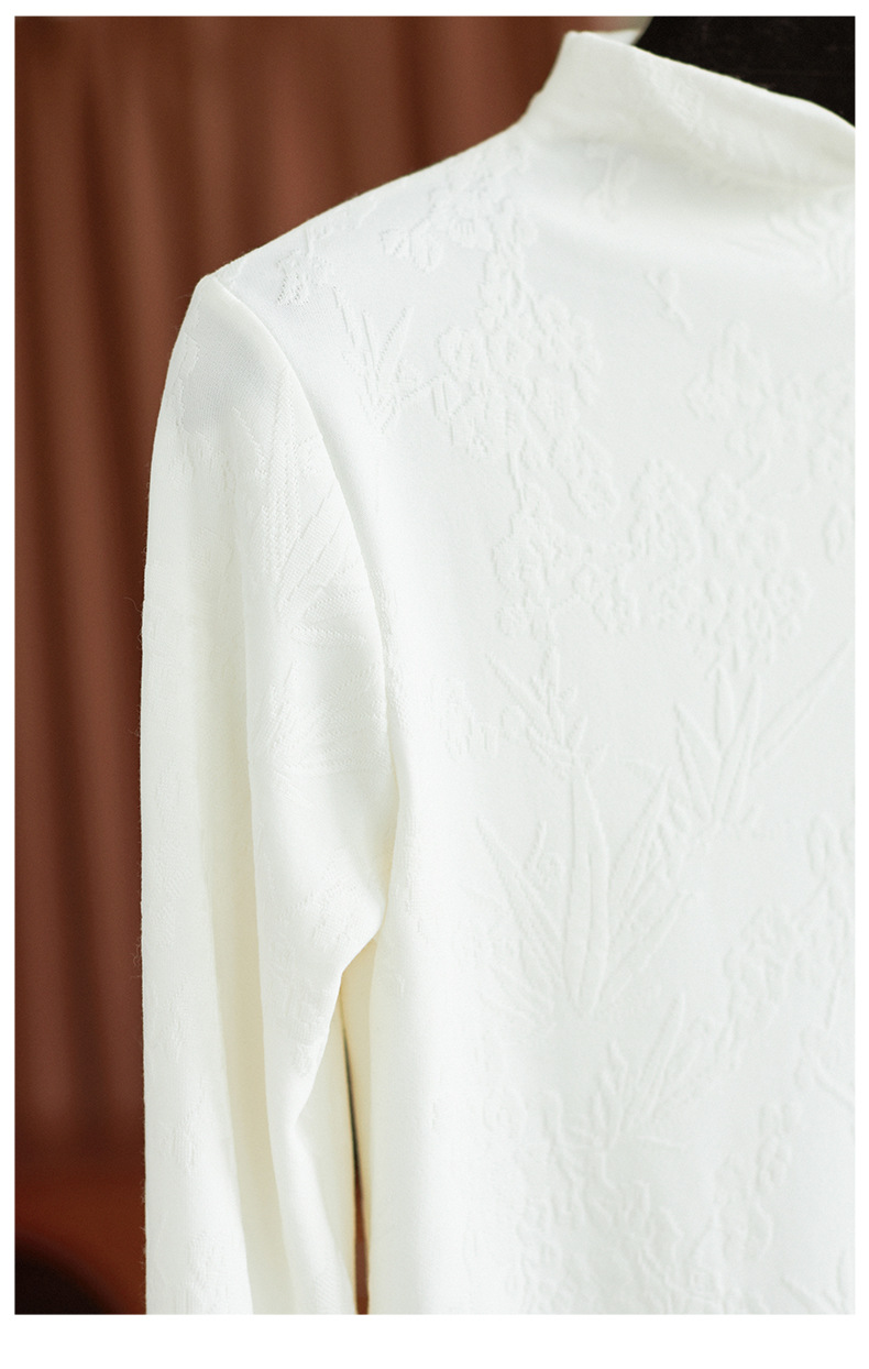 【高货wl】全新升级【铂金会员220/天猫299/差价79】(75159) 洛诗琳秋冬新中式半立领提花磨毛袖口水貂毛打底衫上衣