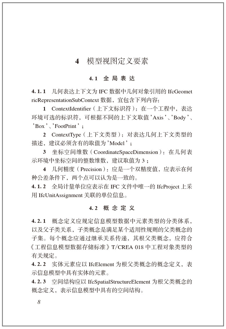 为建立工程建设领域统一的业务数字化环境,推进工程建设数字化实施,提高信息应用效率和效益,特制定本标准。本标准为推动国家工程数据信息模型技术发展,规范数据集成应用,在充分总结我国工程数据信息模型技术研究成果和应用实践经验,借鉴参考国内外相关标准,并广泛征求意见的基础上编制而成。本标准具有基础性、框架性、指导性作用,为促进数据信息模型技术在工程领域全生命周期的系统应用提供重要支撑。 本标准共分为6章和3个附录,主要技术内容包括:总则、术语和缩略语、基本规定、模型视图定义要素、模型视图定义创建和测试、模型视图定义应用以及MVDLite语法和词法、模型视图定义模板和模型视图定义用例。