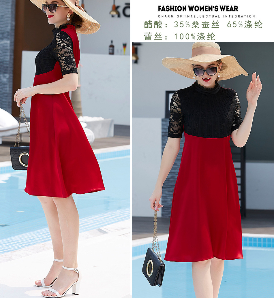 WY-FH0501名媛礼服新款修身立体剪裁蕾丝拼接醋酸连衣裙