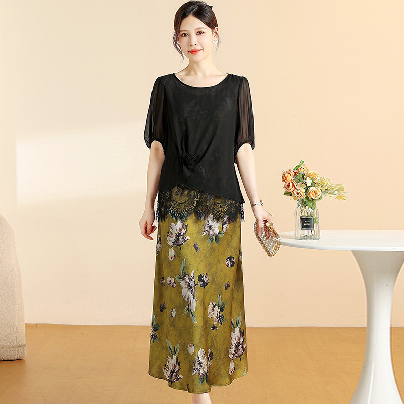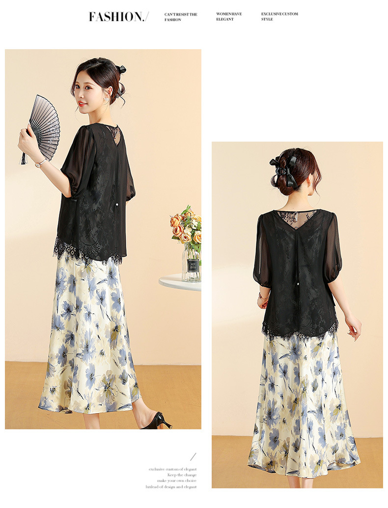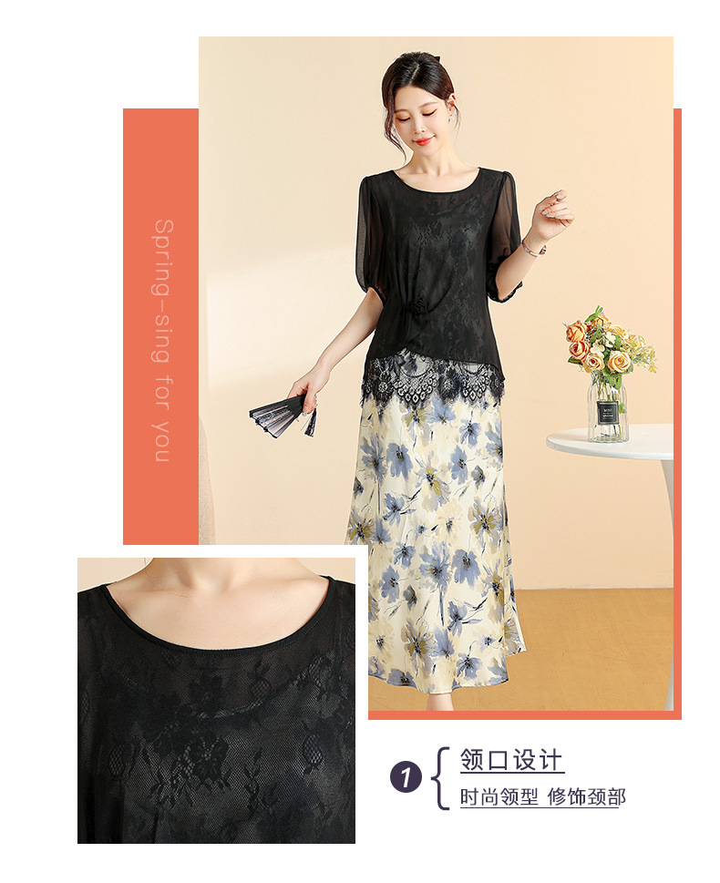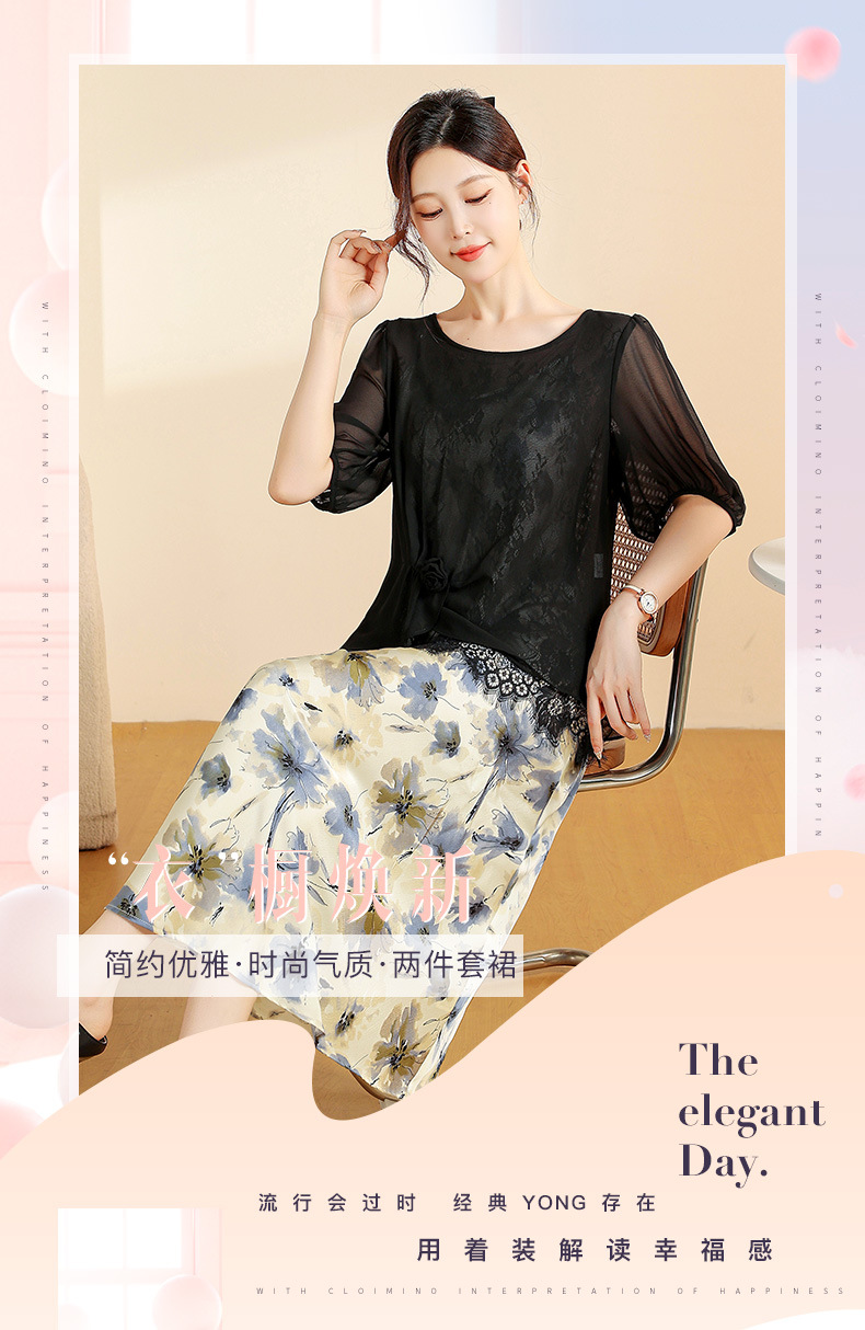 洋气优雅印花两件套连衣裙,韩版时尚女人味长裙QYM-YIYI-CS25A112