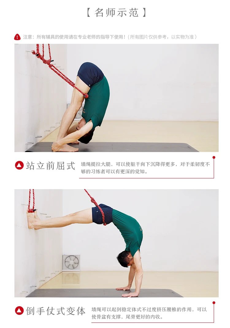 艾扬格Life 升级版 瑜伽 墙绳 上长 红色 下短 灰色 普纳总院标准