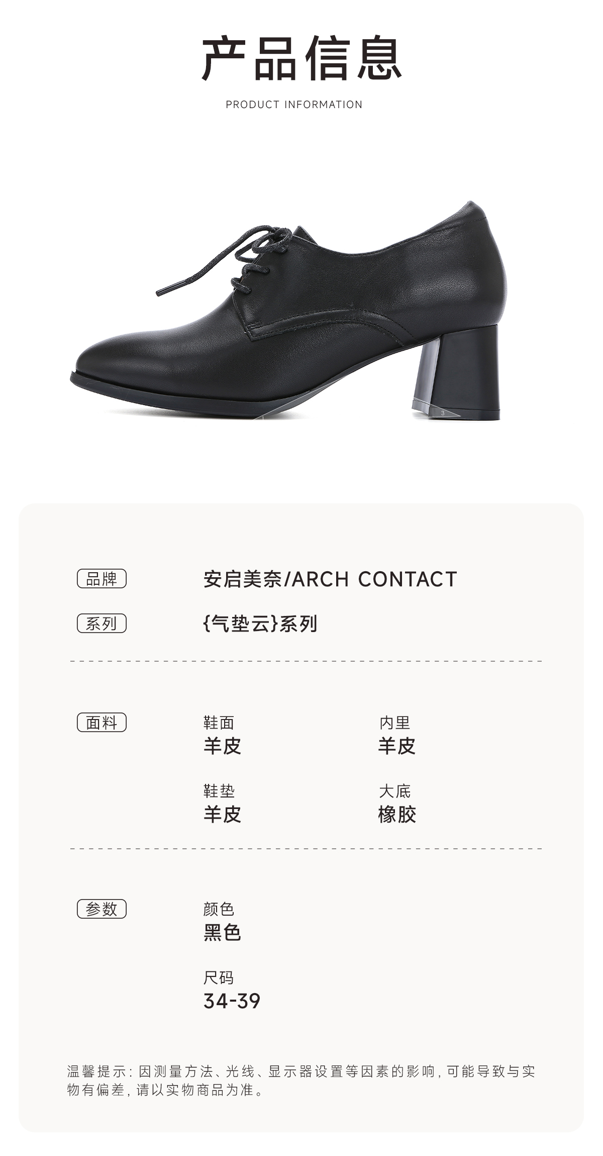 ARCHCONTACT安启美奈尖头粗跟通勤深口中跟单鞋53066